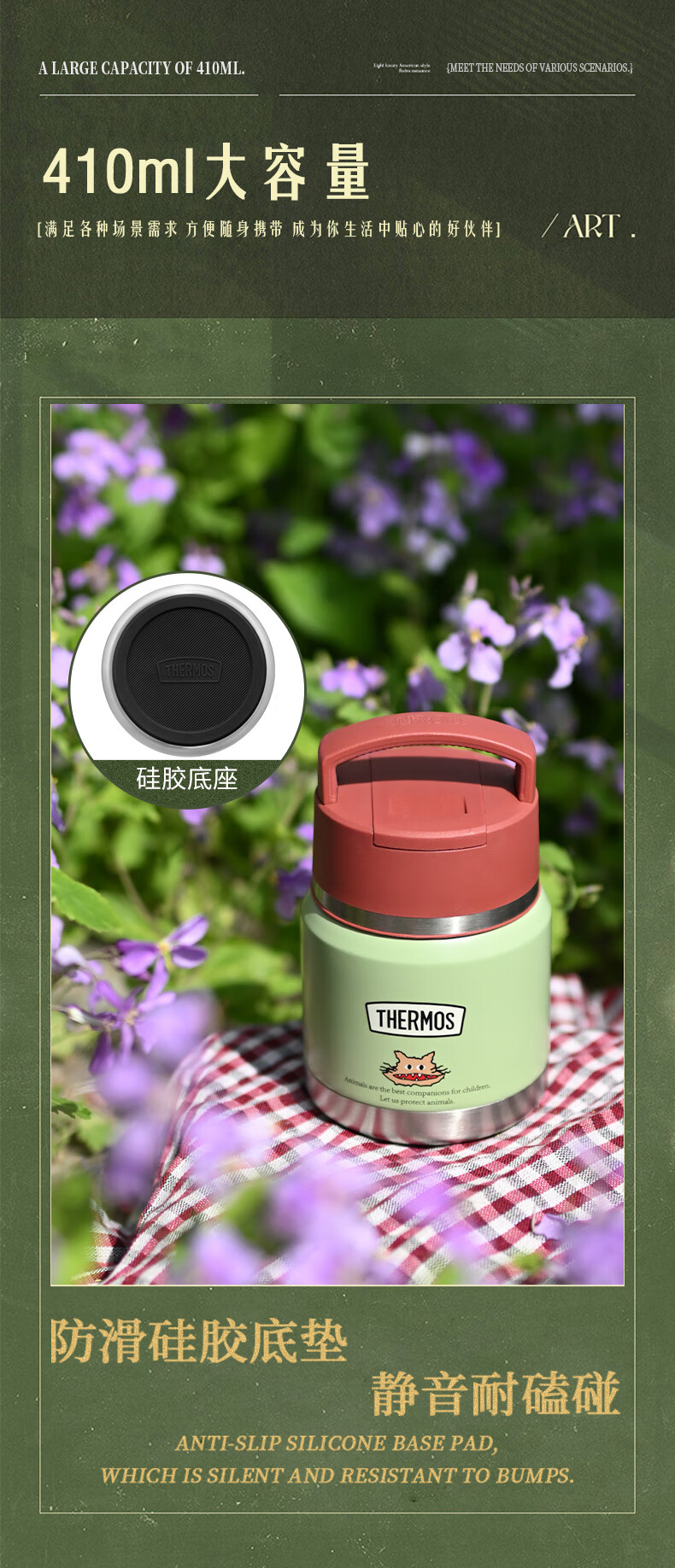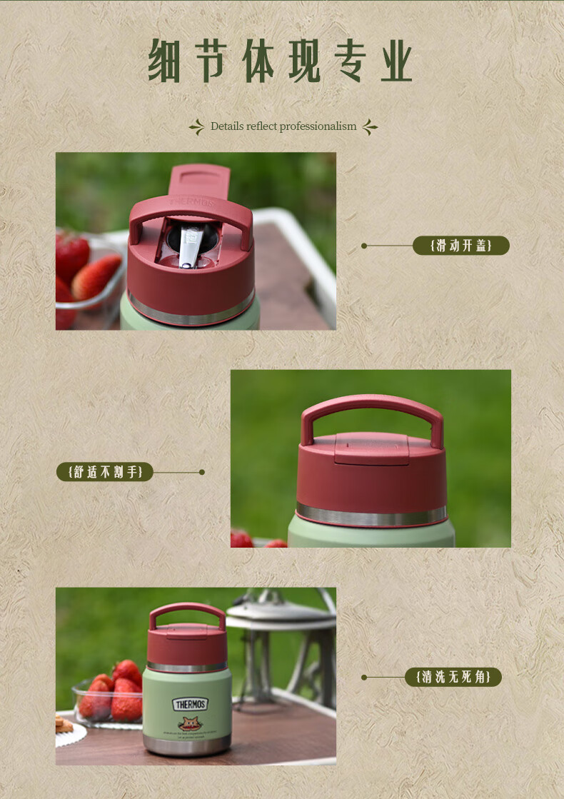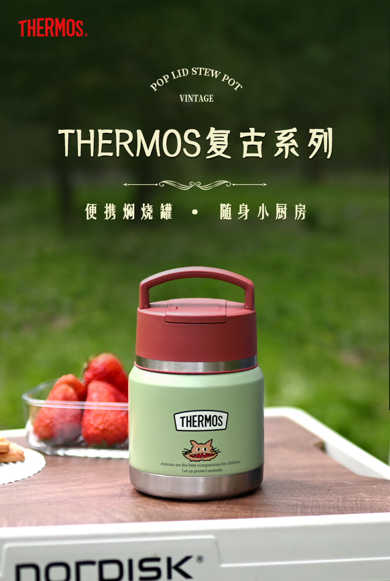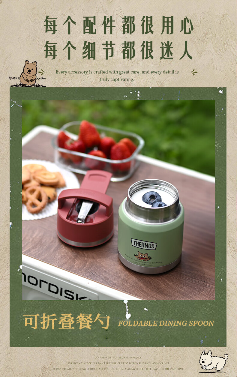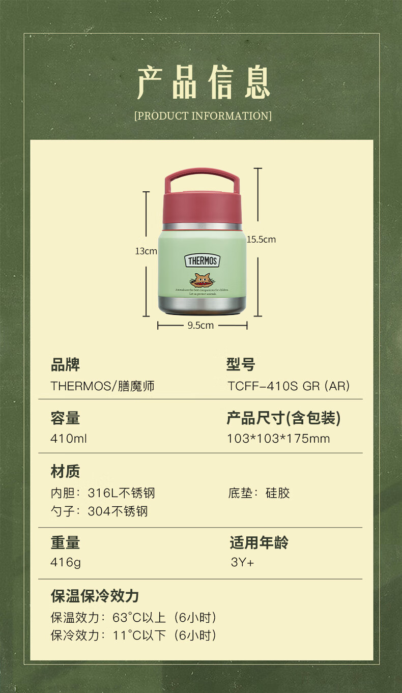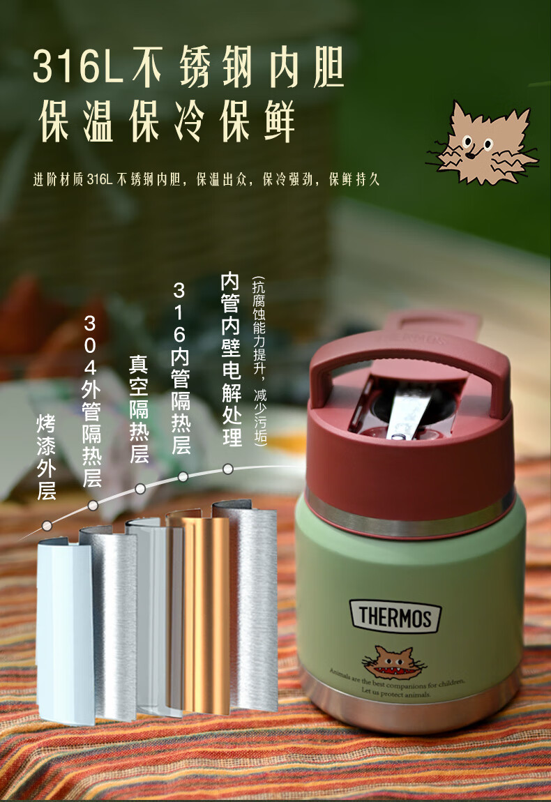 膳魔师(THERMOS)儿童保温杯饭盒316L不锈钢宽口辅食罐焖烧杯提手学生带勺上学TCFF