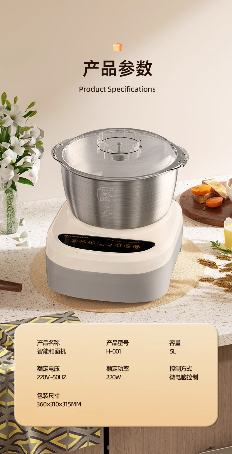 扬子和面机家用厨师机揉面机全自动多功能智能和面搅面一体机面包面粉发酵醒面机面包机面条机H-001