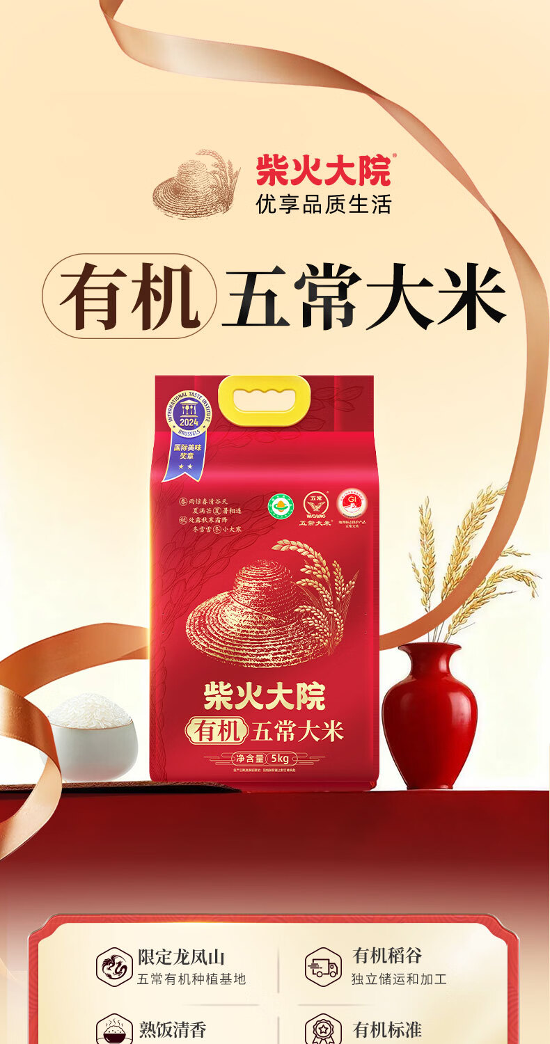 柴火大院有机五常大米5kg 东北大米真空包装