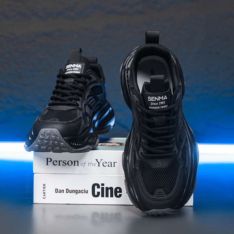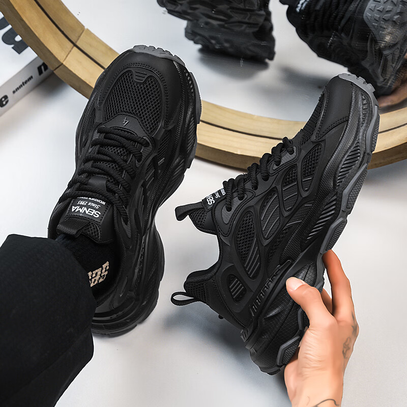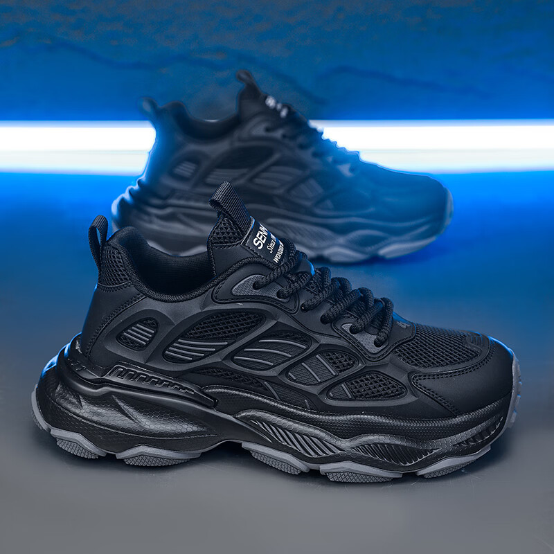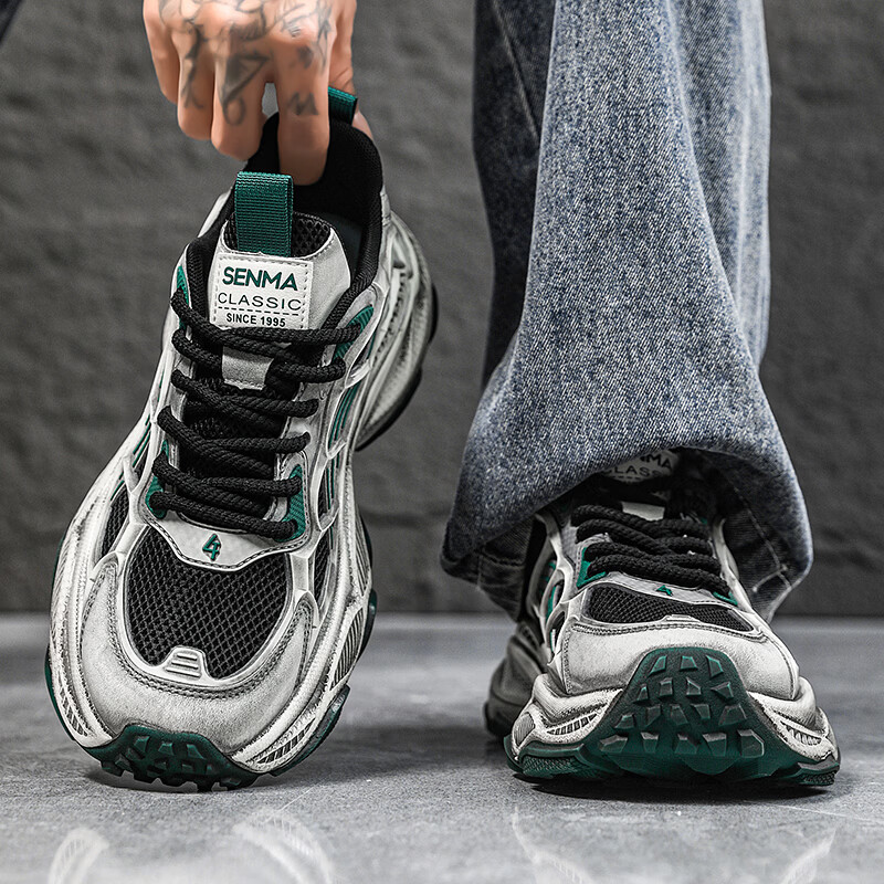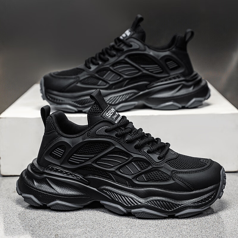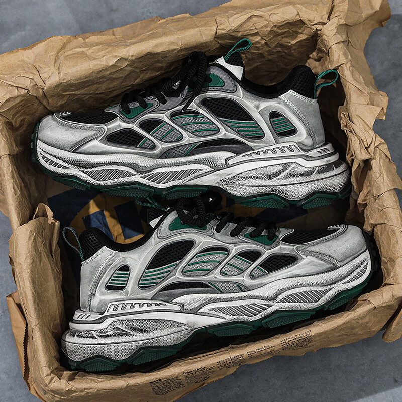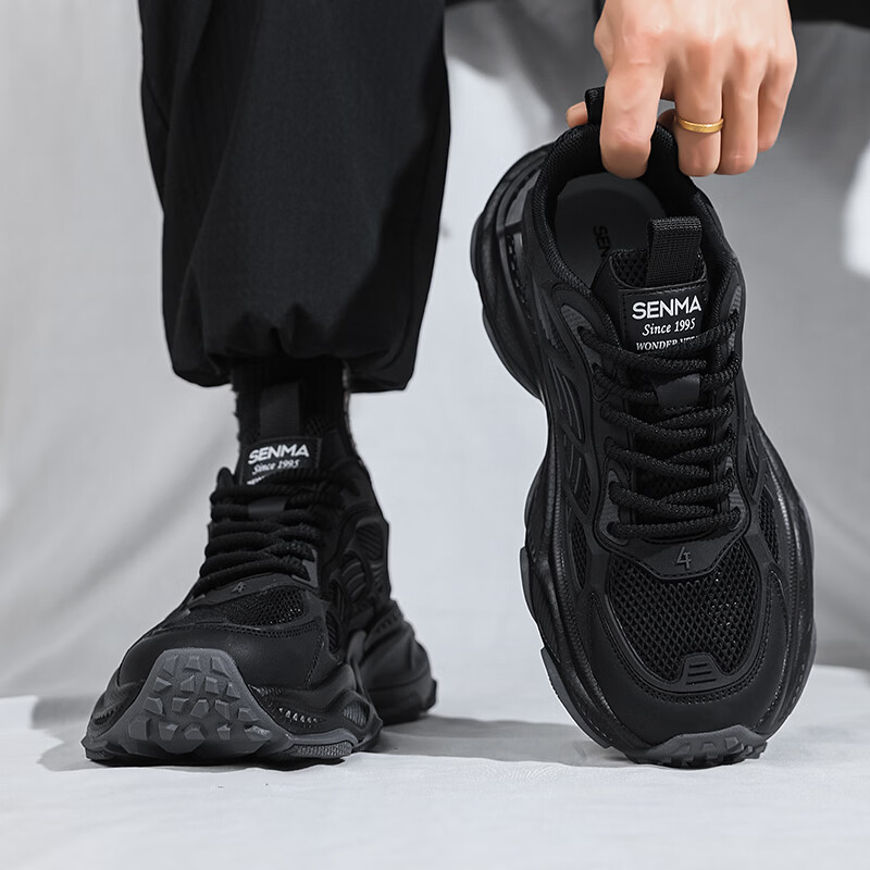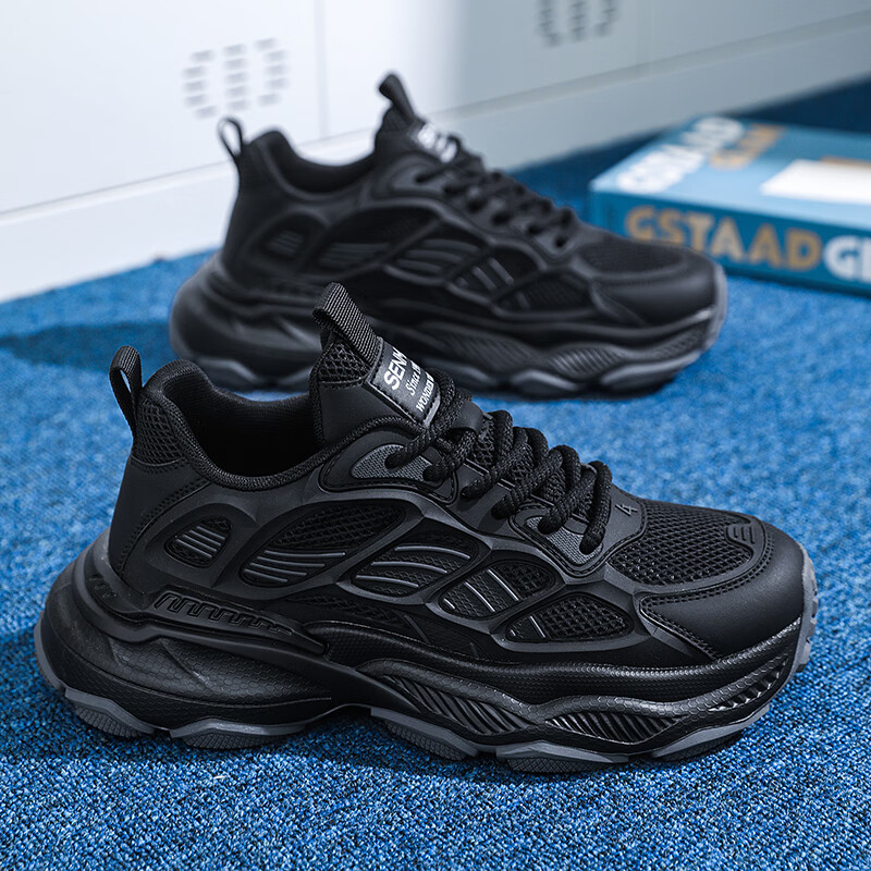 森馬男鞋2026新款春季潮流百搭休闲运动跑步鞋青少年厚底防滑老爹潮鞋 黑绿【基础款】 39 标准码数/现货秒发