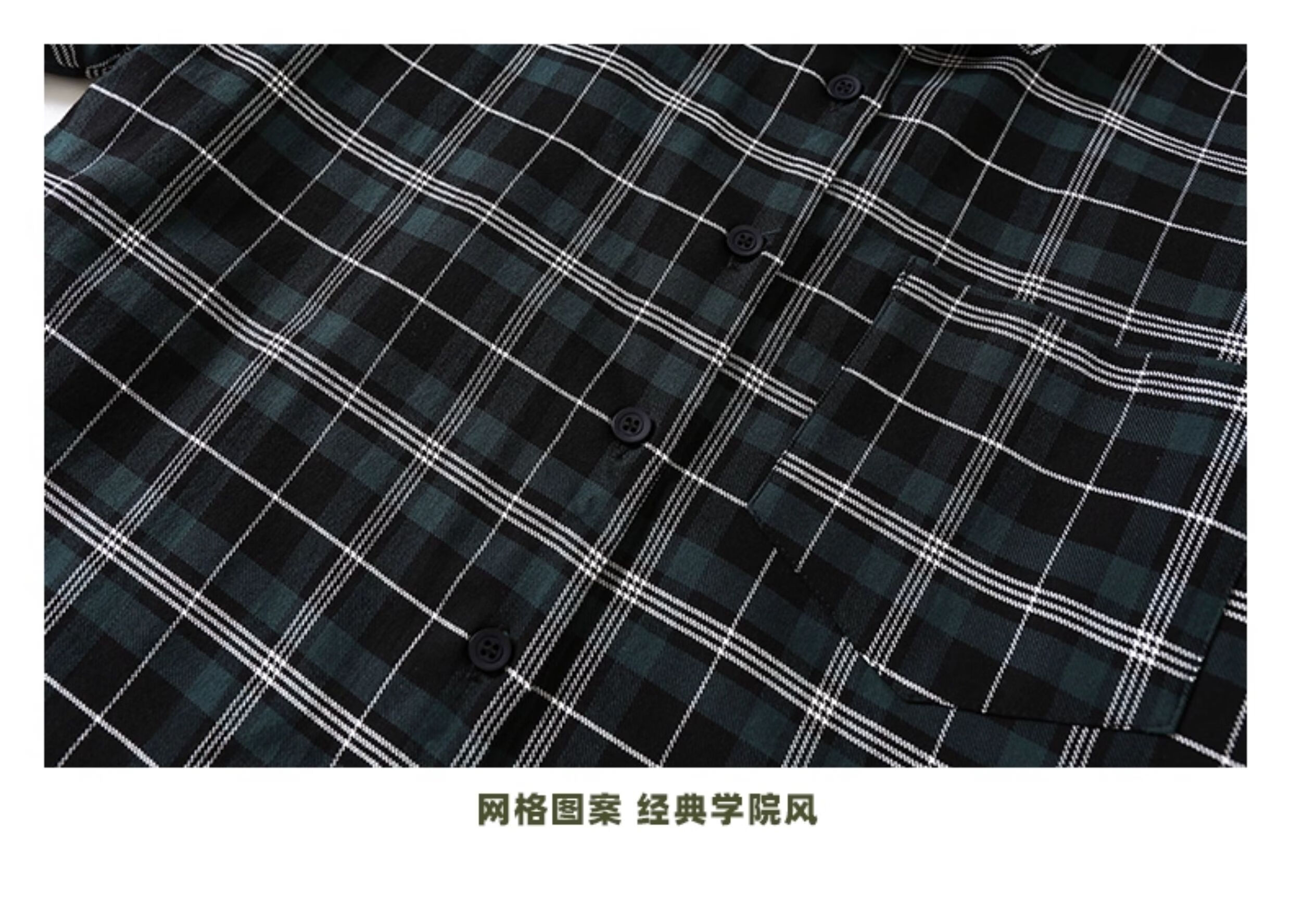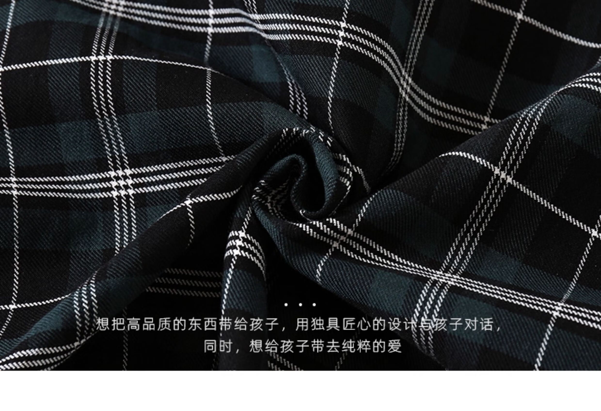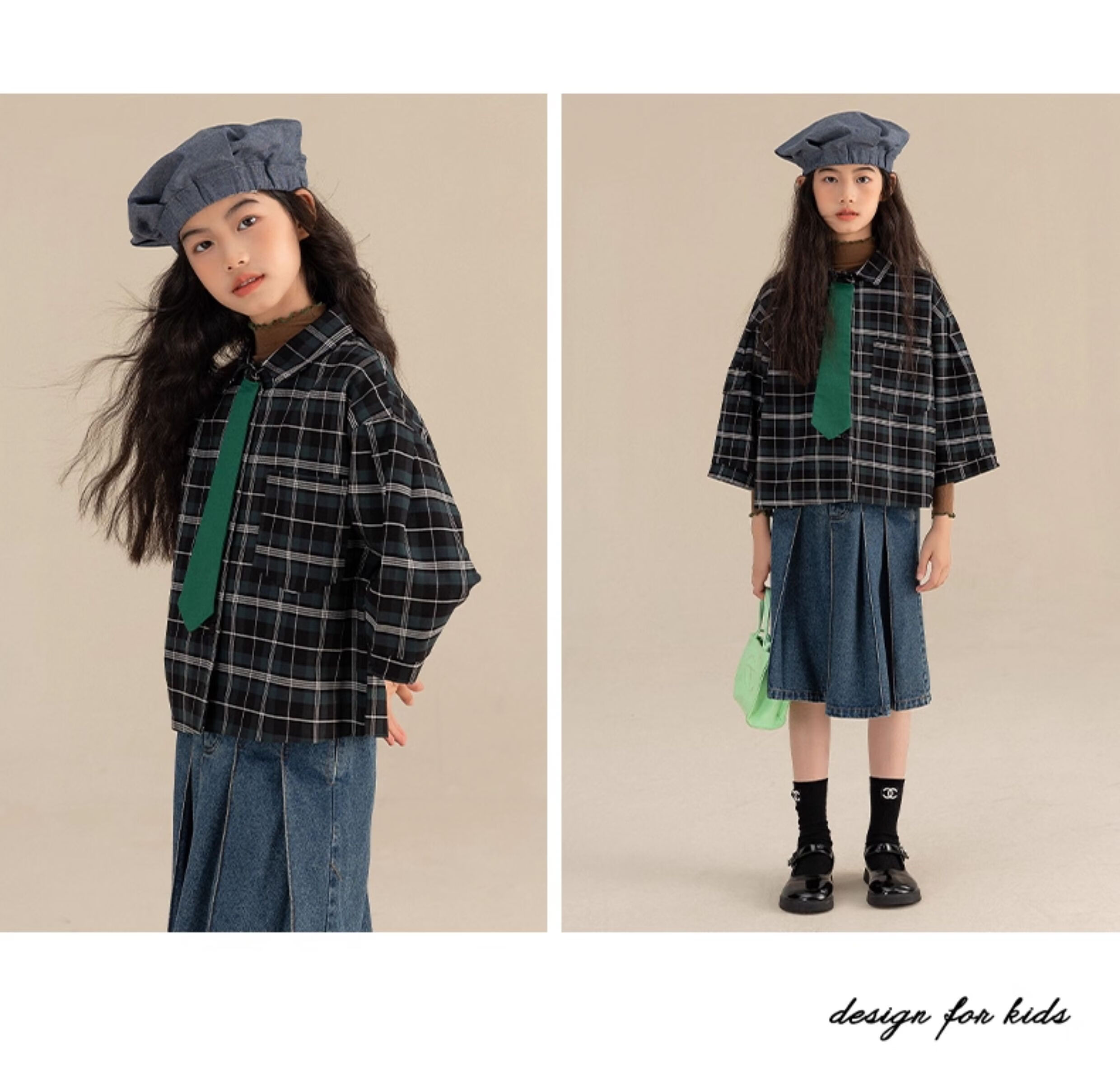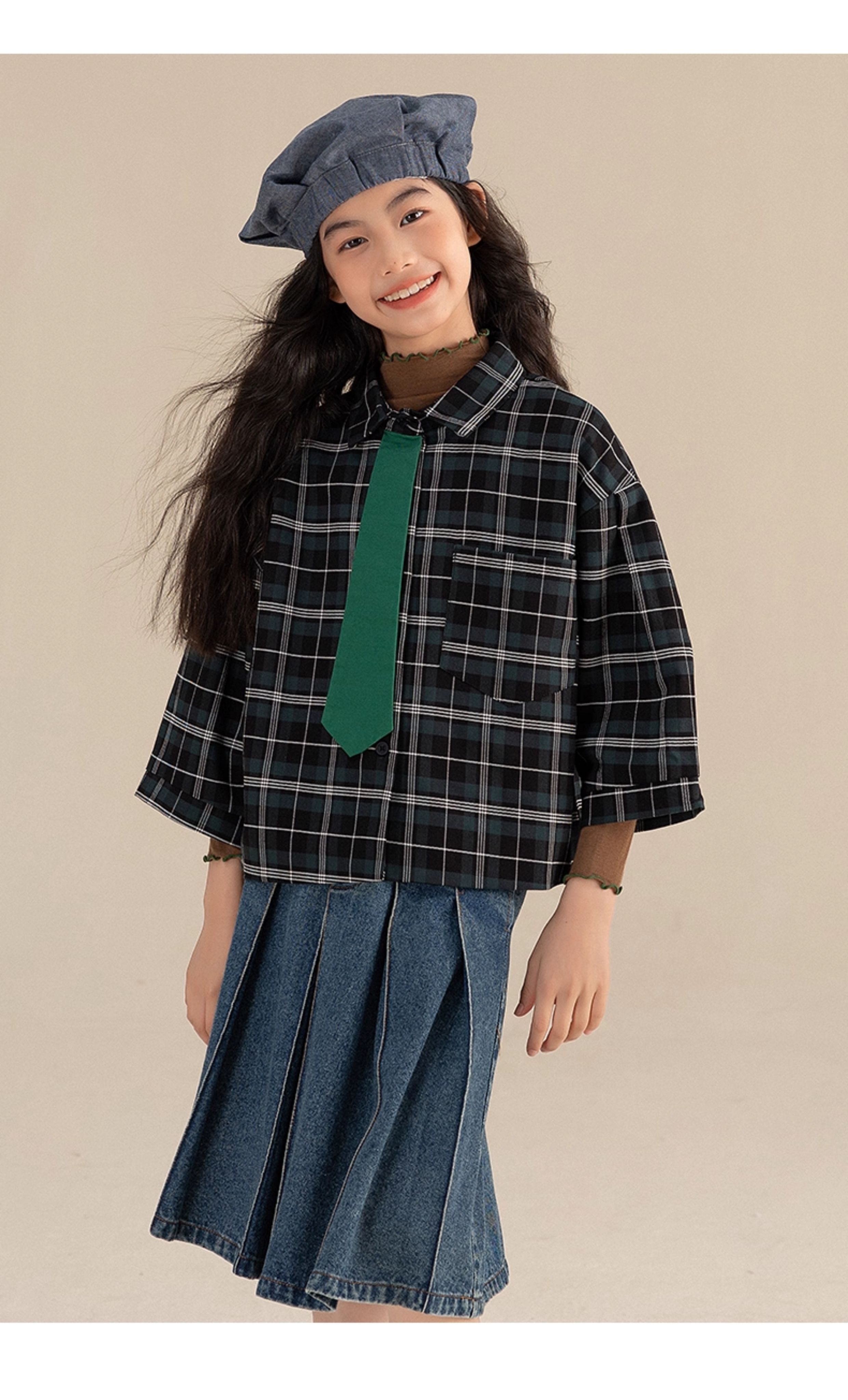淘町女童衬衫七分袖春秋新款中大童百搭墨绿格子韩版宽松学院衬衣 墨绿 160