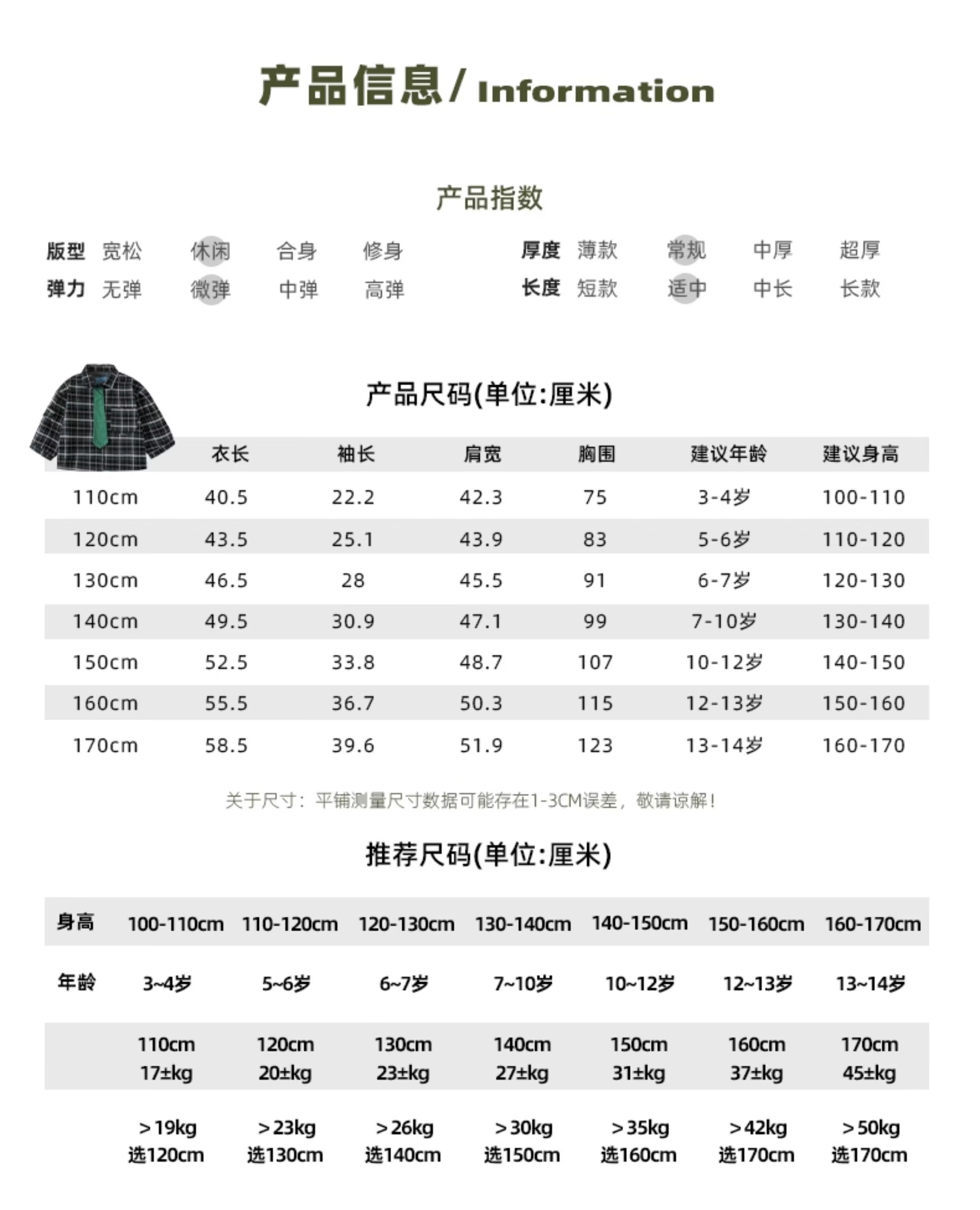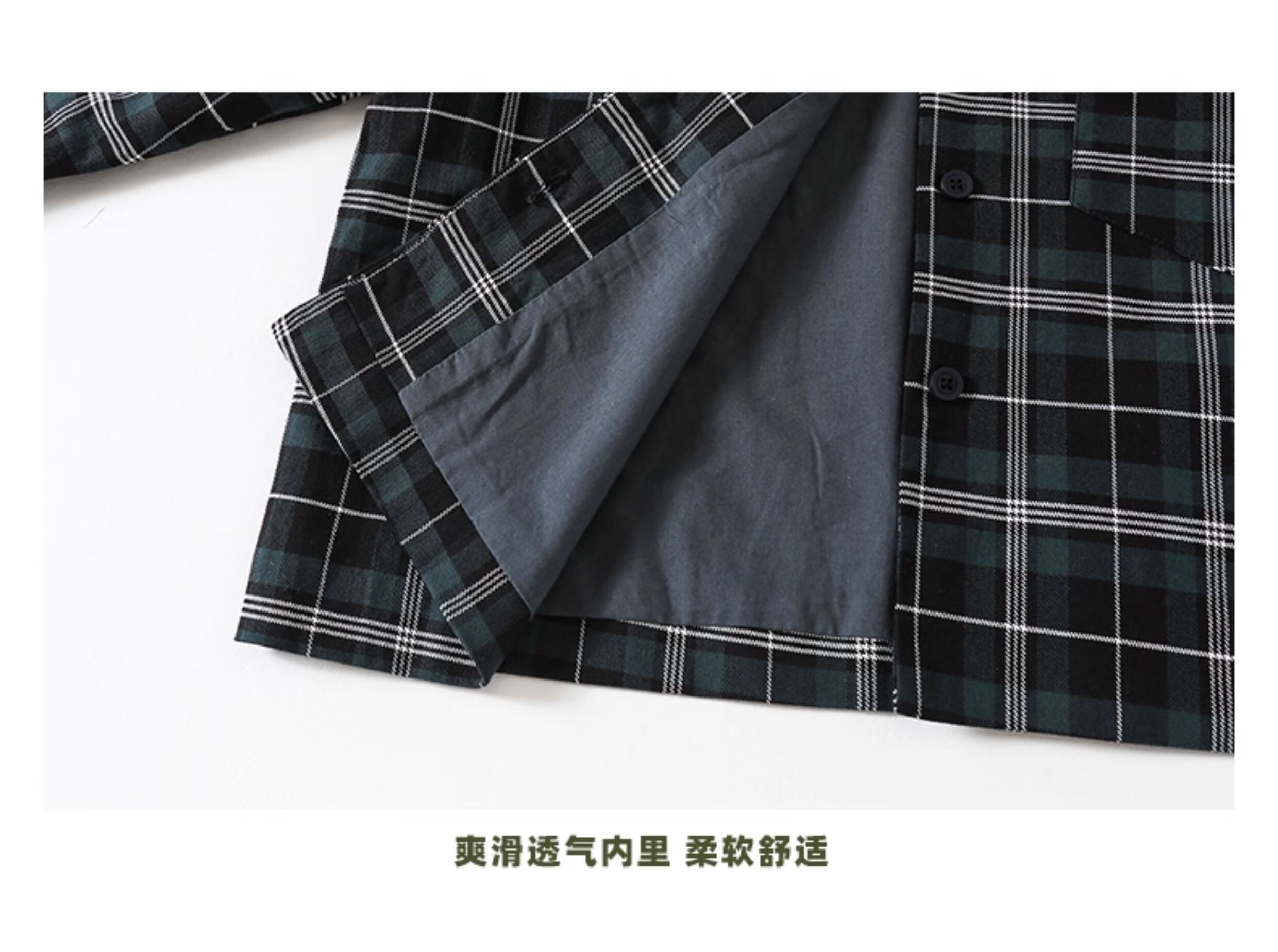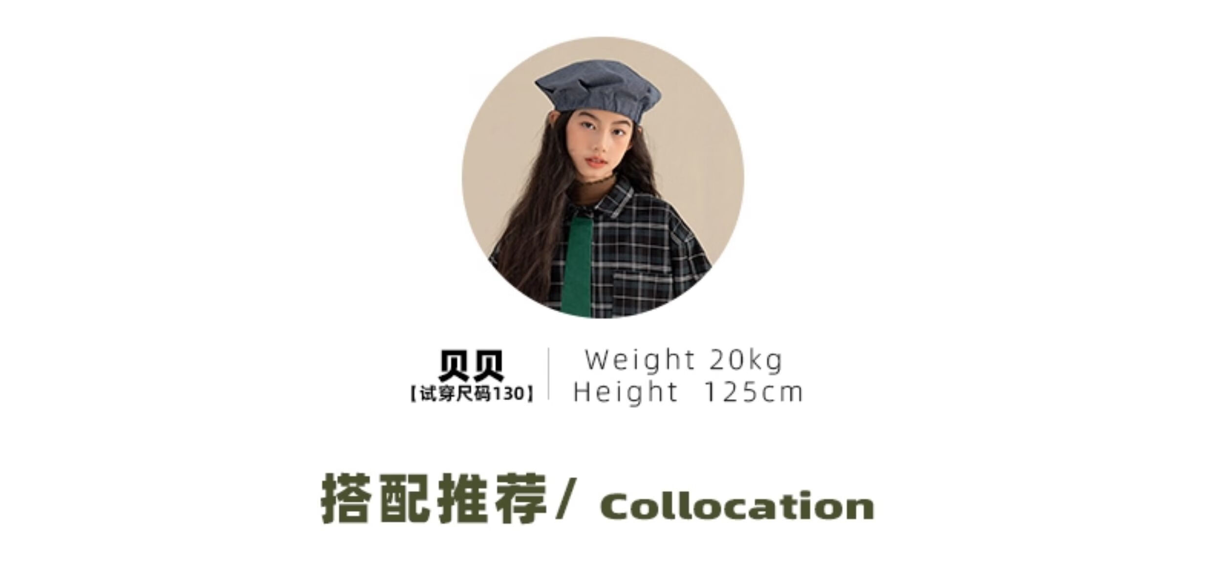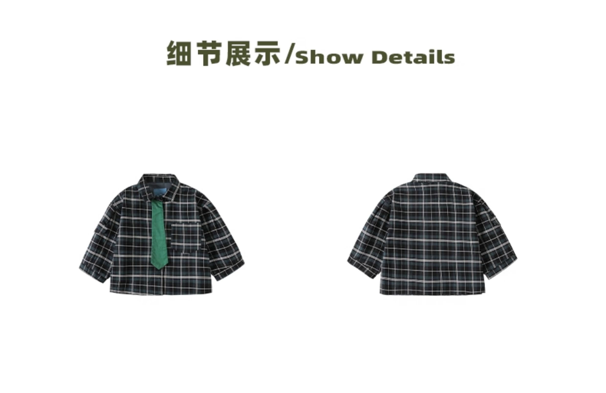 淘町女童衬衫七分袖春秋新款中大童百搭墨绿格子韩版宽松学院衬衣 墨绿 160