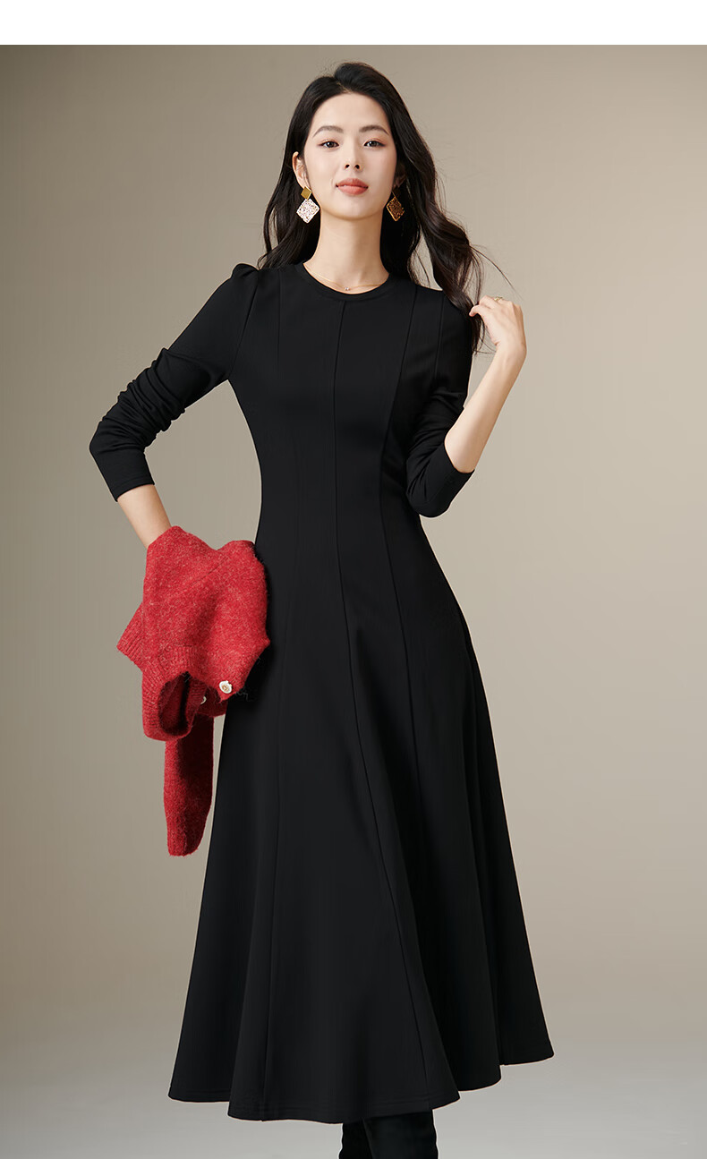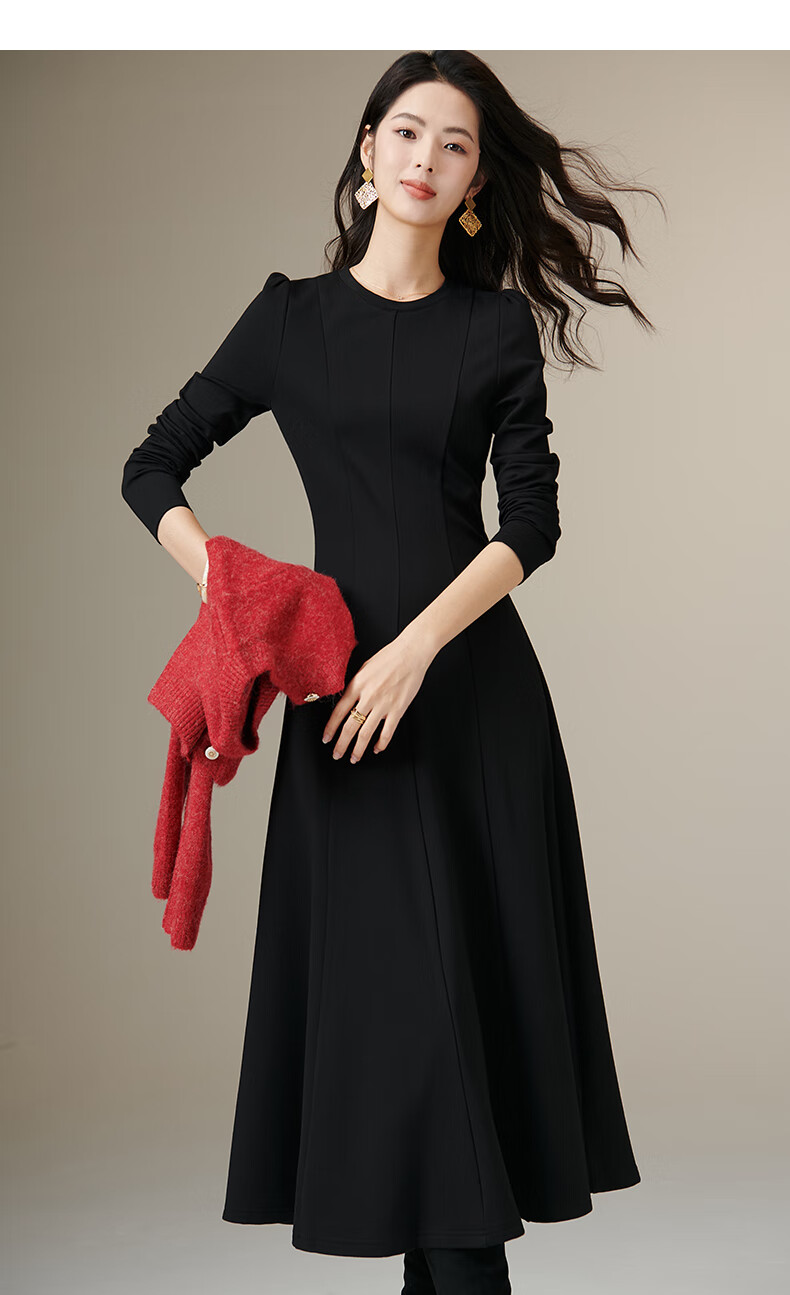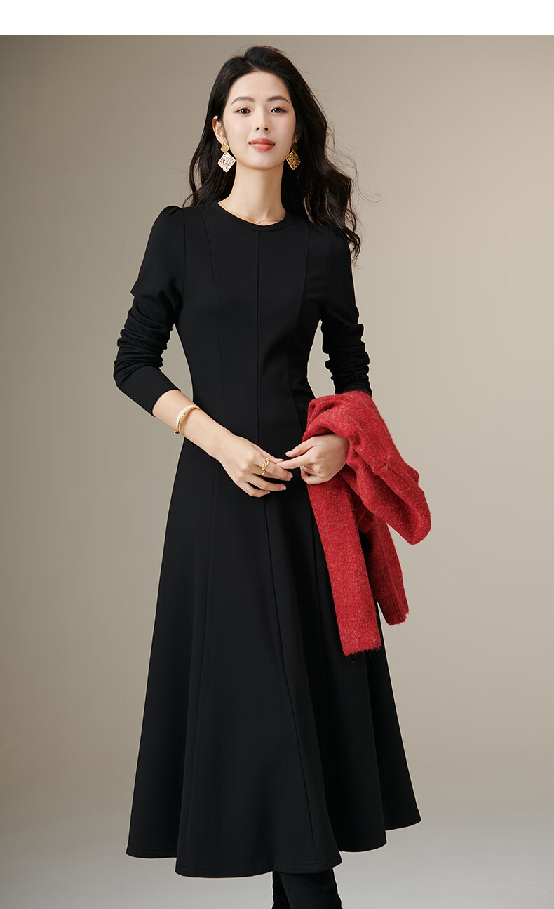 晚白【新品】【加绒纸片人搭配神裙】2026春季叠穿内搭可外穿连衣裙 黑色 L