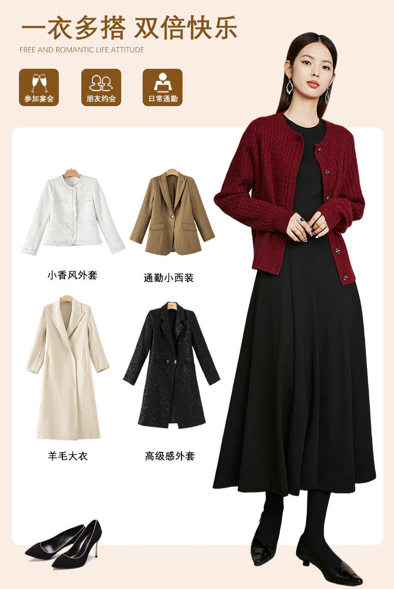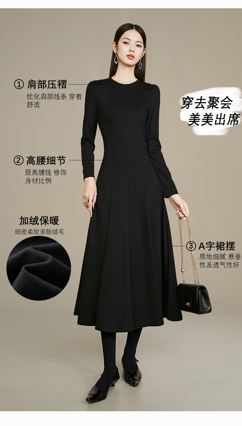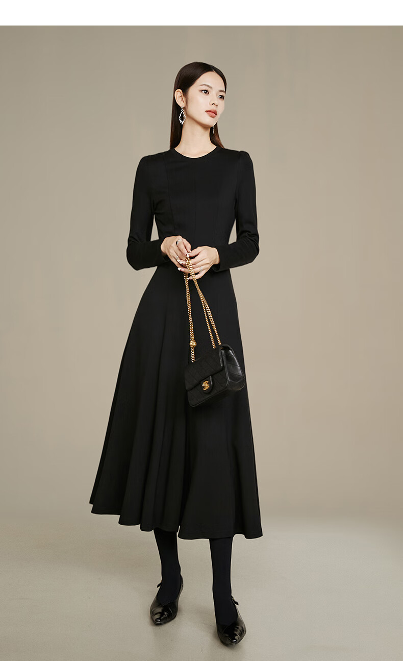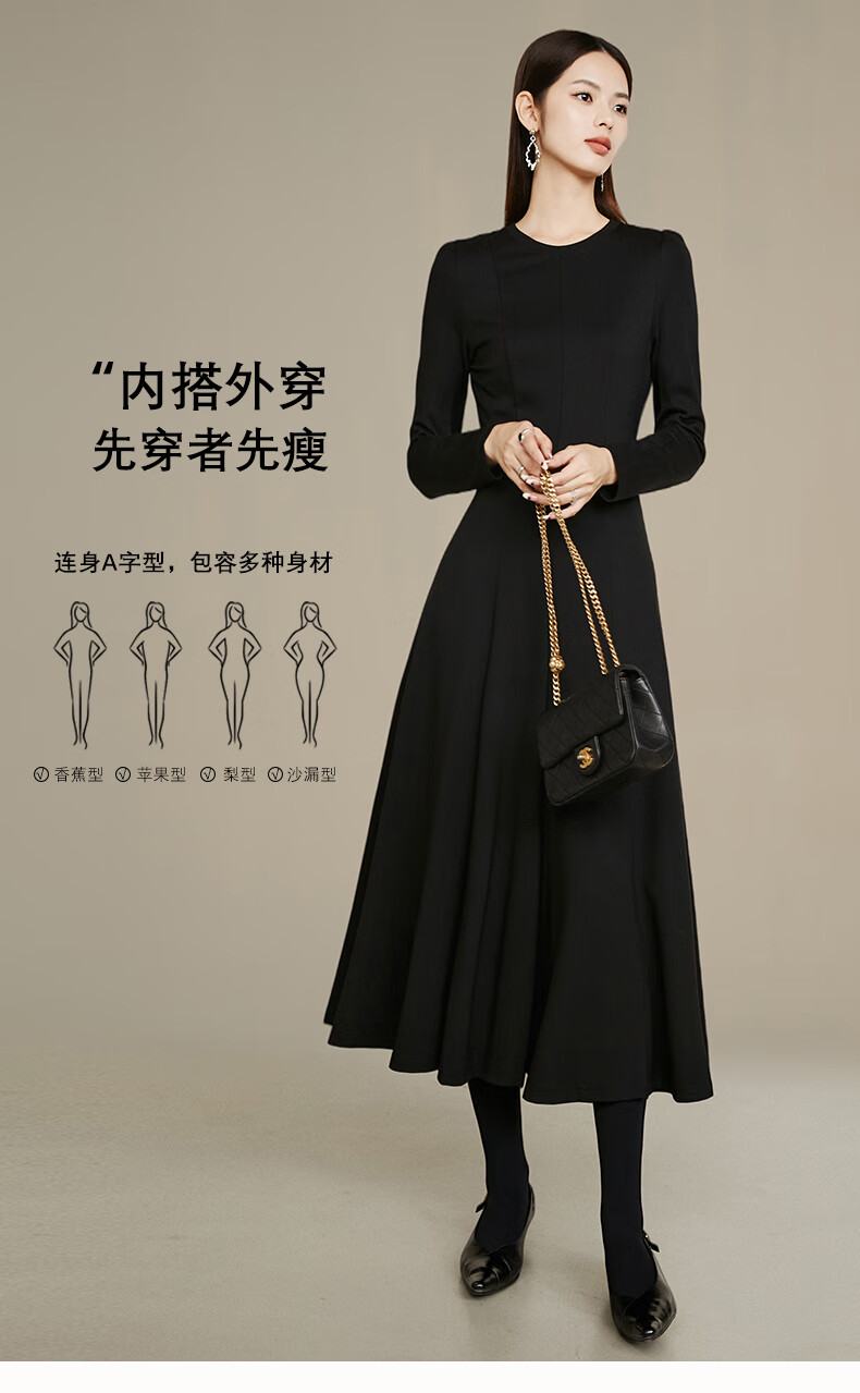 晚白【新品】【加绒纸片人搭配神裙】2026春季叠穿内搭可外穿连衣裙 黑色 L
