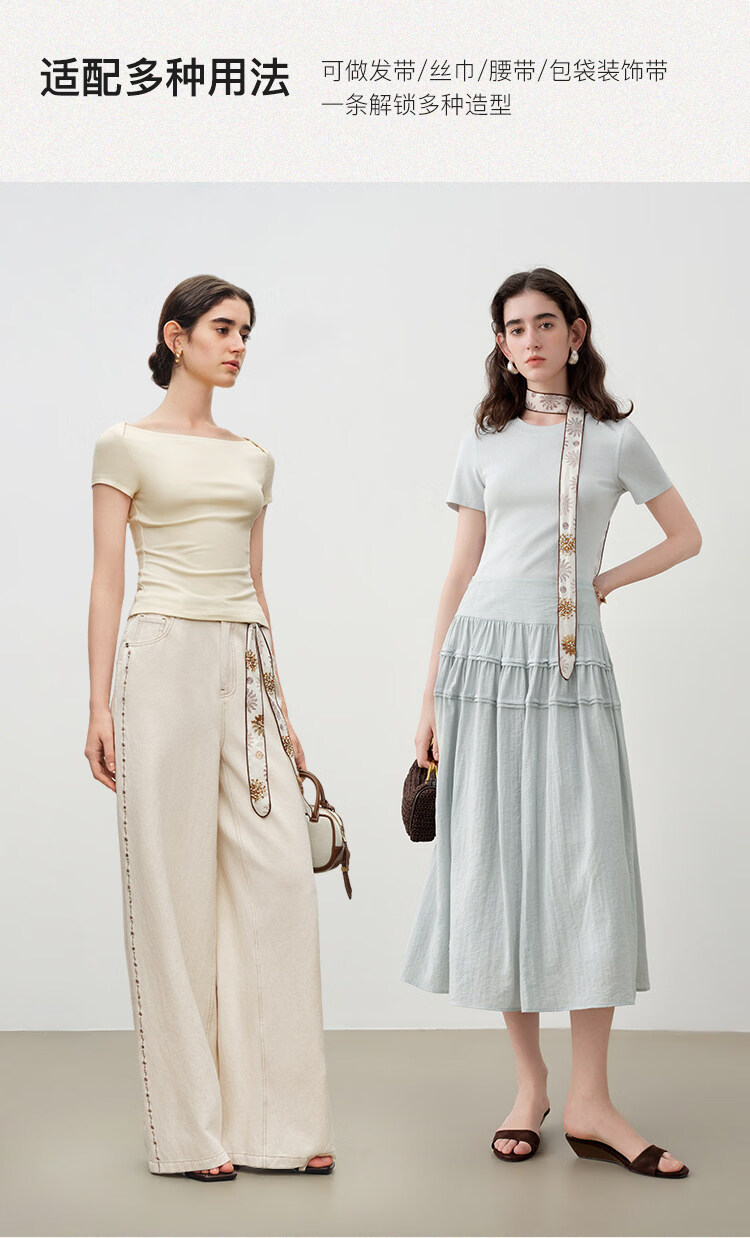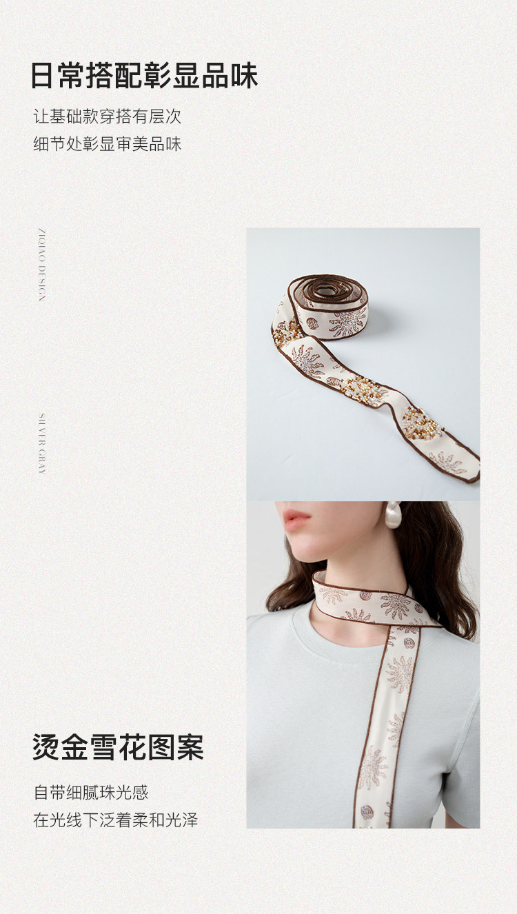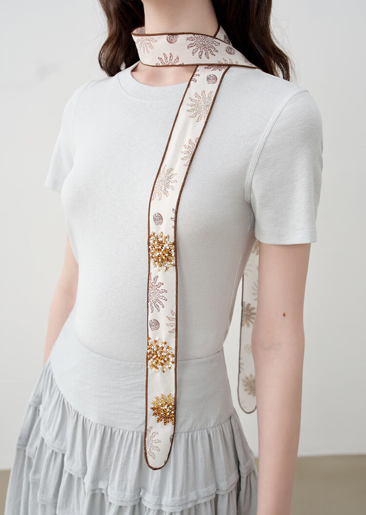 自巧「鎏金雪绒」珠光感沙色印花多用途钉珠飘带女2026年夏季新品 沙漠色 无规格