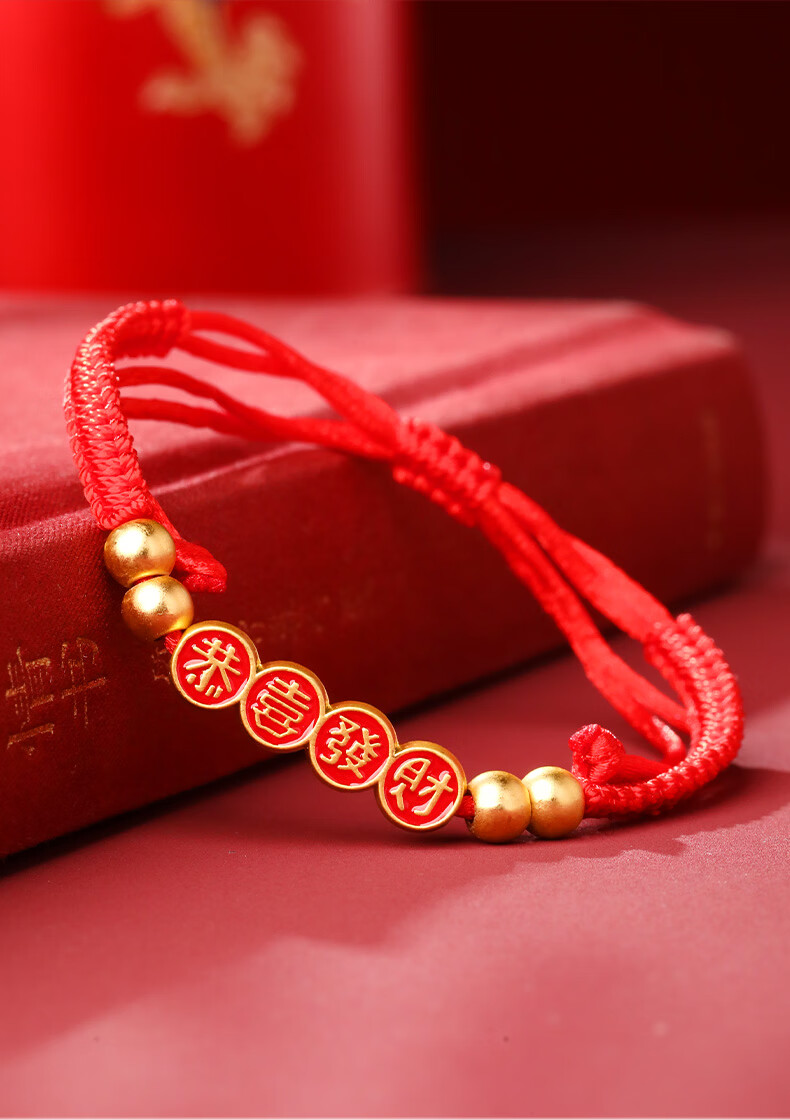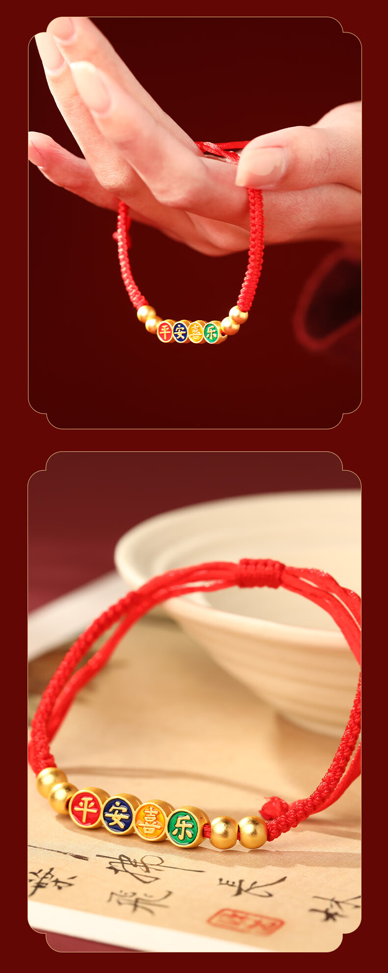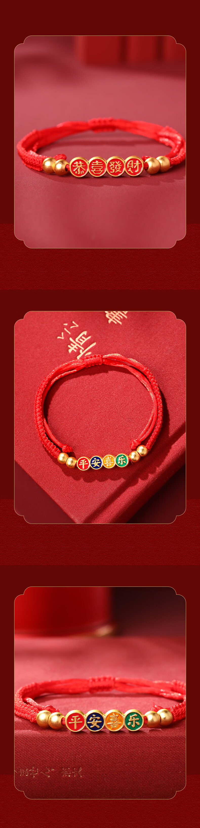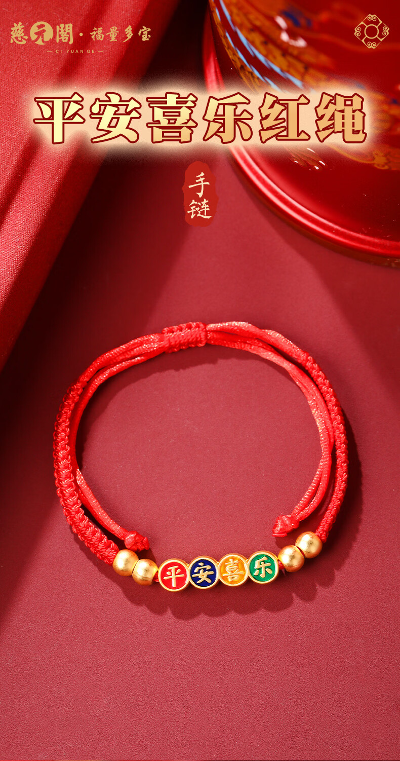慈元阁2026马年平安喜乐红绳手链男女情侣款本命年大红色手绳女神节礼物 平安喜乐红绳手链