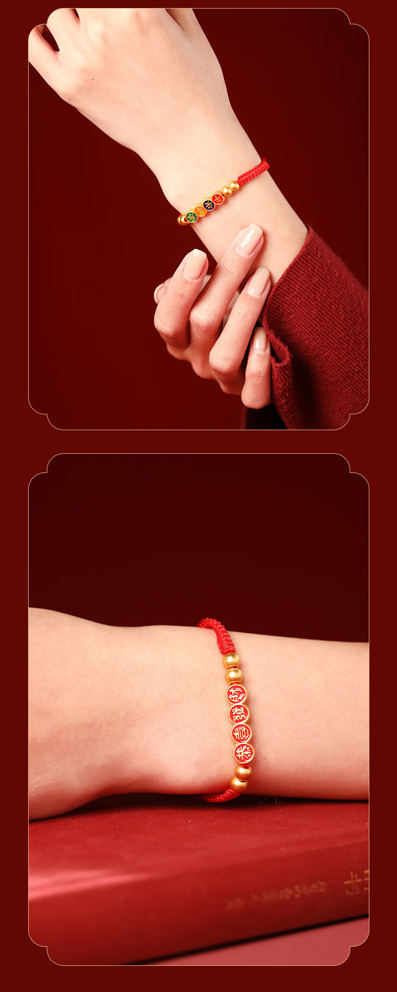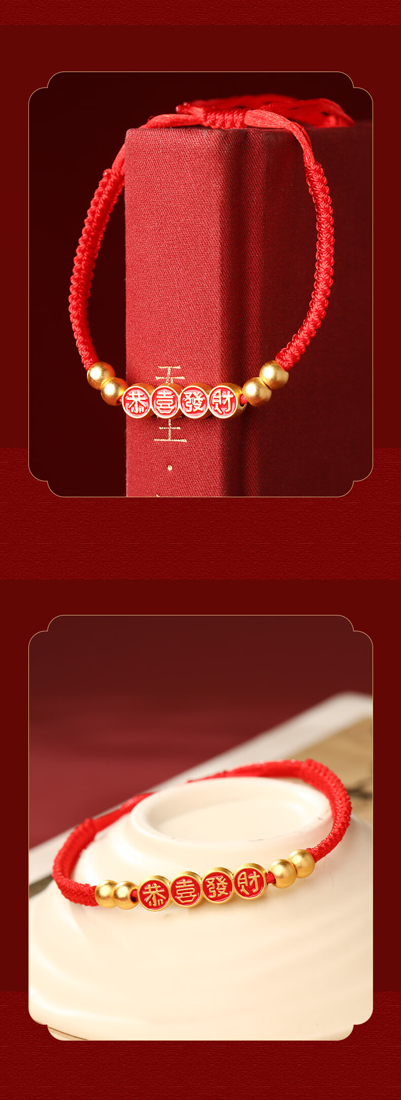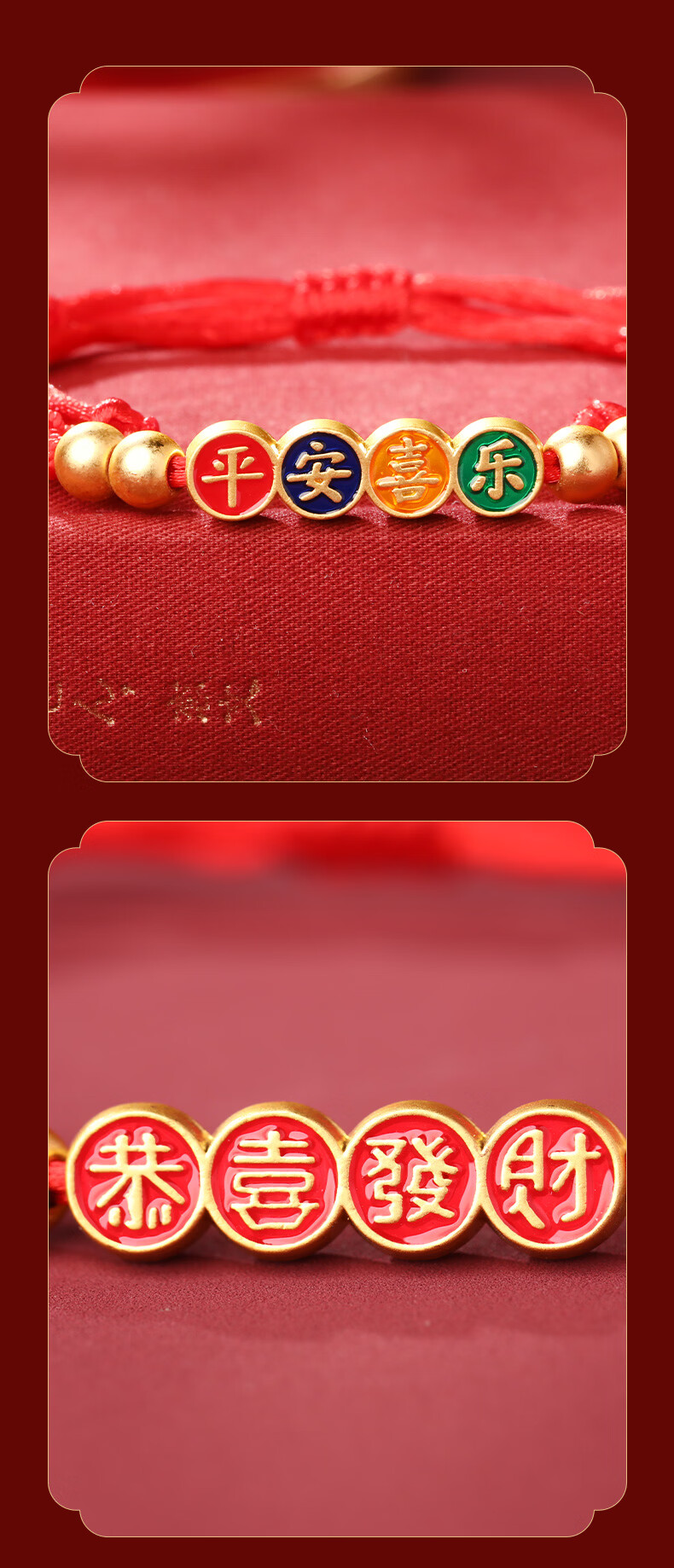 慈元阁2026马年平安喜乐红绳手链男女情侣款本命年大红色手绳女神节礼物 平安喜乐红绳手链