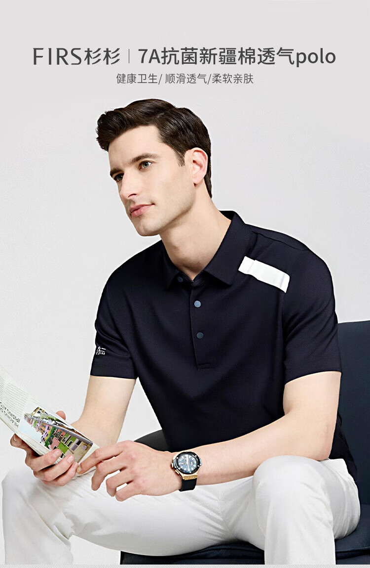 杉杉(FIRS)【顺滑透气】短袖T恤男夏新疆柔棉亲肤抗菌商务通勤polo打底上衣 深灰 M 170/88A