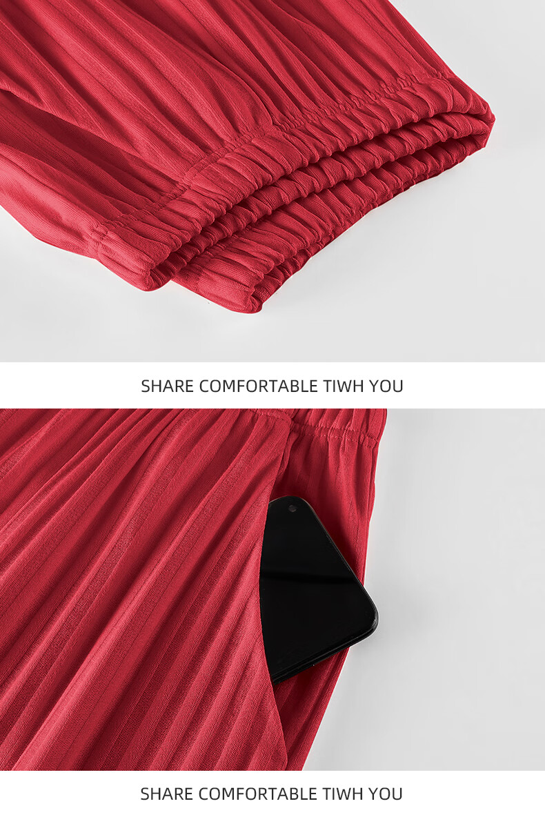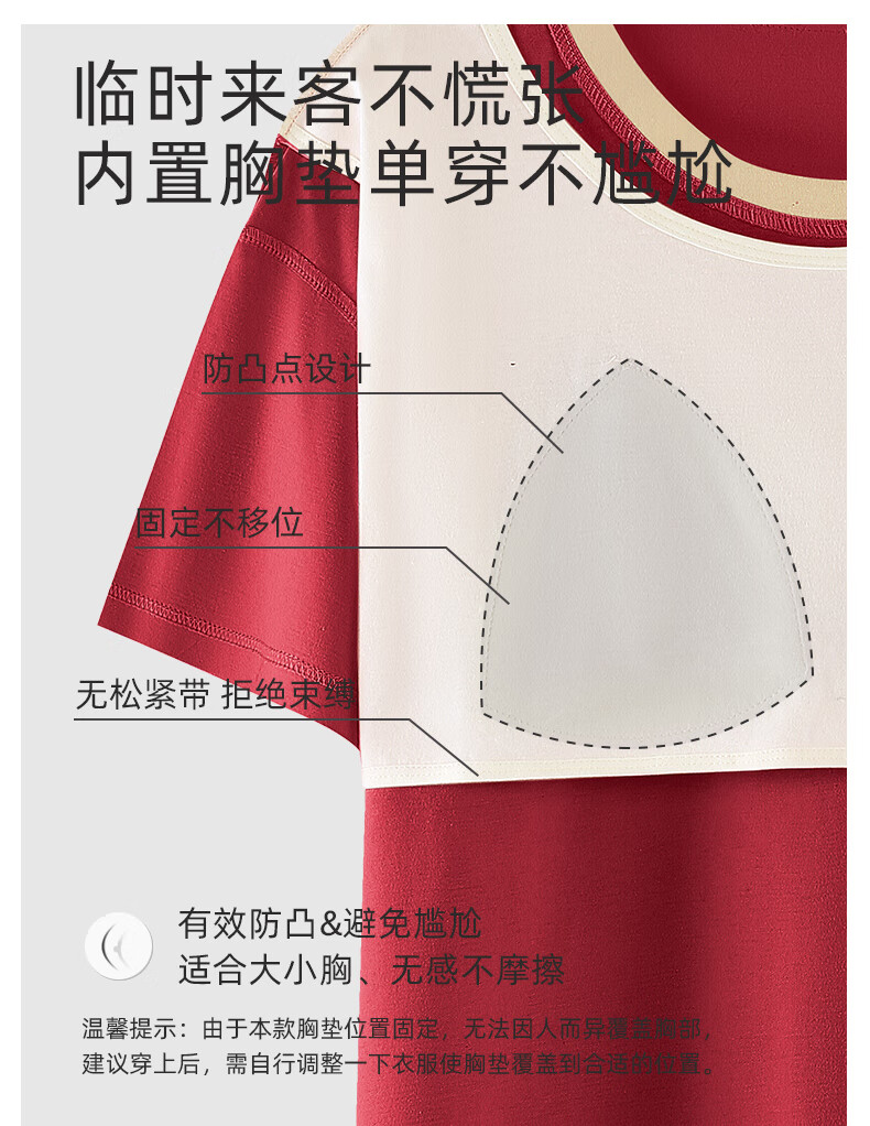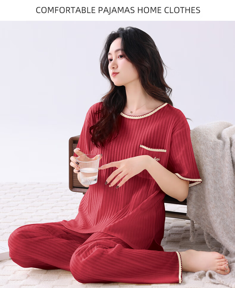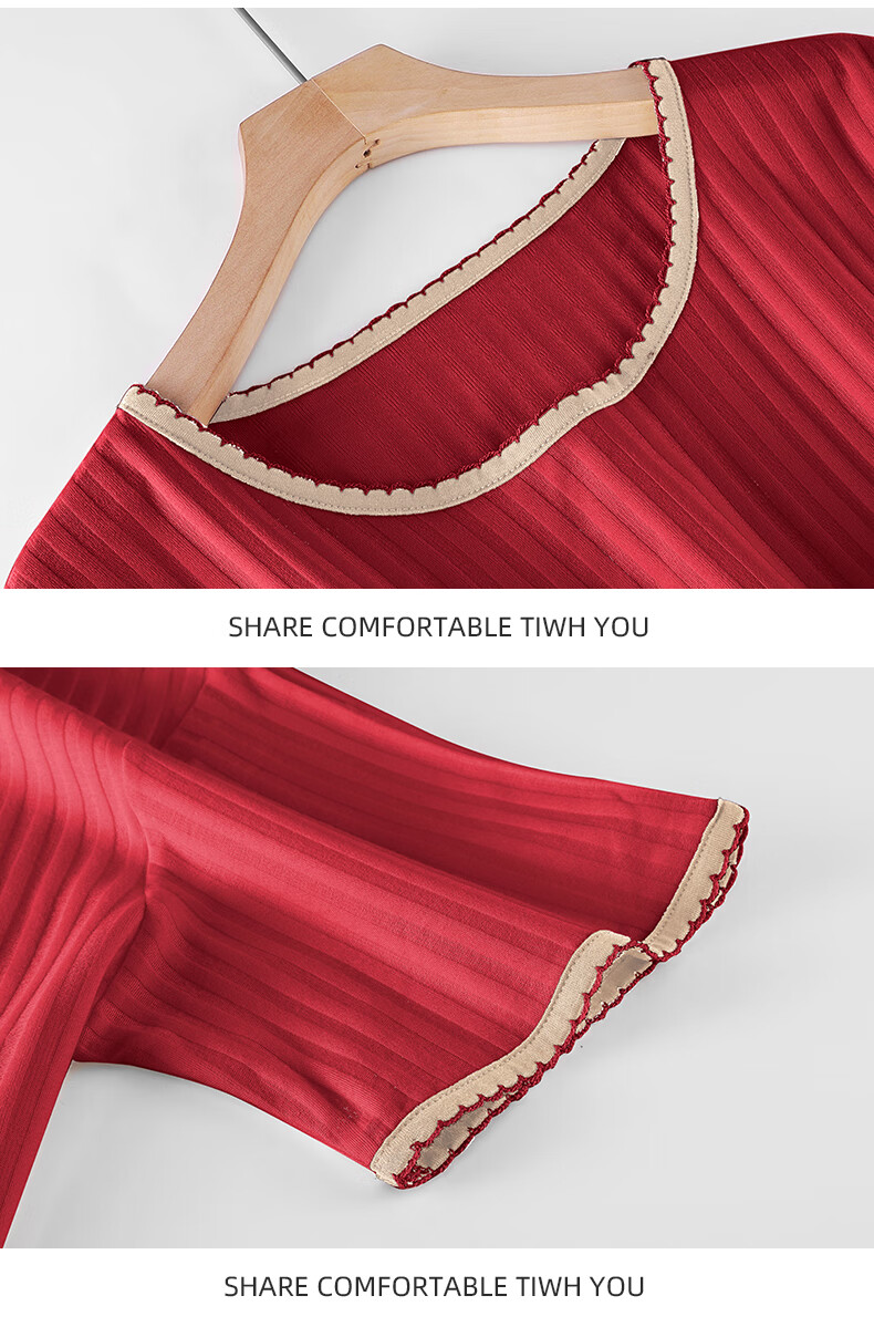 叶盼(yepan)【带胸垫】纯棉睡衣女夏季短袖长裤喜庆红宽松大码女士家居服套装 98153-宝石红【带胸垫】 M (160) :建议80-100斤穿着