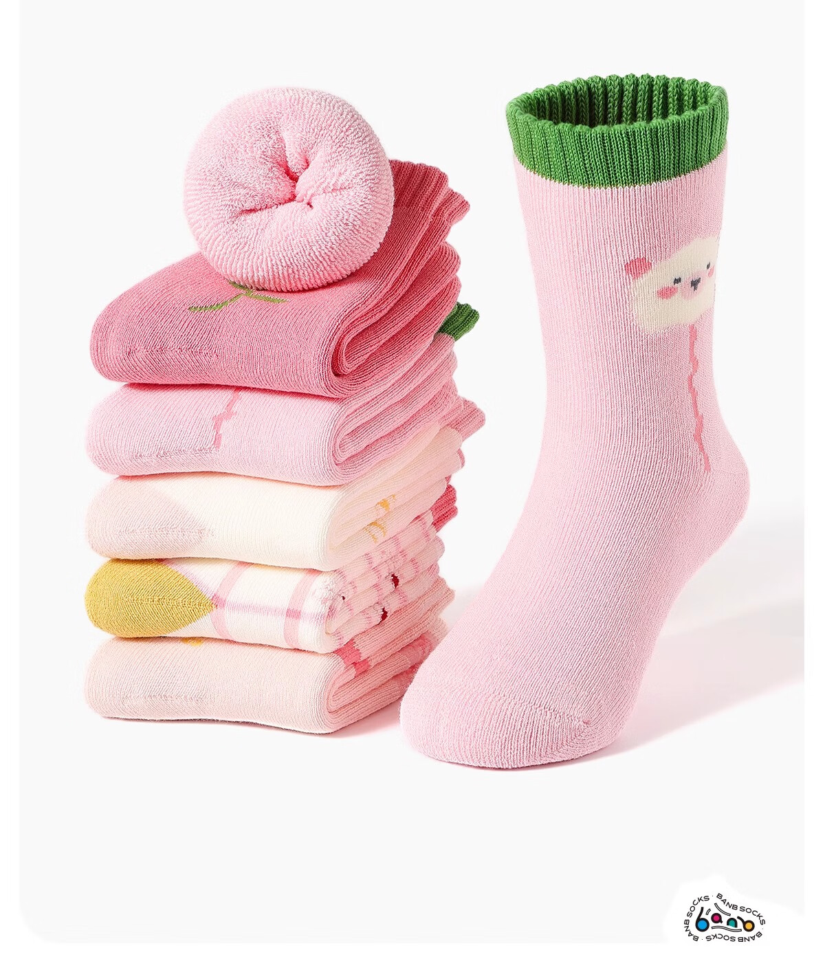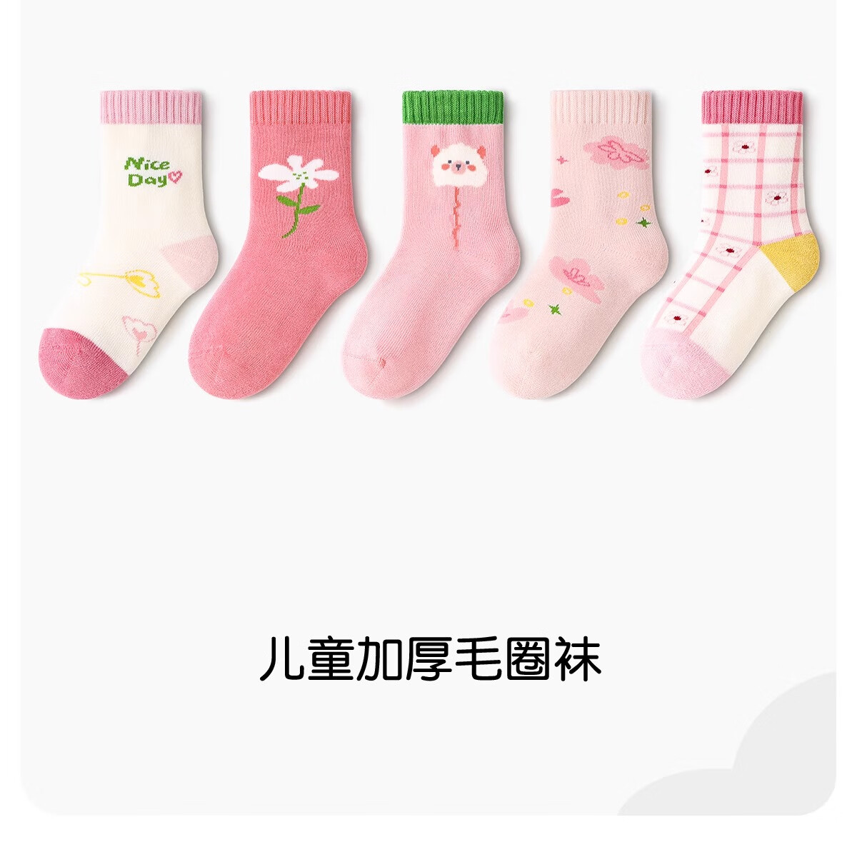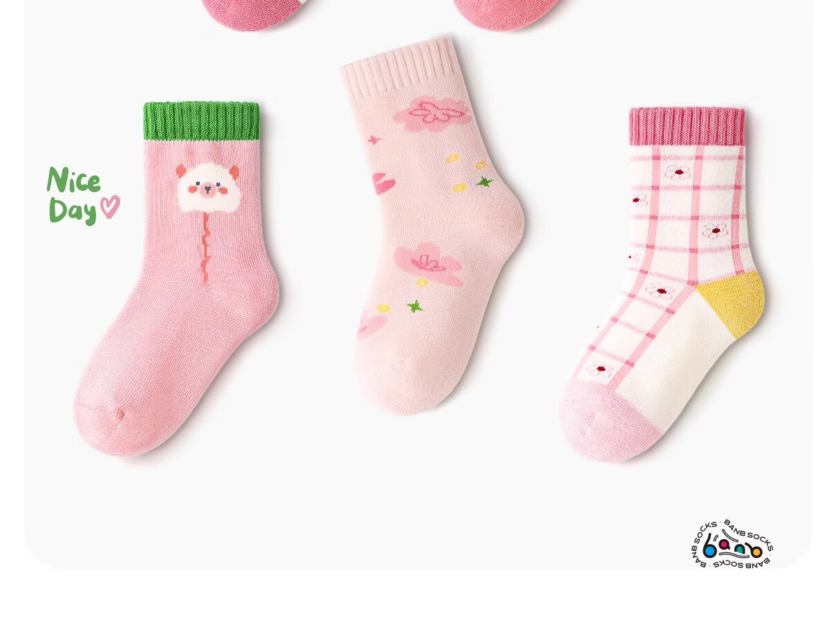 斑比儿童袜子秋冬天加绒加厚保暖女童中筒毛圈棉袜BB2494 18-20码