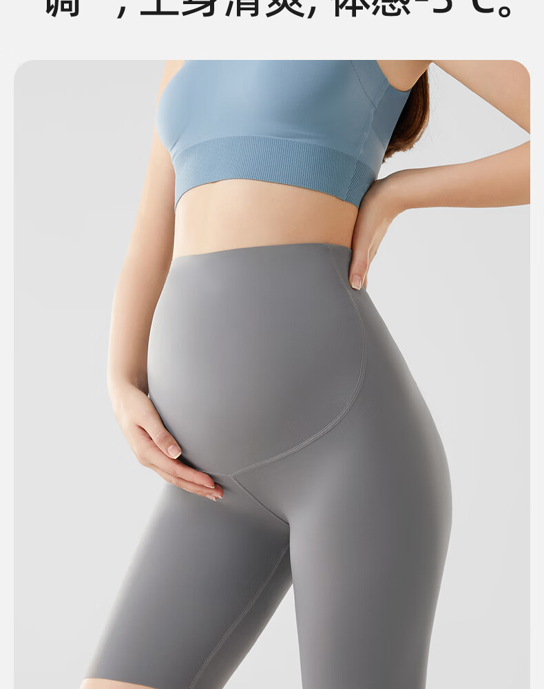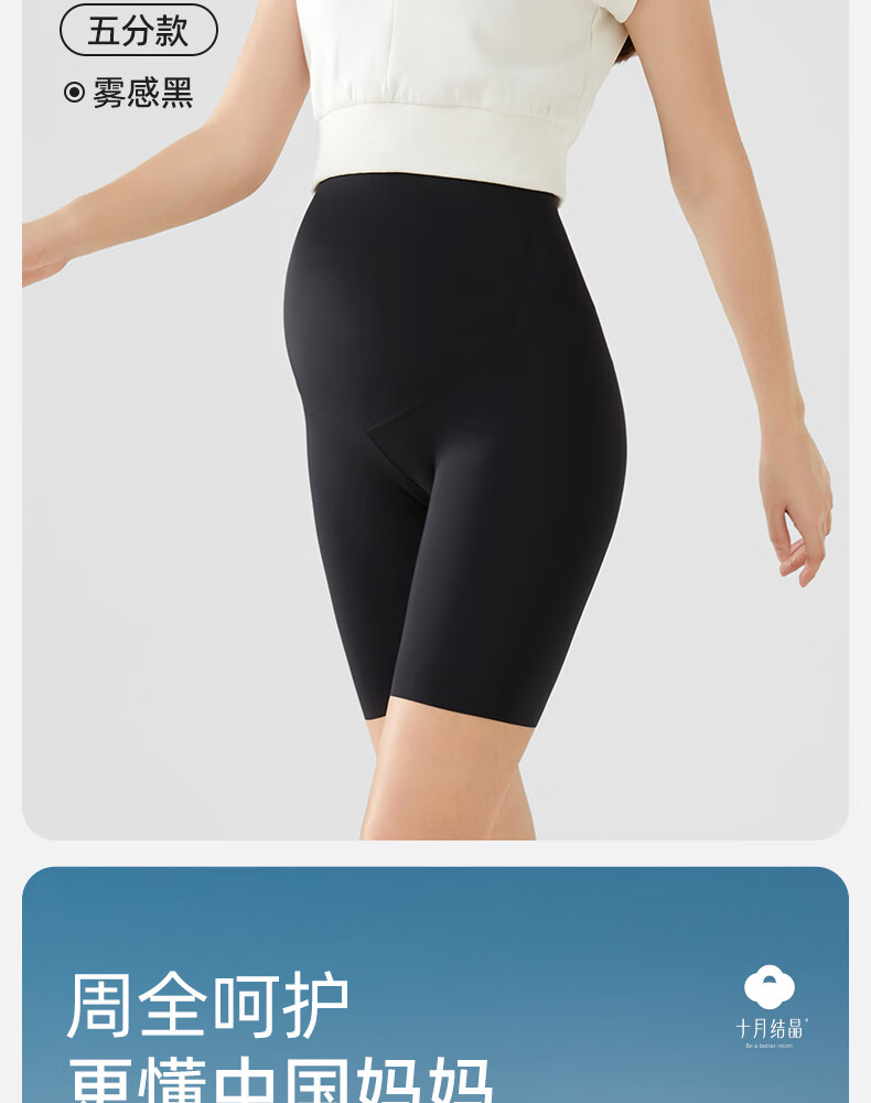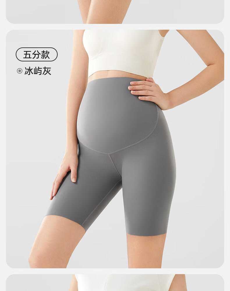 十月结晶孕妇裤孕妇装夏季五分打底裤高腰轻薄透气安全裤鲨鱼裤冰屿灰XL