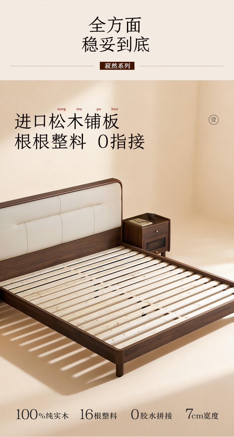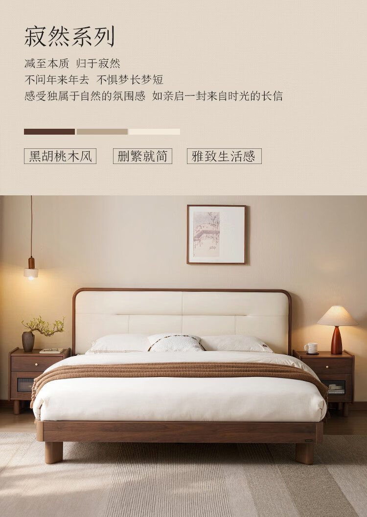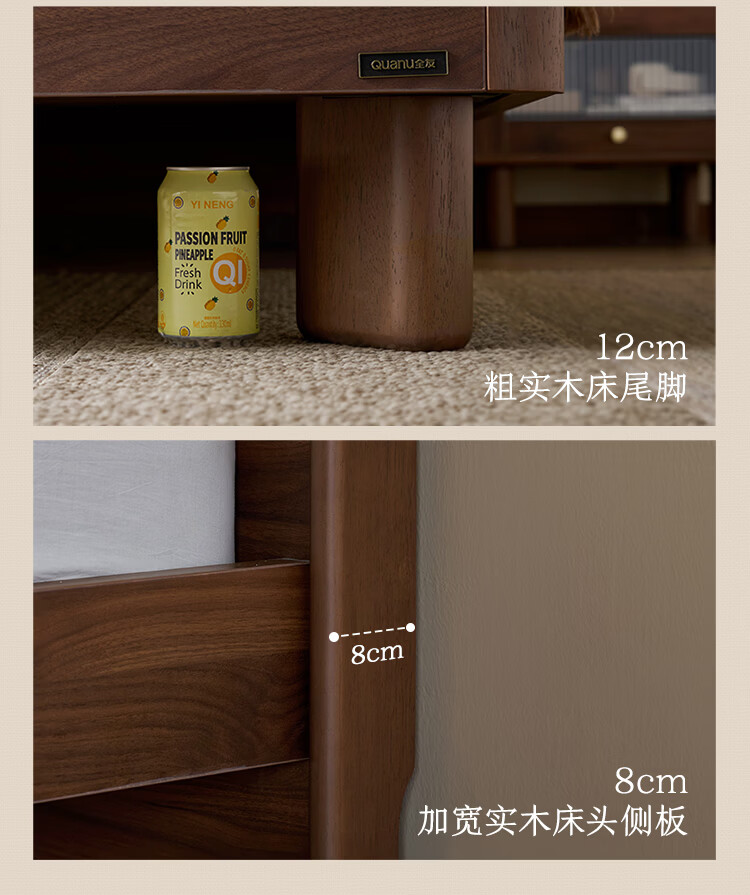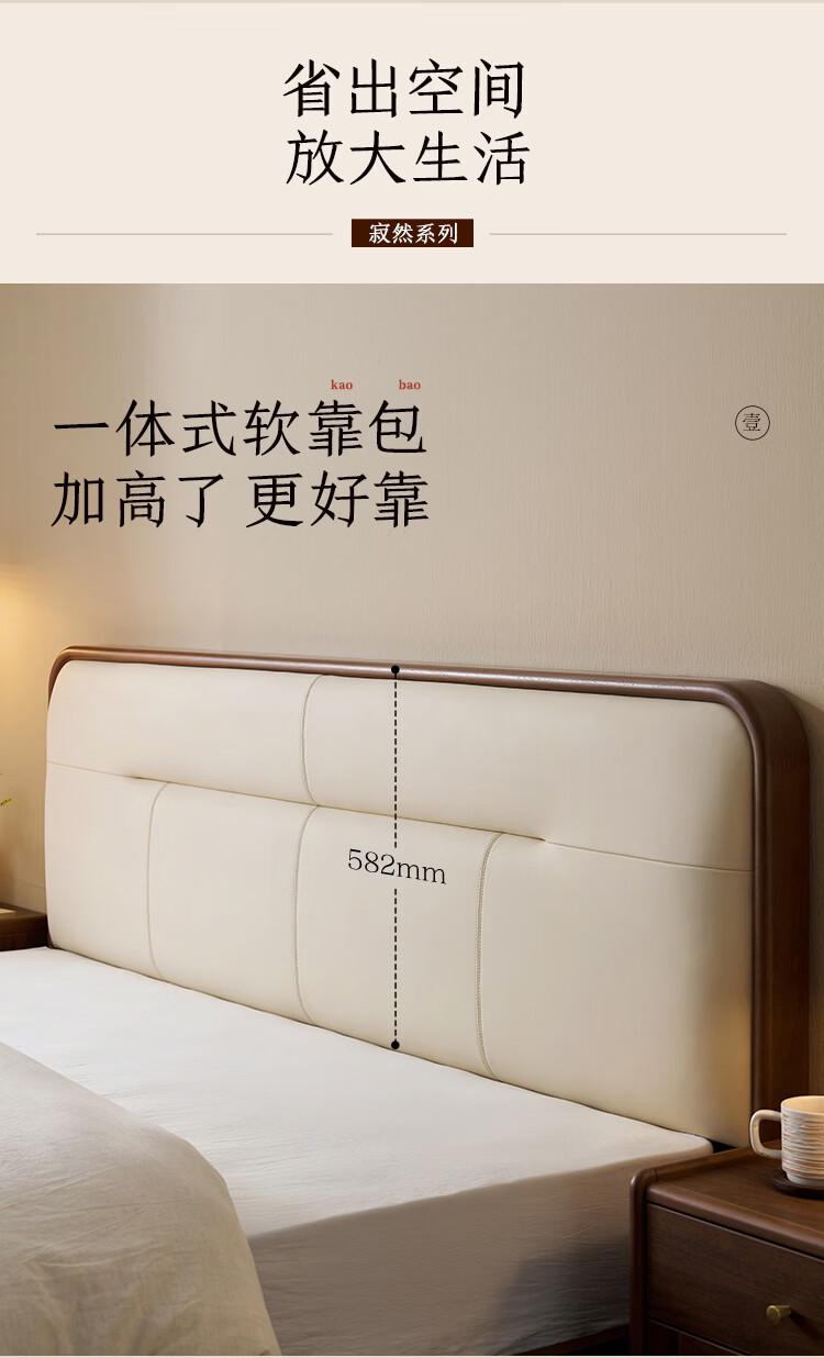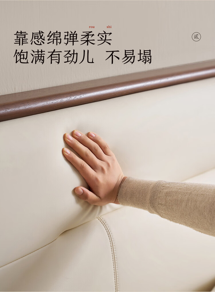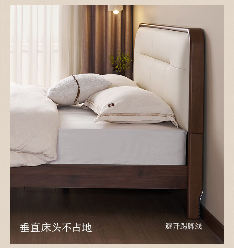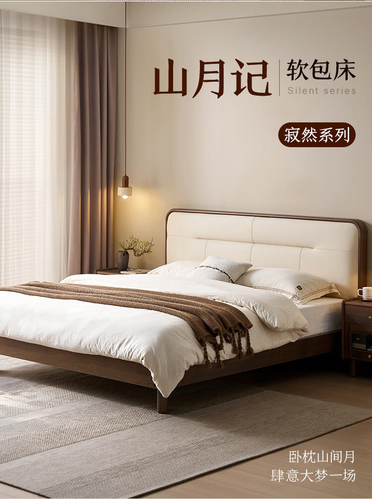 全友家居新中式实木软包床家用主卧室实木框架皮艺软包齐边双人大床 【黑胡桃木风 | 米白色软包】 1.8米x2米 单床 +床垫