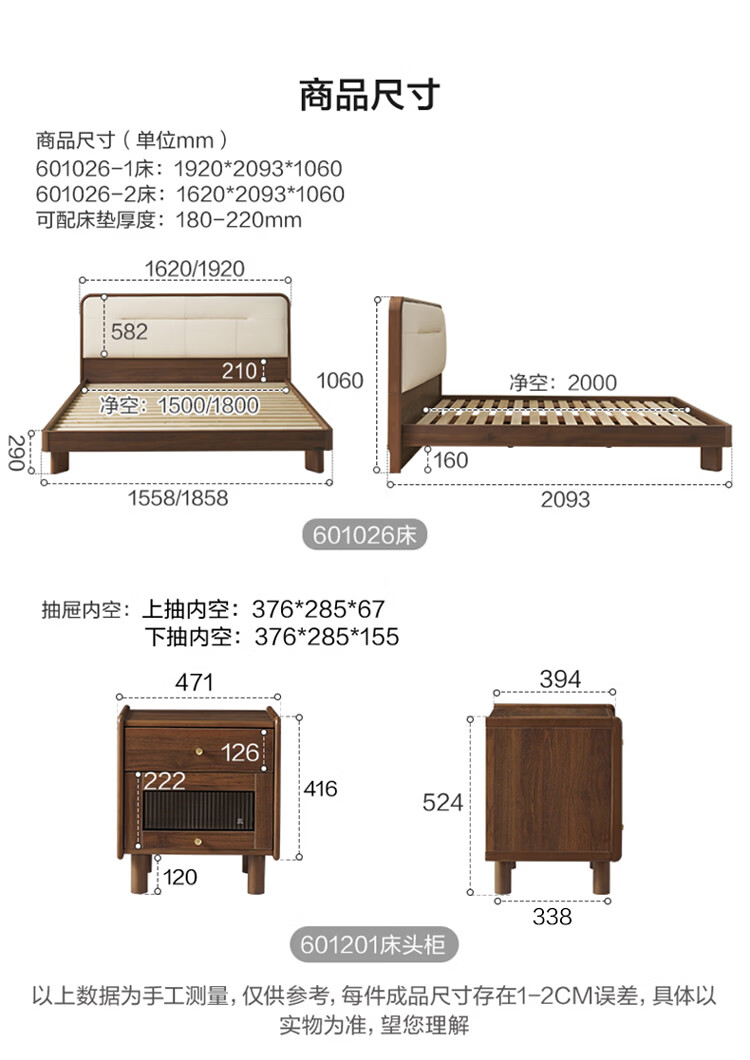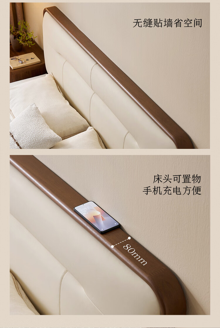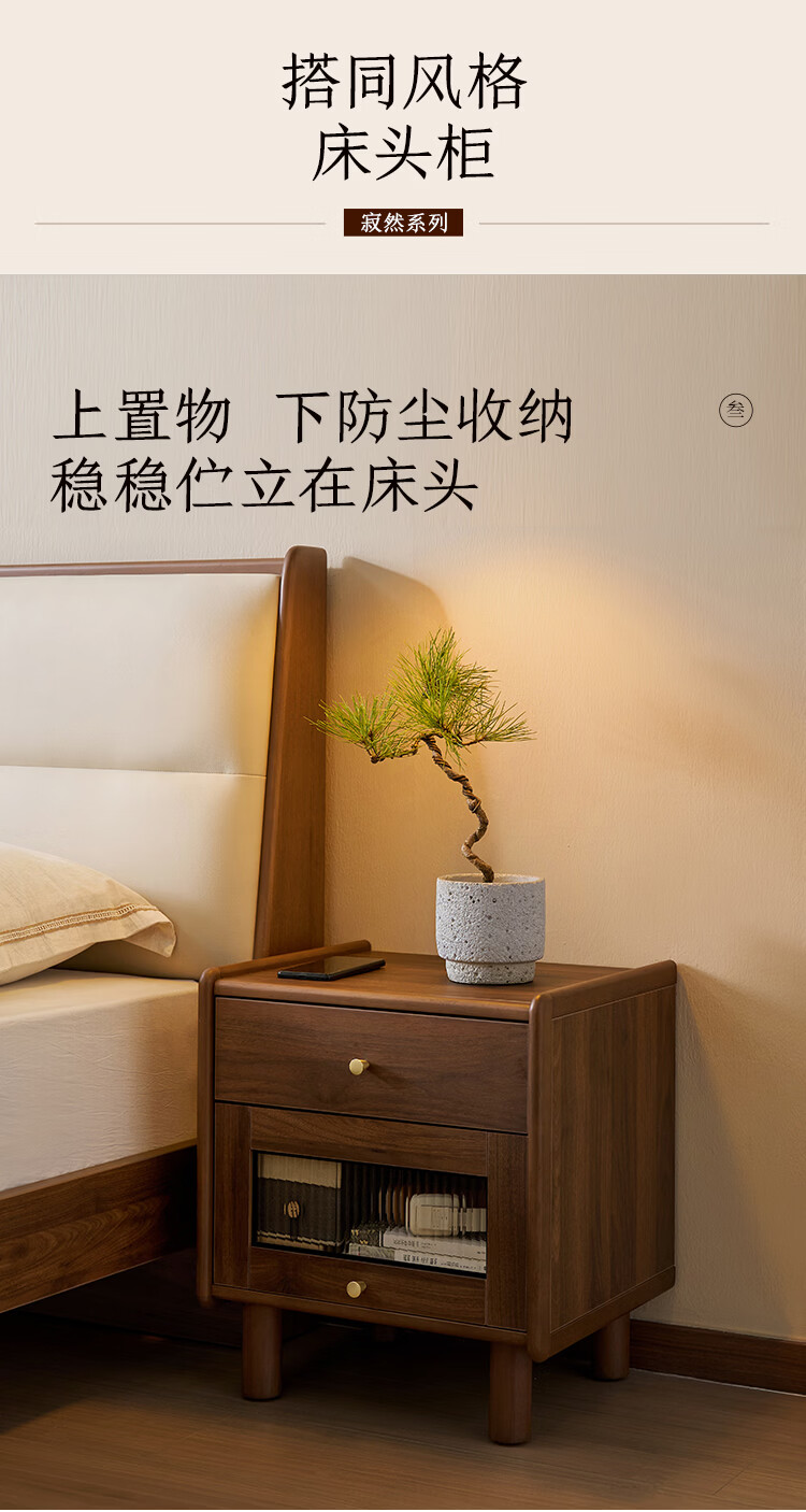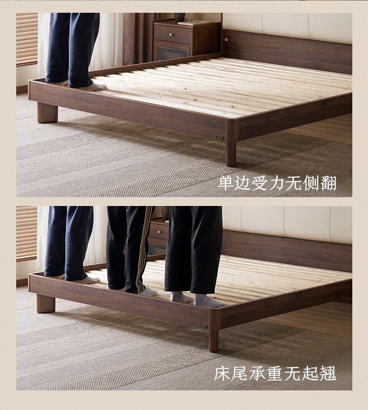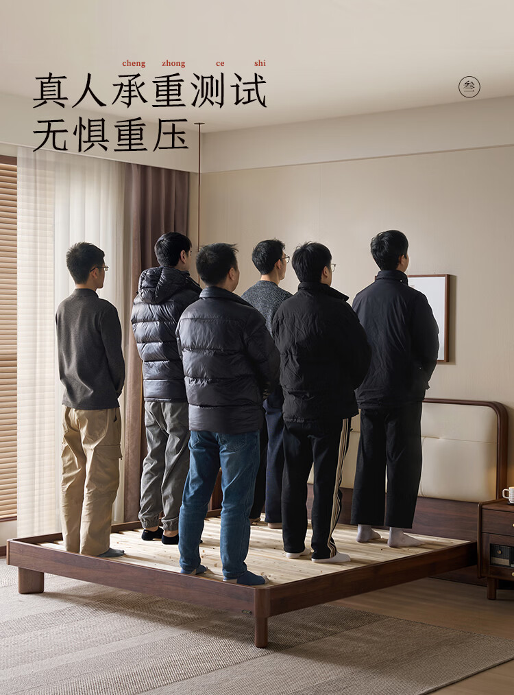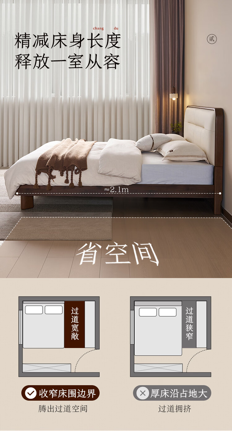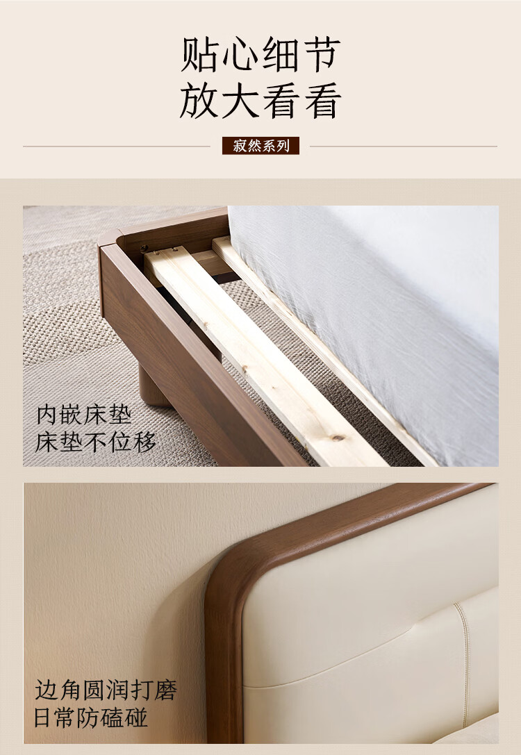 全友家居新中式实木软包床家用主卧室实木框架皮艺软包齐边双人大床 【黑胡桃木风 | 米白色软包】 1.8米x2米 单床 +床垫