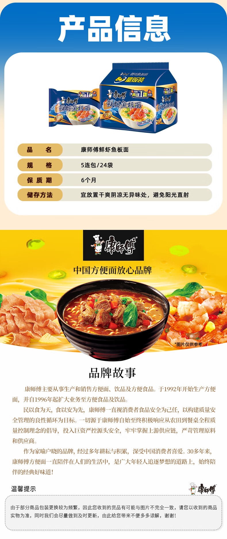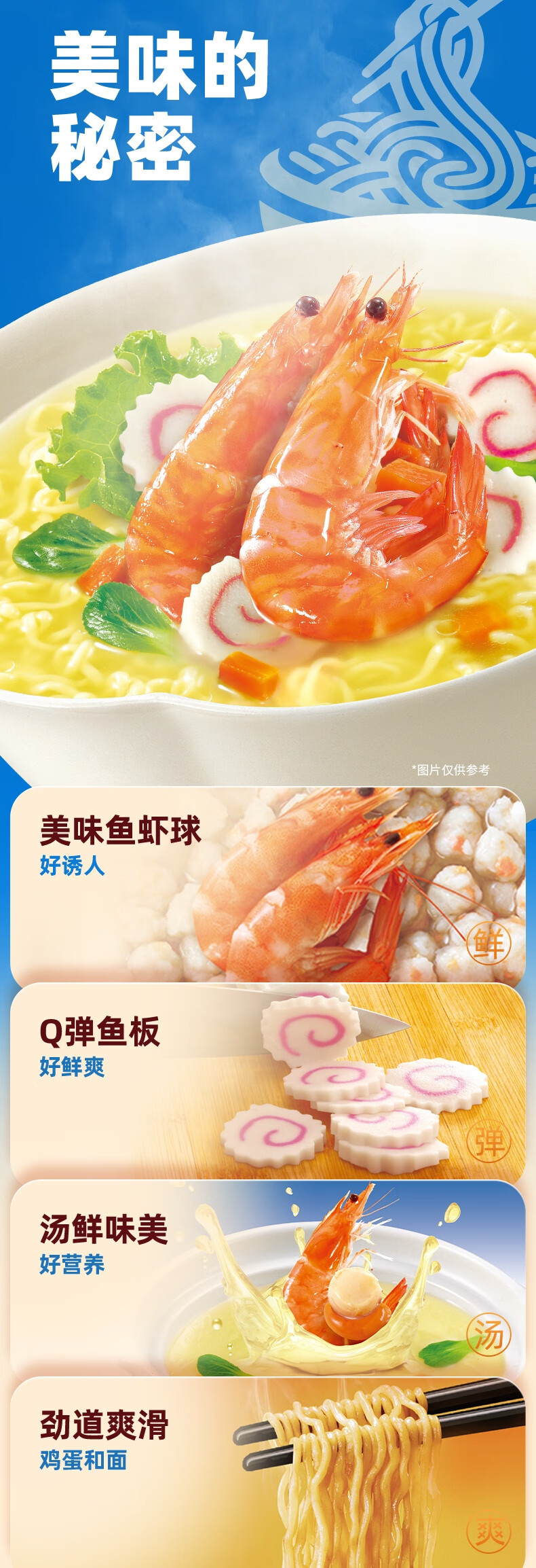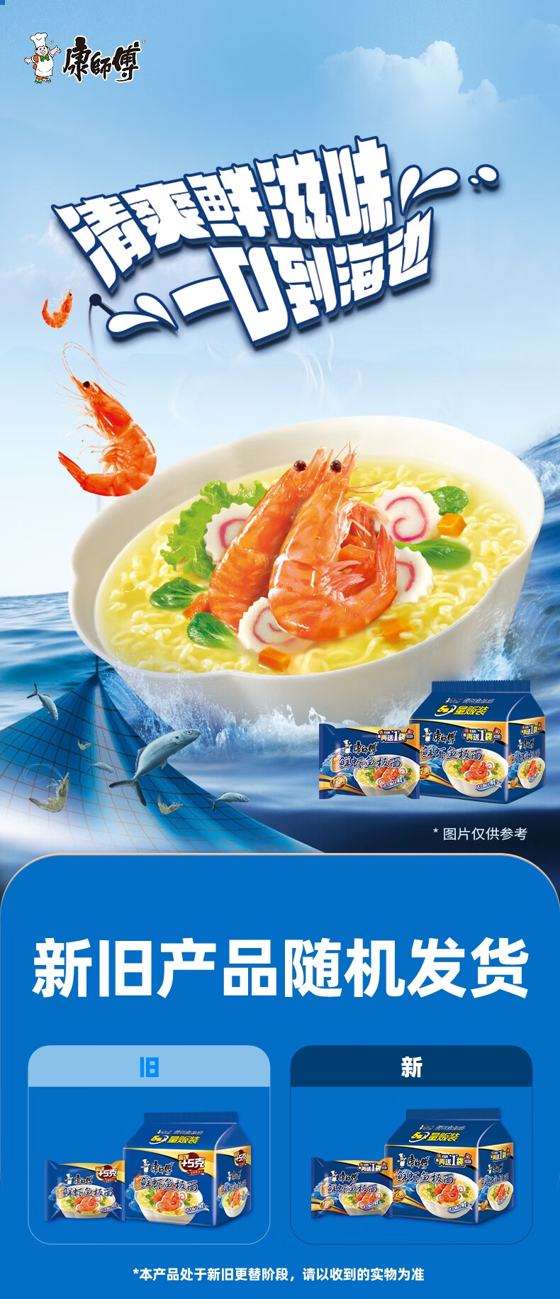 康师傅 方便面 经典鲜虾鱼板面五连包98g*5 泡面袋装速食 方便食品