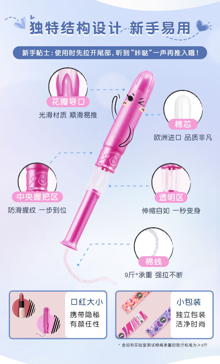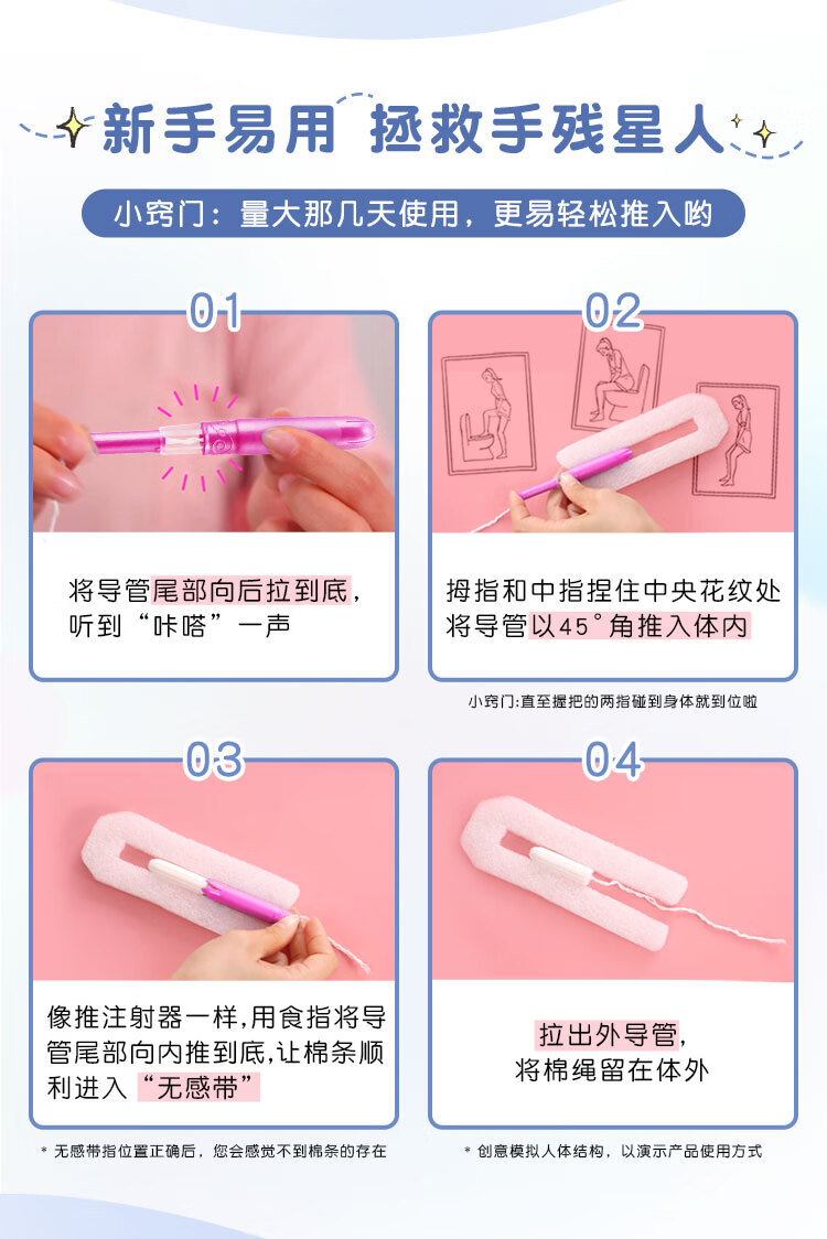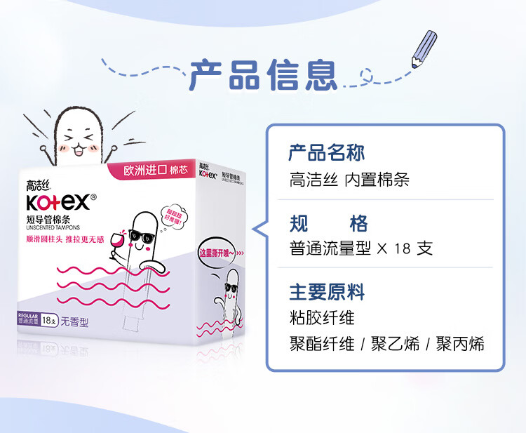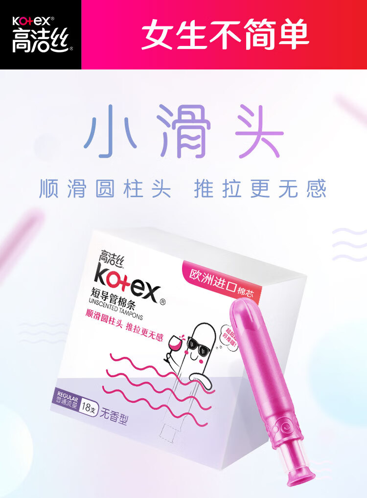 高洁丝口袋导管卫生棉条易推普通流量18支纤细棉芯导管京东自营官方旗舰