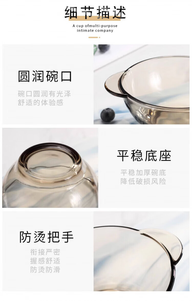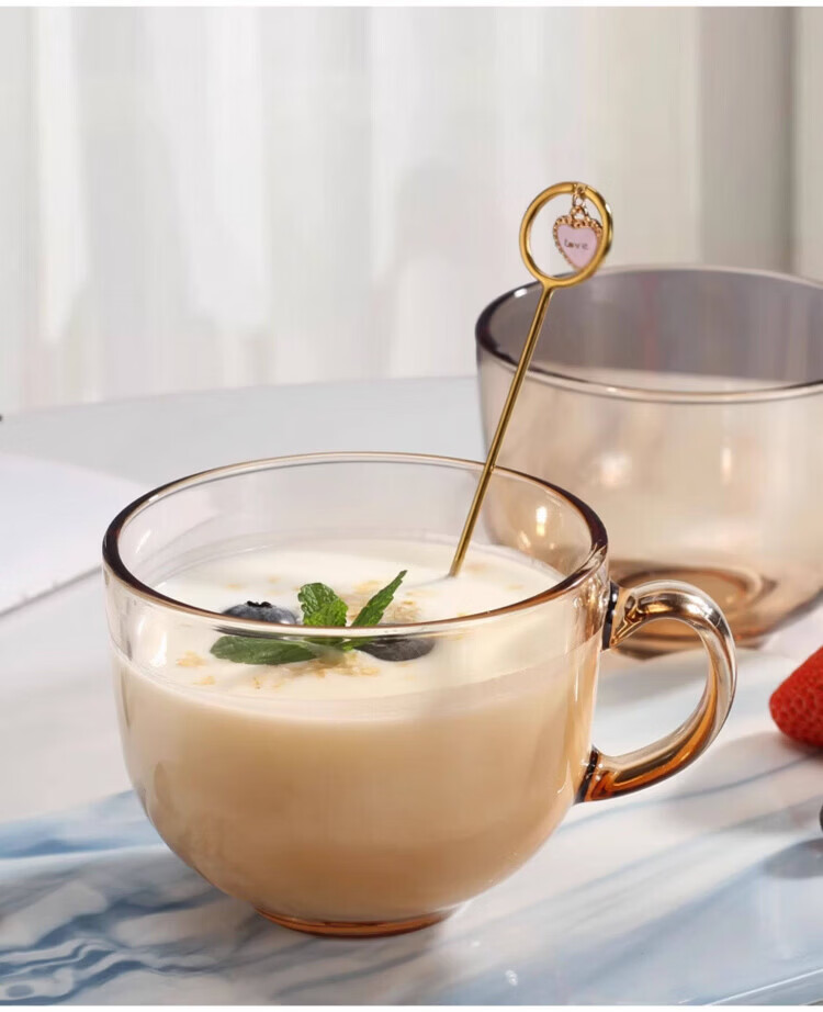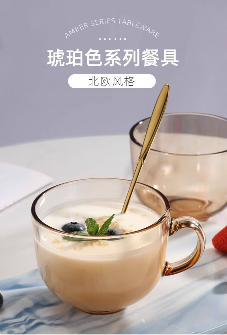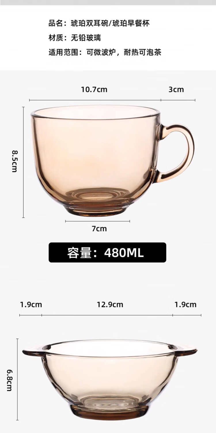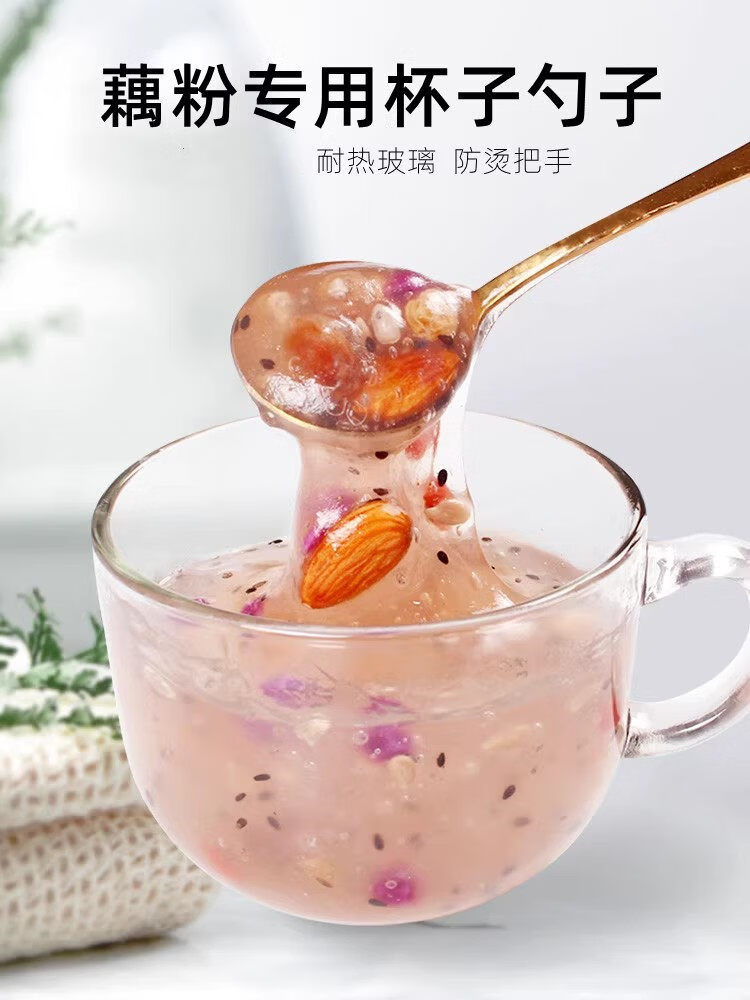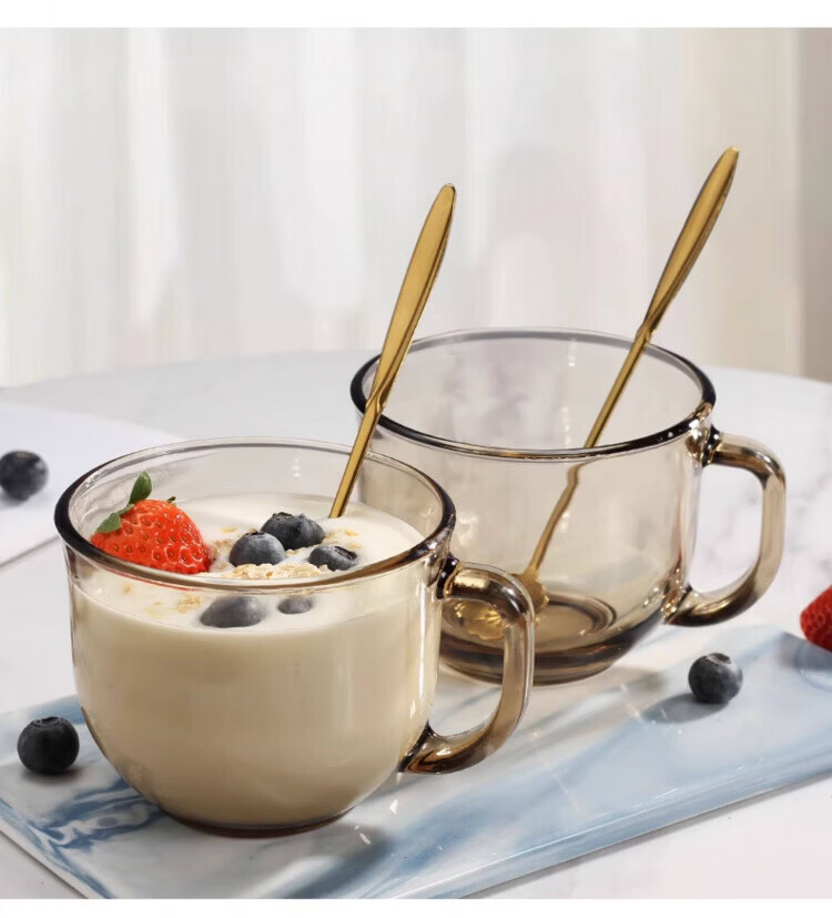 高端冲泡藕粉杯子勺子进早餐杯口燕麦片牛奶杯耐高温玻璃碗微波炉 藕粉双耳碗(2套)