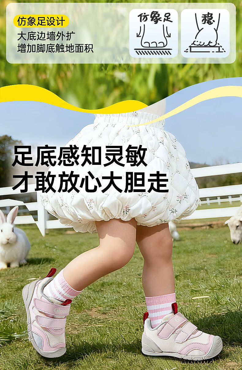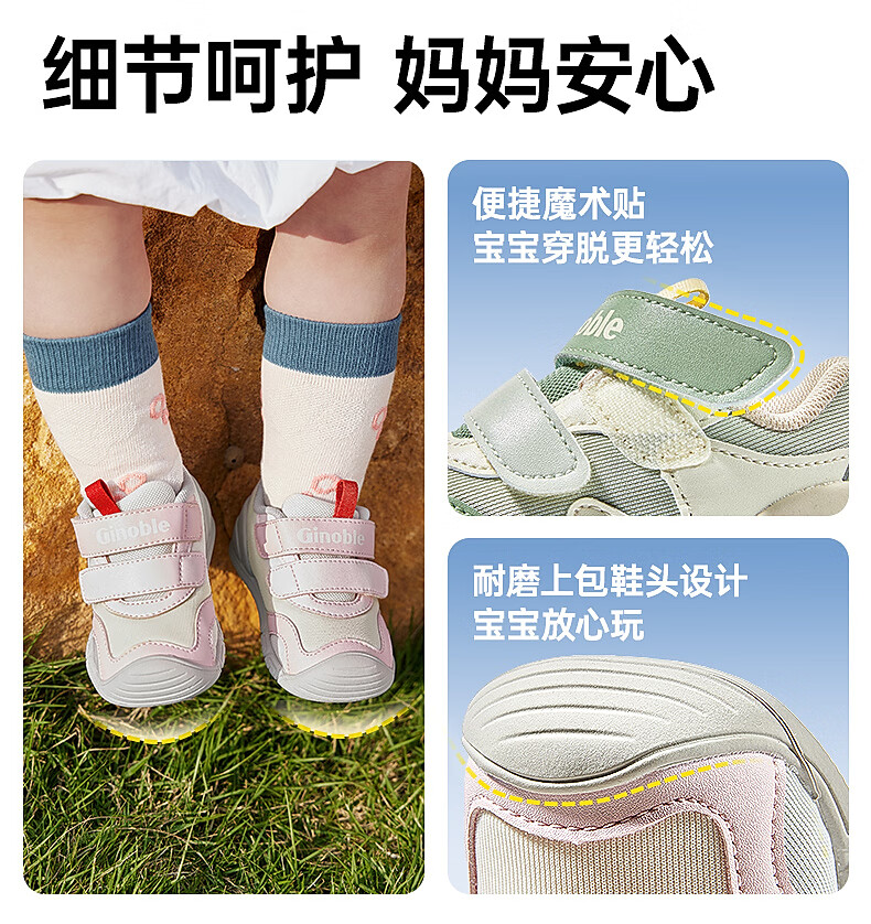 基诺浦(ginoble)学步鞋2026年春季新品步前鞋0-1岁婴儿宝宝鞋男女童鞋GB2518 浅玫粉_天空粉_月灰 21 130mm 适合脚长130-135mm