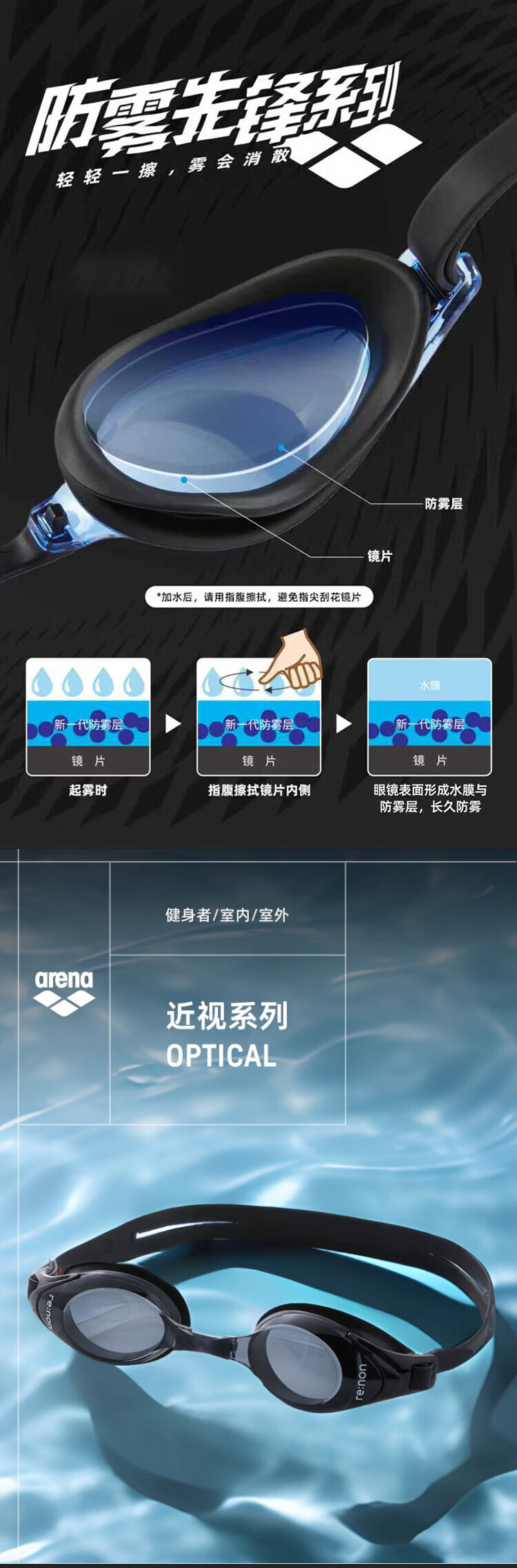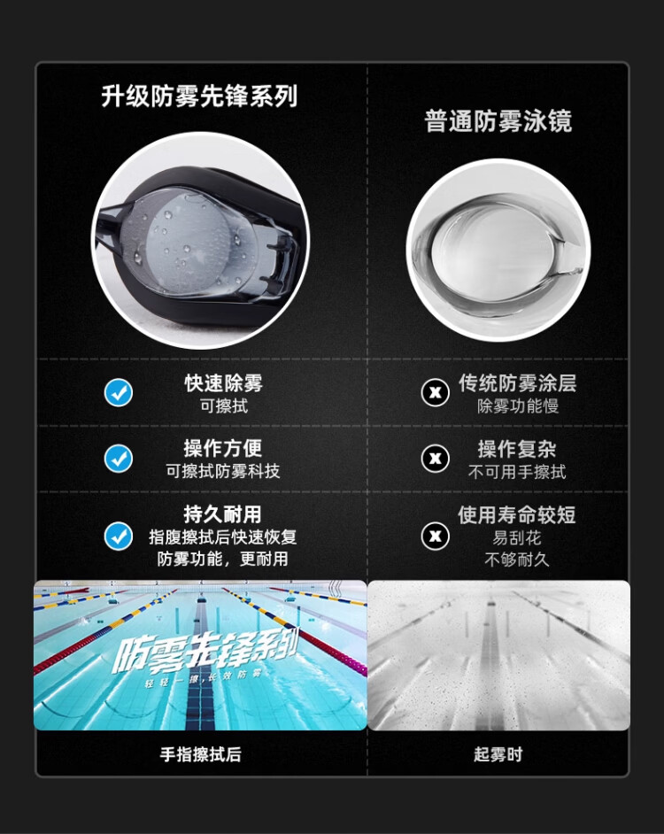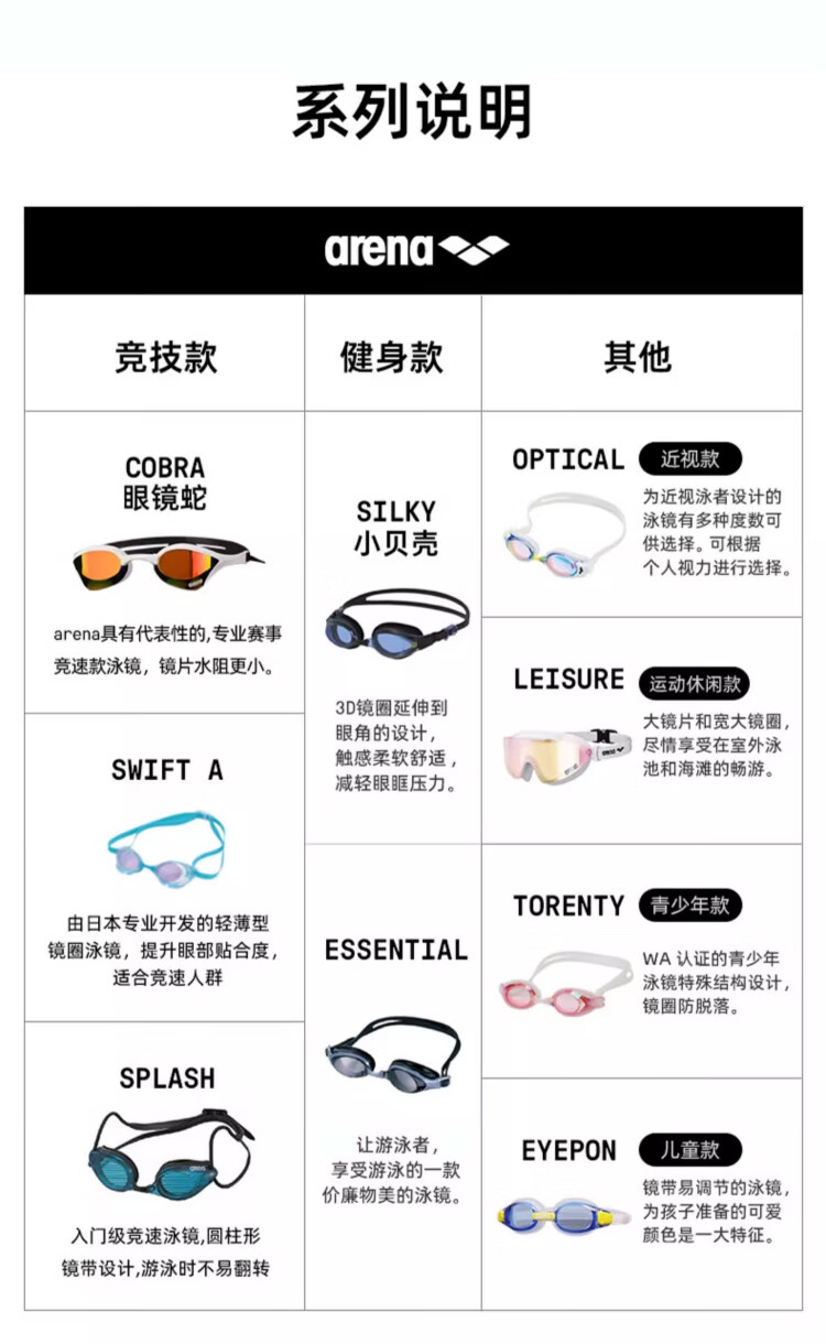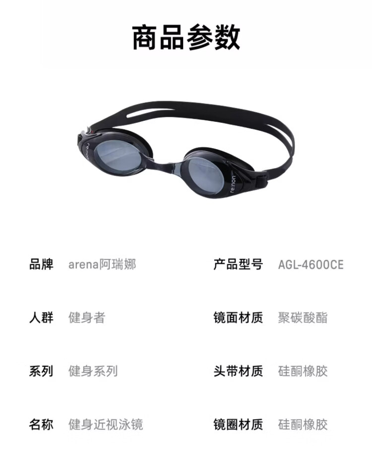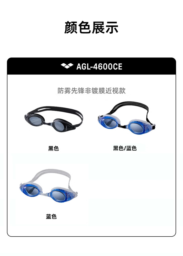 阿瑞娜(arena)近视高清防雾先锋可左右度数不同游泳镜/镀膜左右眼相同度数泳镜 防雾先锋近视黑色4600 两眼度数不同度数备注无备注随机