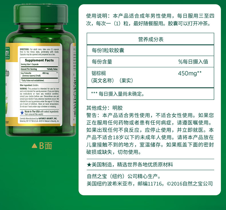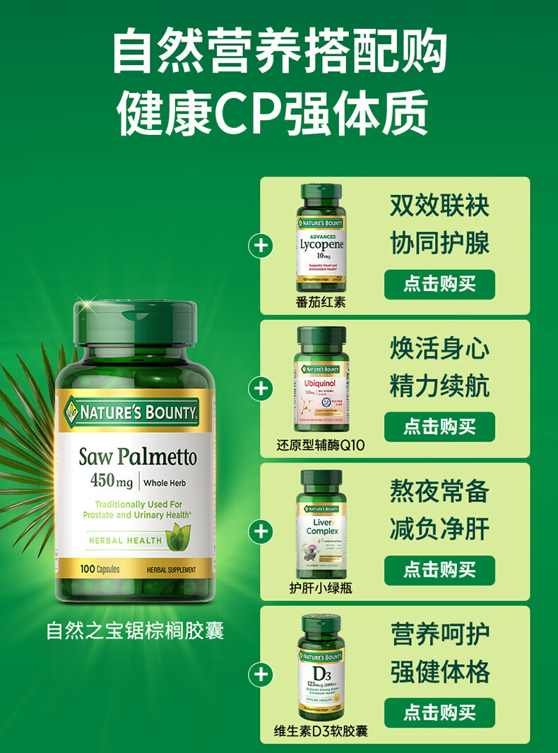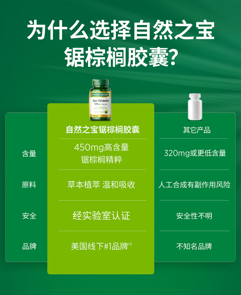 自然之宝高浓缩番茄红素软胶囊高纯度锯棕榈成人男士备孕保健美国原装进口 锯棕榈胶囊1瓶体验新品上线(专护前列腺健康)