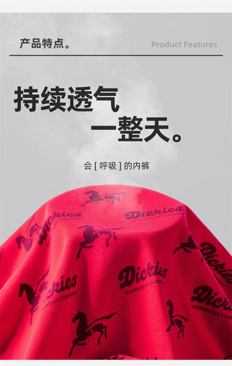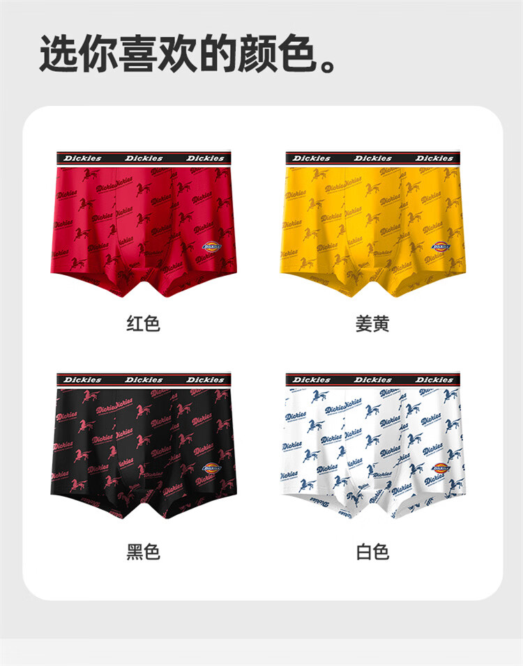 Dickies【马年限定】男士内裤纯棉红色本命年四角抗菌透气加大平角裤礼盒 黑色+白色+姜黄色 奥戴尔棉舒适透气 3条 2XL 适合体重150-180斤