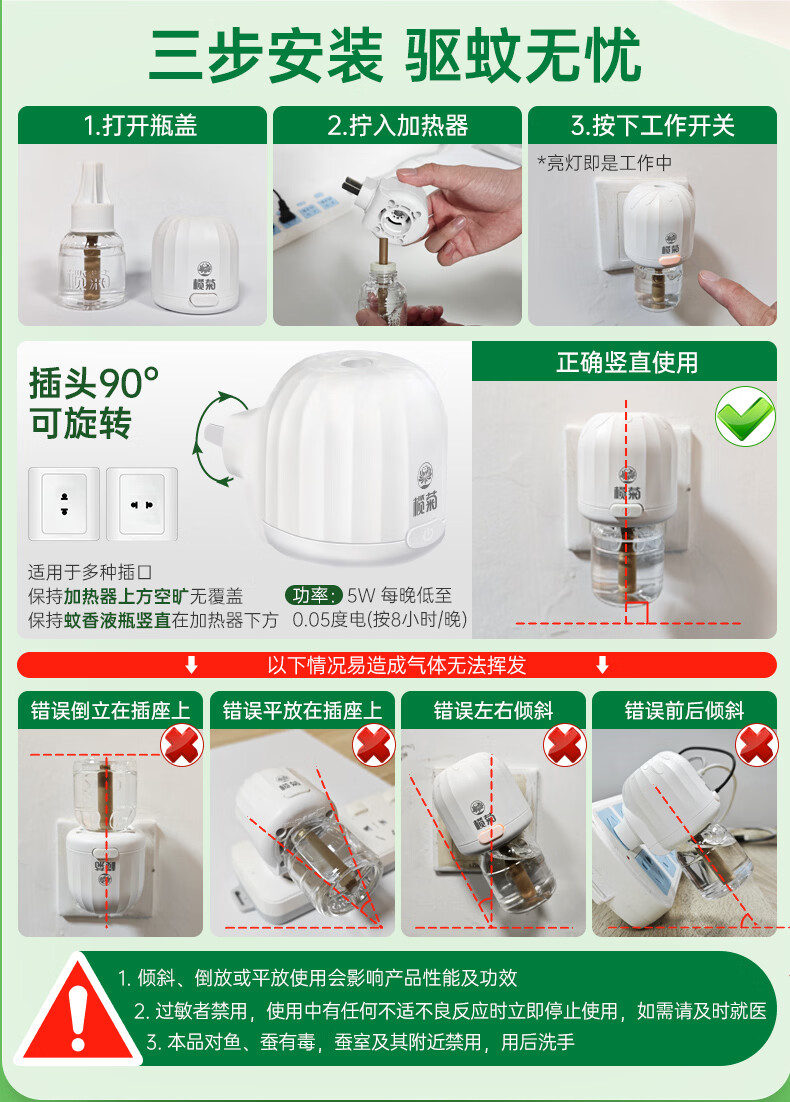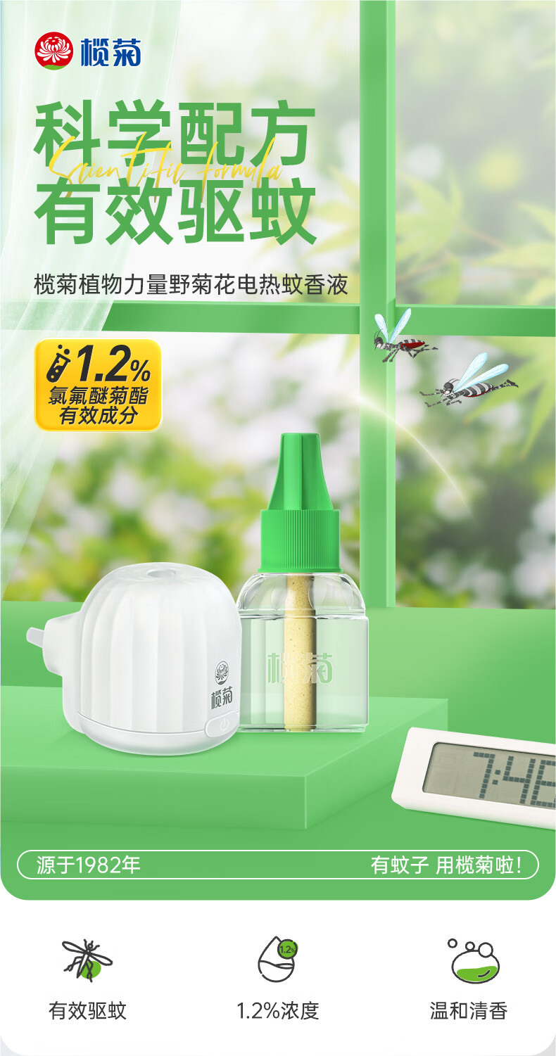 榄菊 野菊花电热蚊香液加热器驱蚊液电蚊香电蚊液灭蚊基孔肯雅热室内 【野菊花香】4瓶+2器