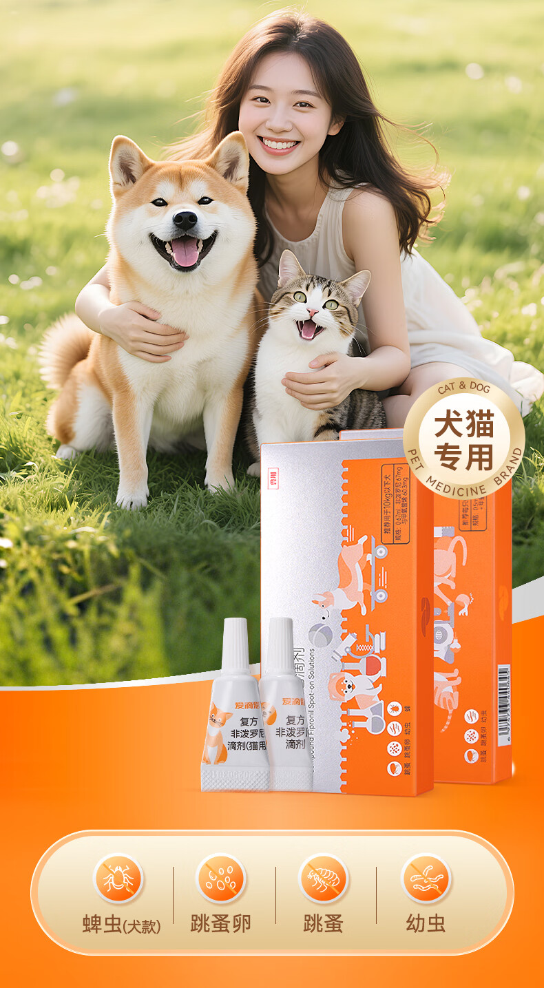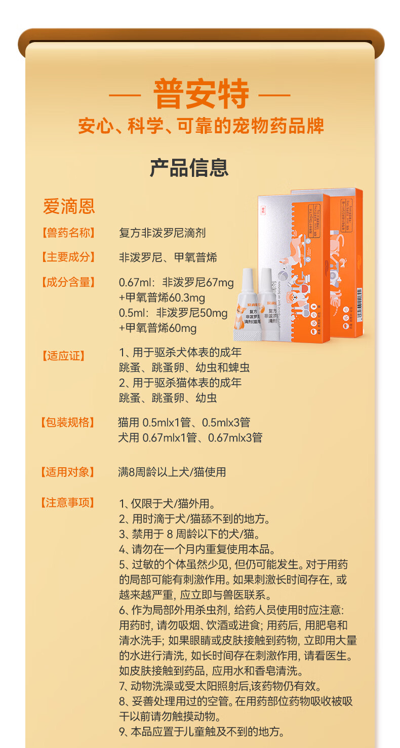 普安特猫咪狗狗驱虫药体外驱虫滴剂幼猫幼犬蜱虫跳蚤虫卵复方非泼罗尼 爱滴恩-复方非泼罗尼滴剂 0.67ml*3支 丨犬用