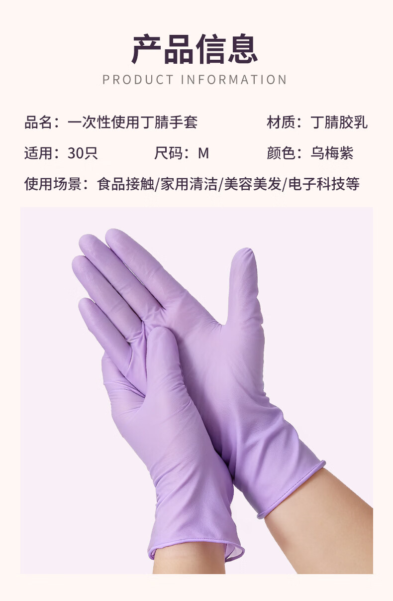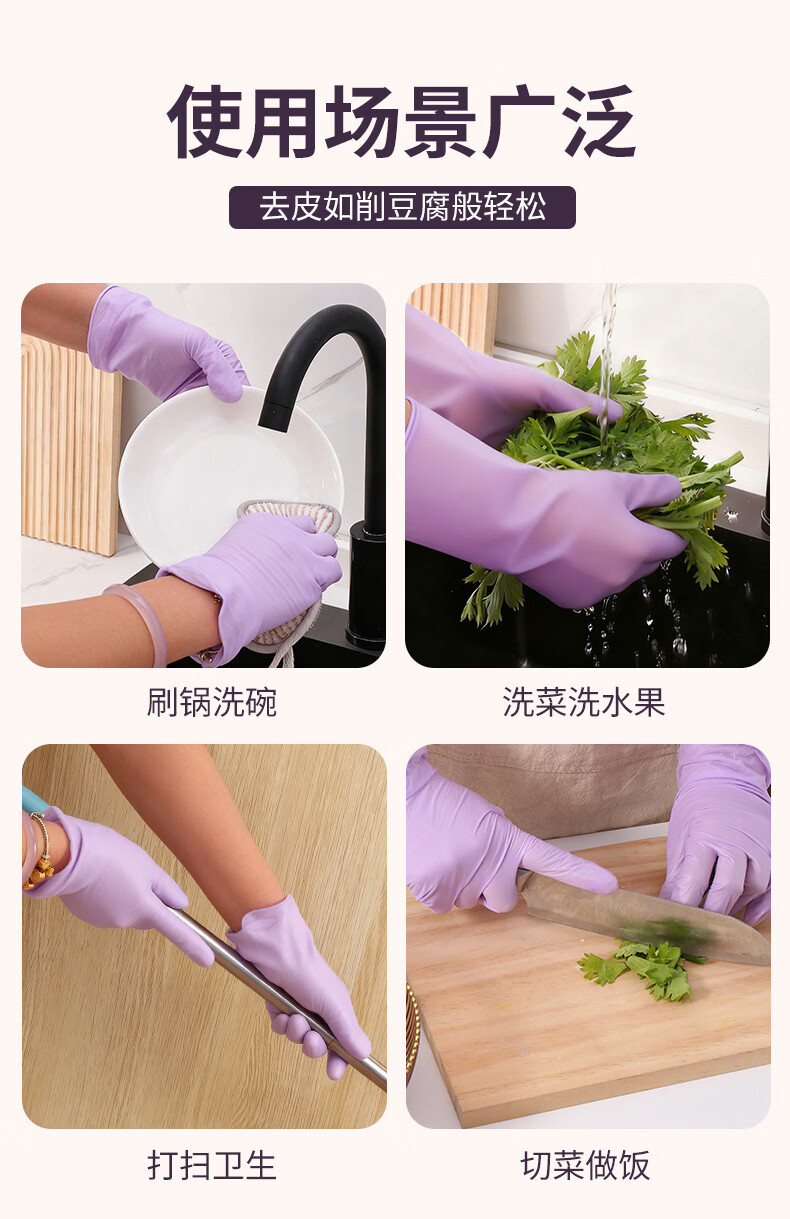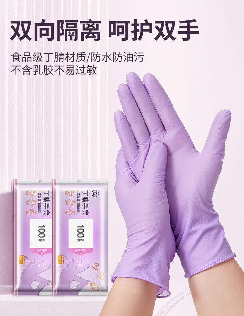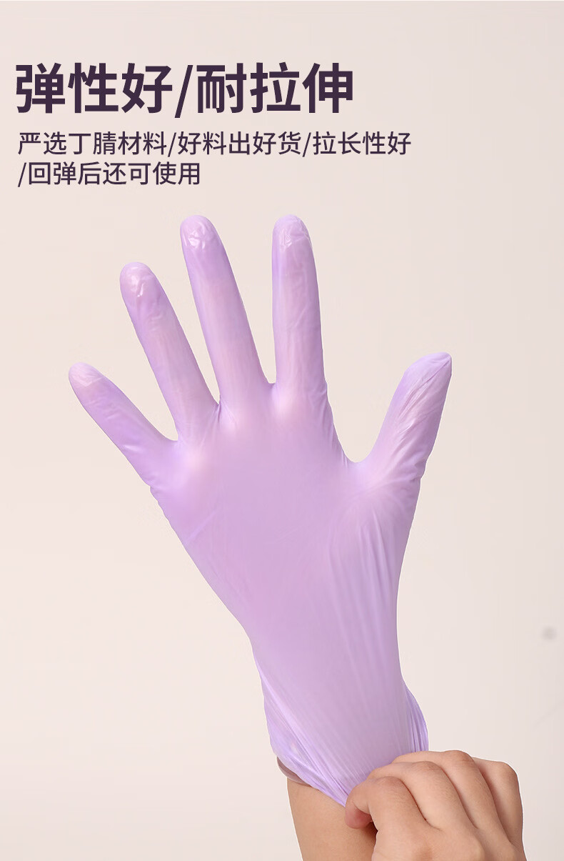 恬舒一次性丁腈手套防水防油清洁手套厨房洗碗橡胶手套食品级专用手套 L码紫色50只