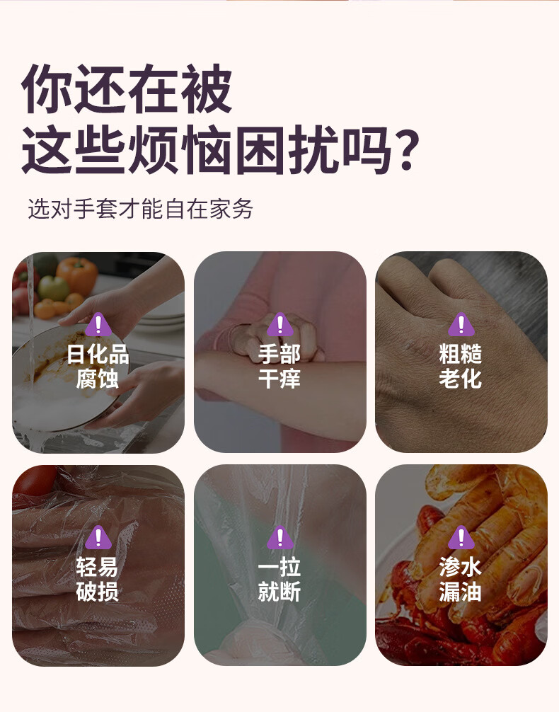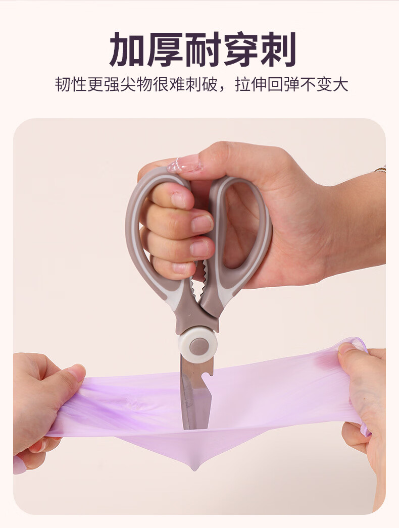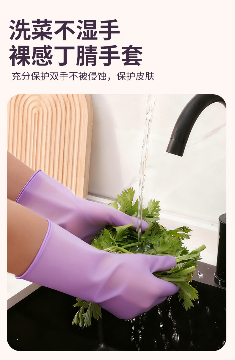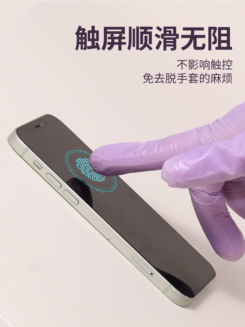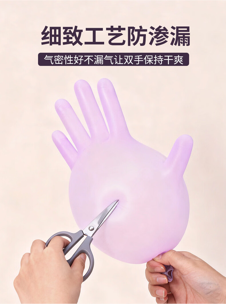 恬舒一次性丁腈手套防水防油清洁手套厨房洗碗橡胶手套食品级专用手套 L码紫色50只