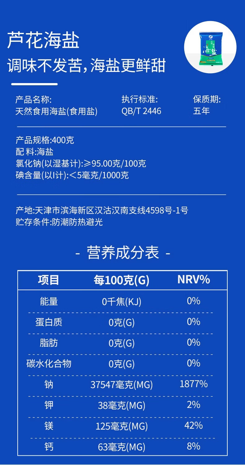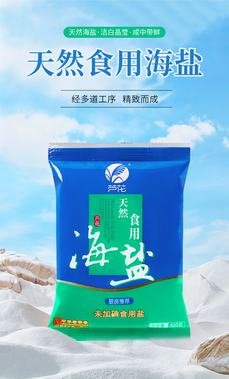 芦花天然食用海盐 400g*7袋 未添加碘 无抗结剂 高品质厨房调料