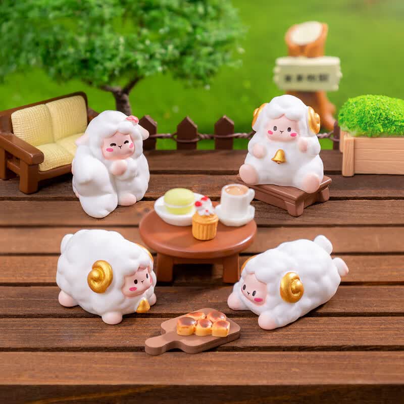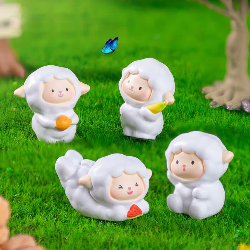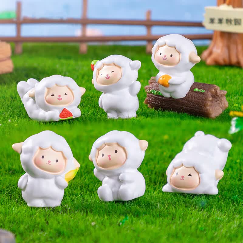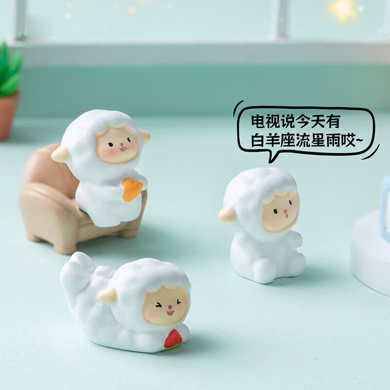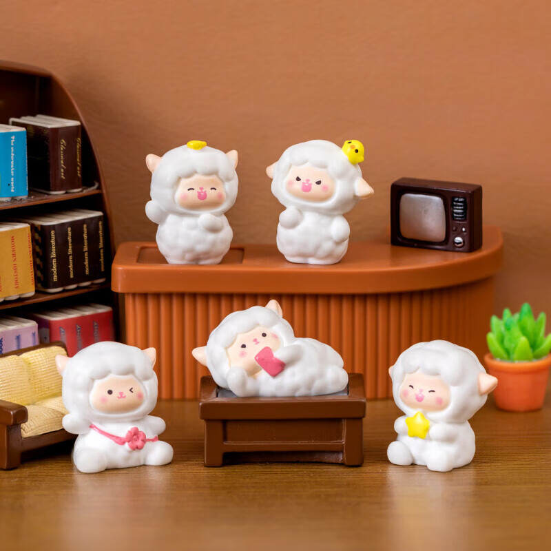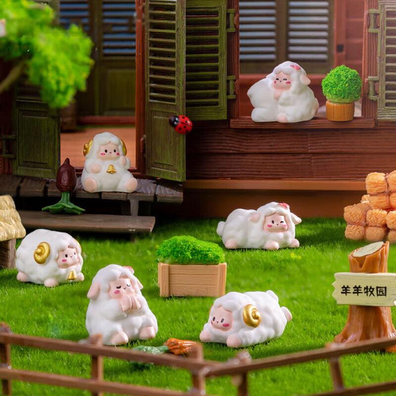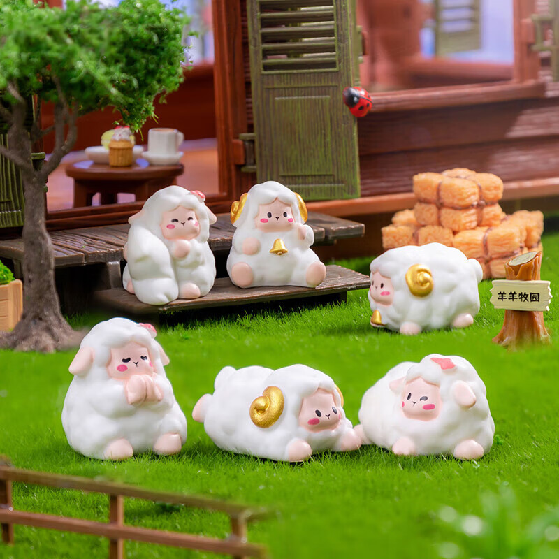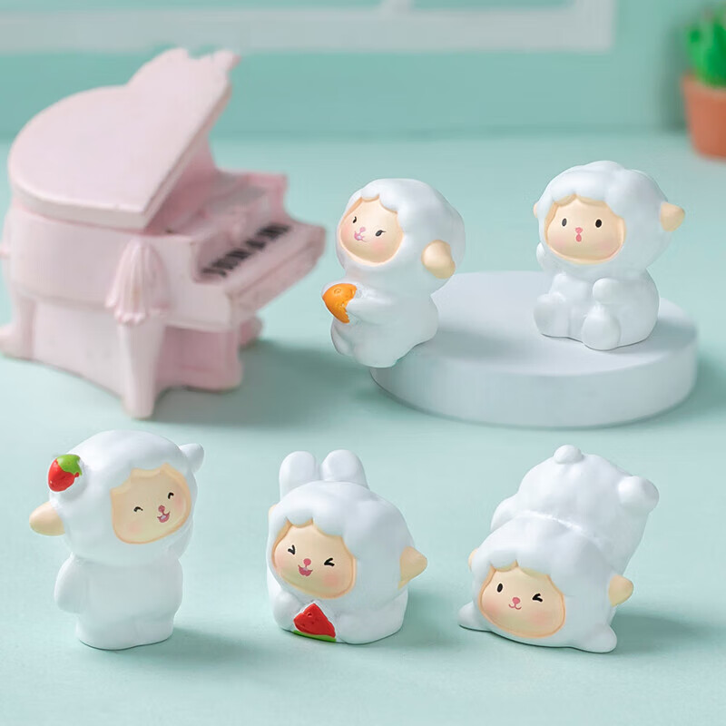 集物一册元旦礼物萌趣小羊微景观摆件工位装饰车载摆件创意生日礼物 农场小羊+布袋盒装+无痕点胶