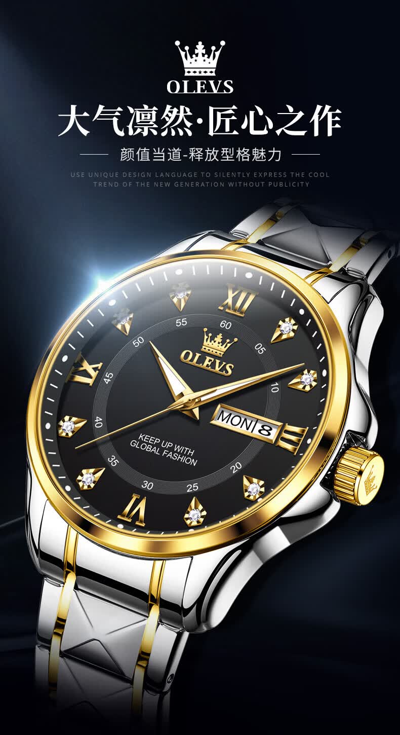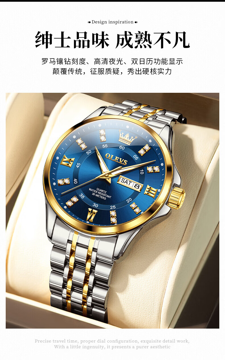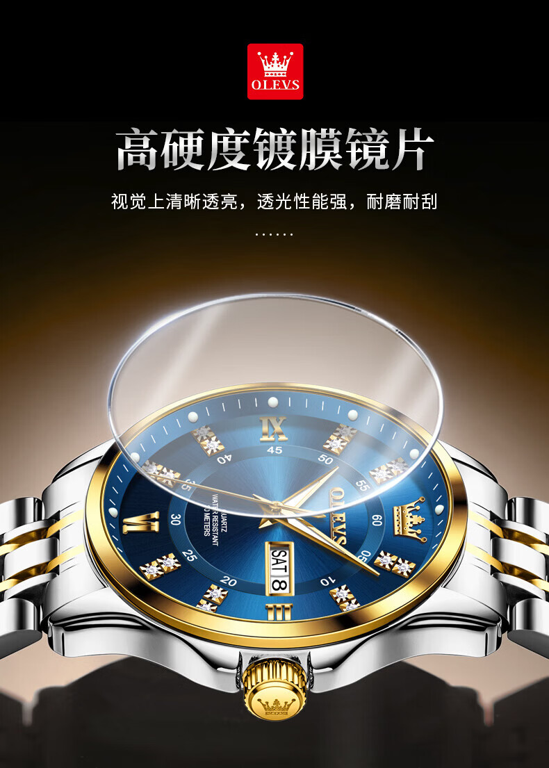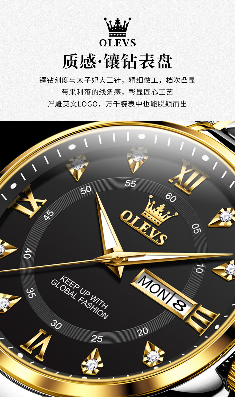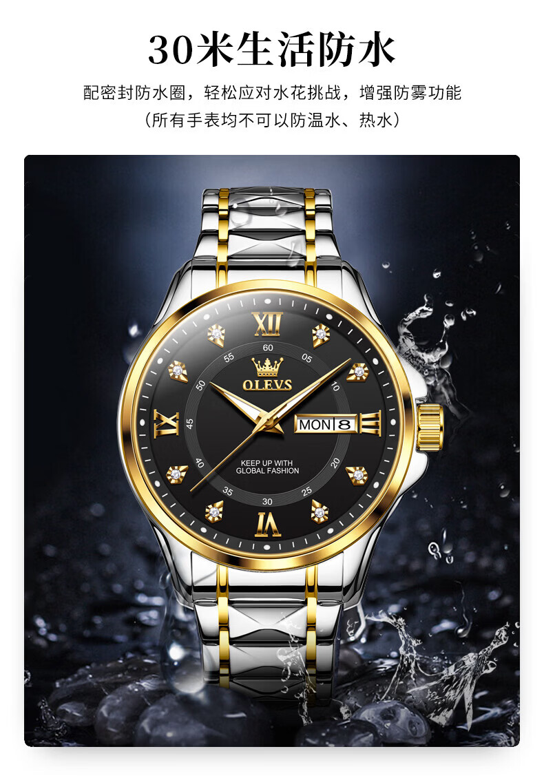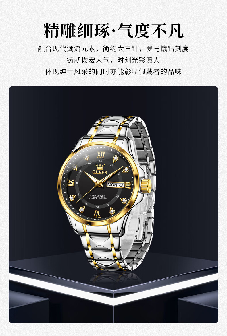 欧利时(OLEVS)瑞士认证手表男石英表品牌十大名表2026新款日历商务高端男士手表 典藏版2906钢带全金男 免费刻字 终身质保