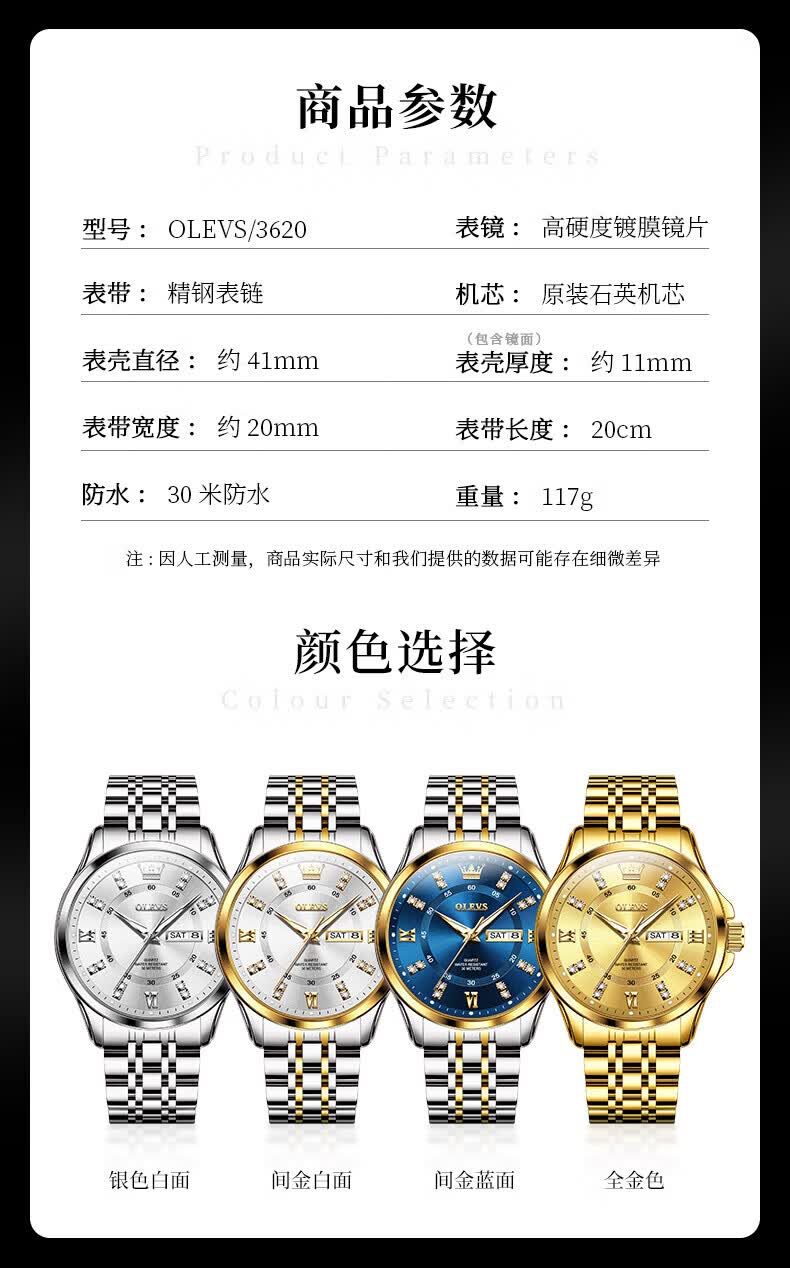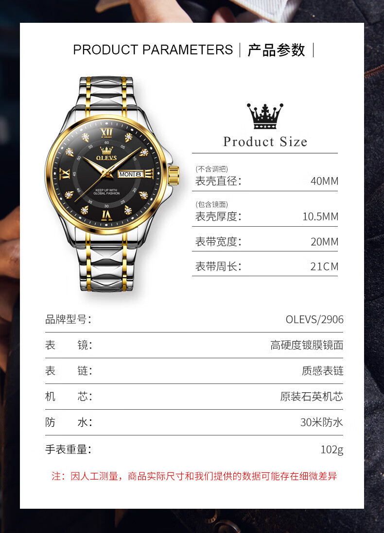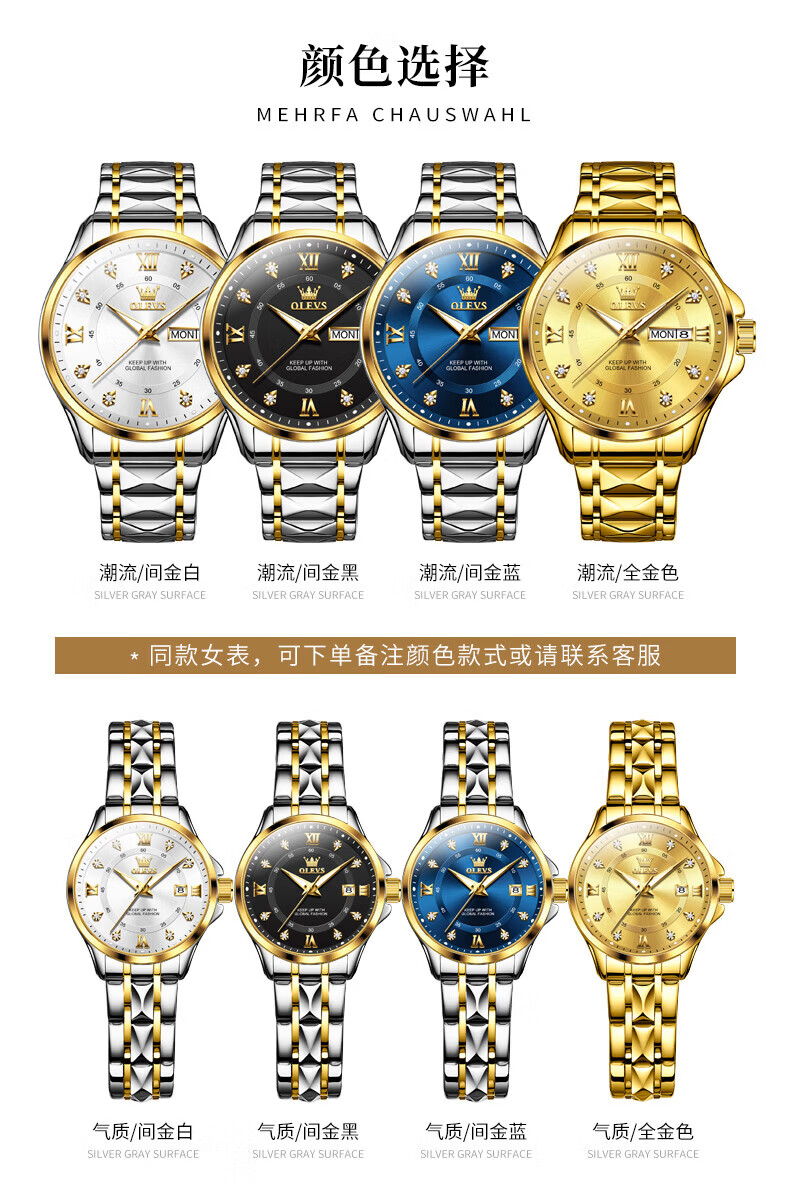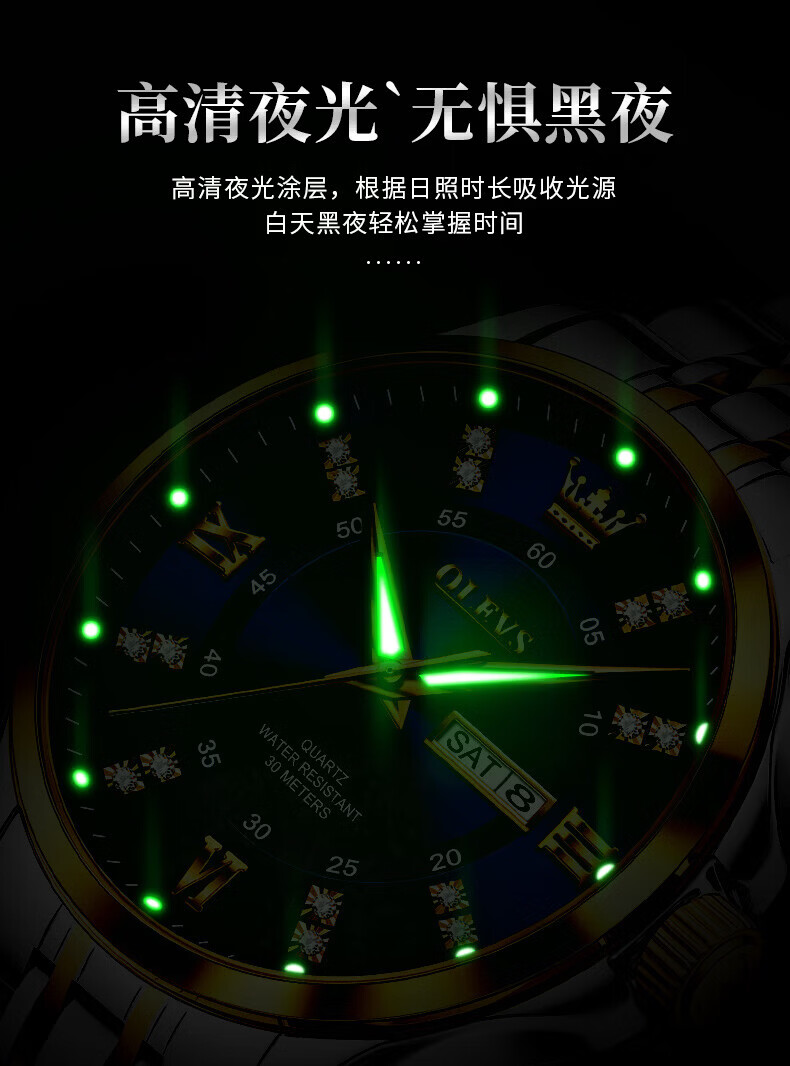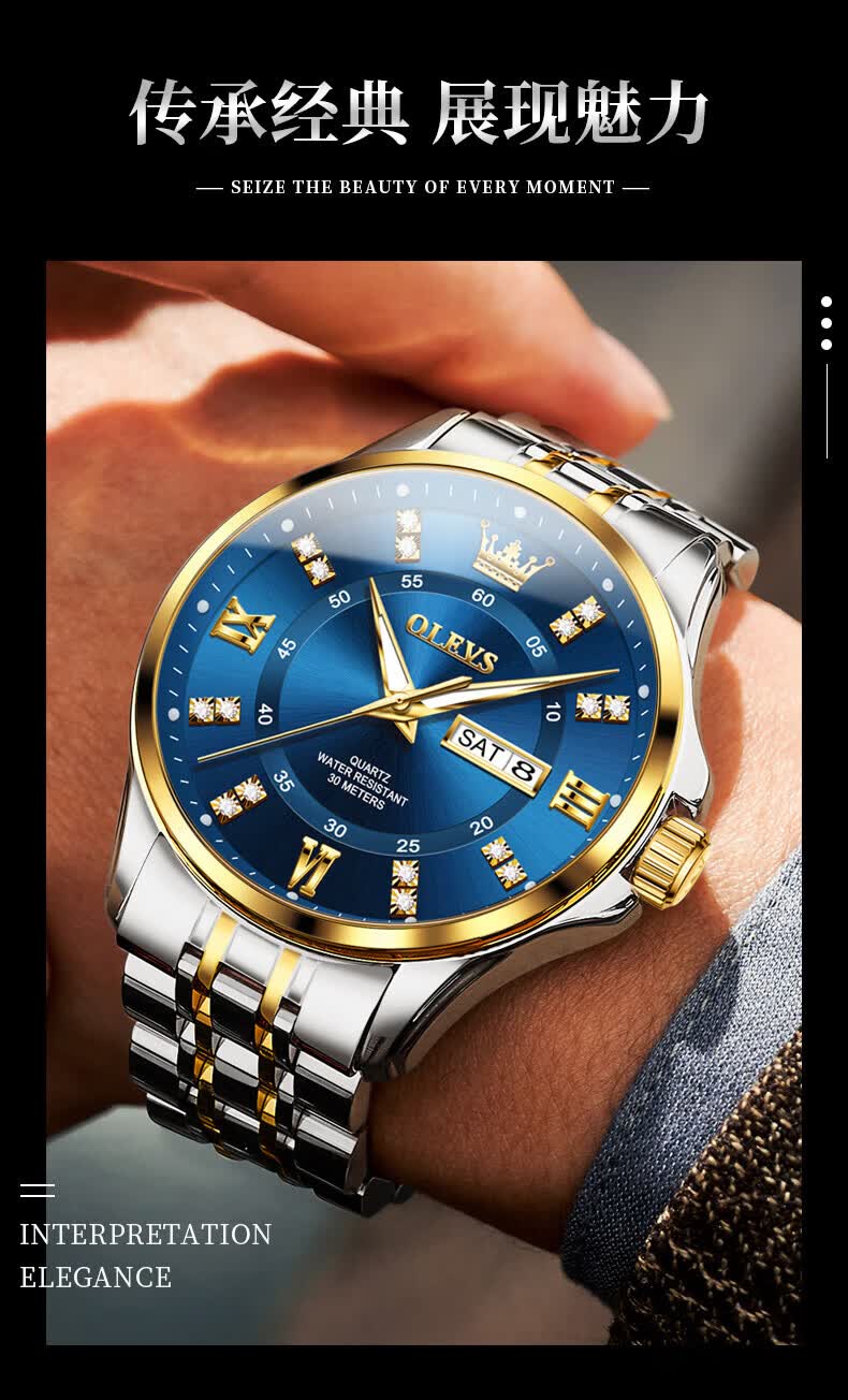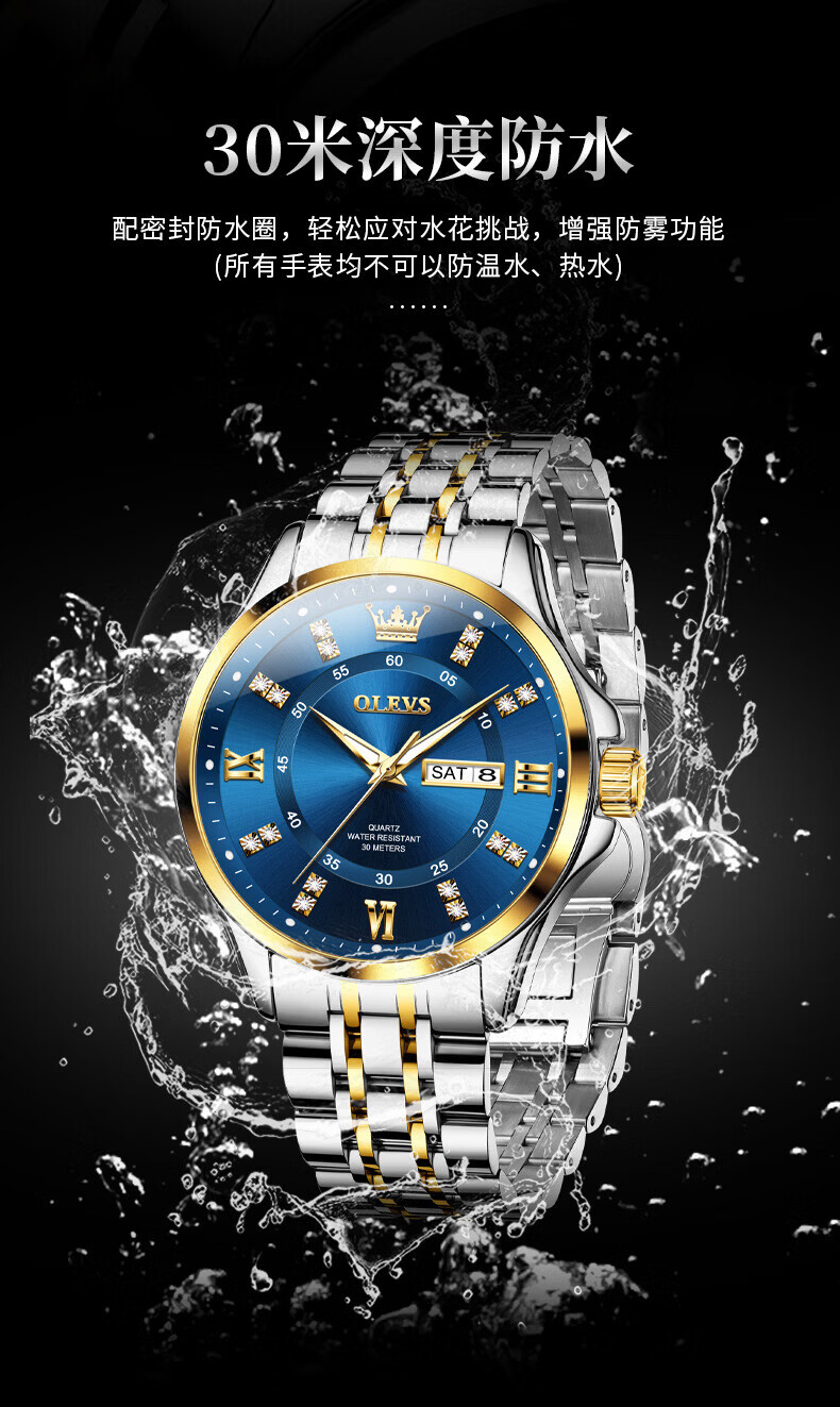 欧利时(OLEVS)瑞士认证手表男石英表品牌十大名表2026新款日历商务高端男士手表 典藏版2906钢带全金男 免费刻字 终身质保