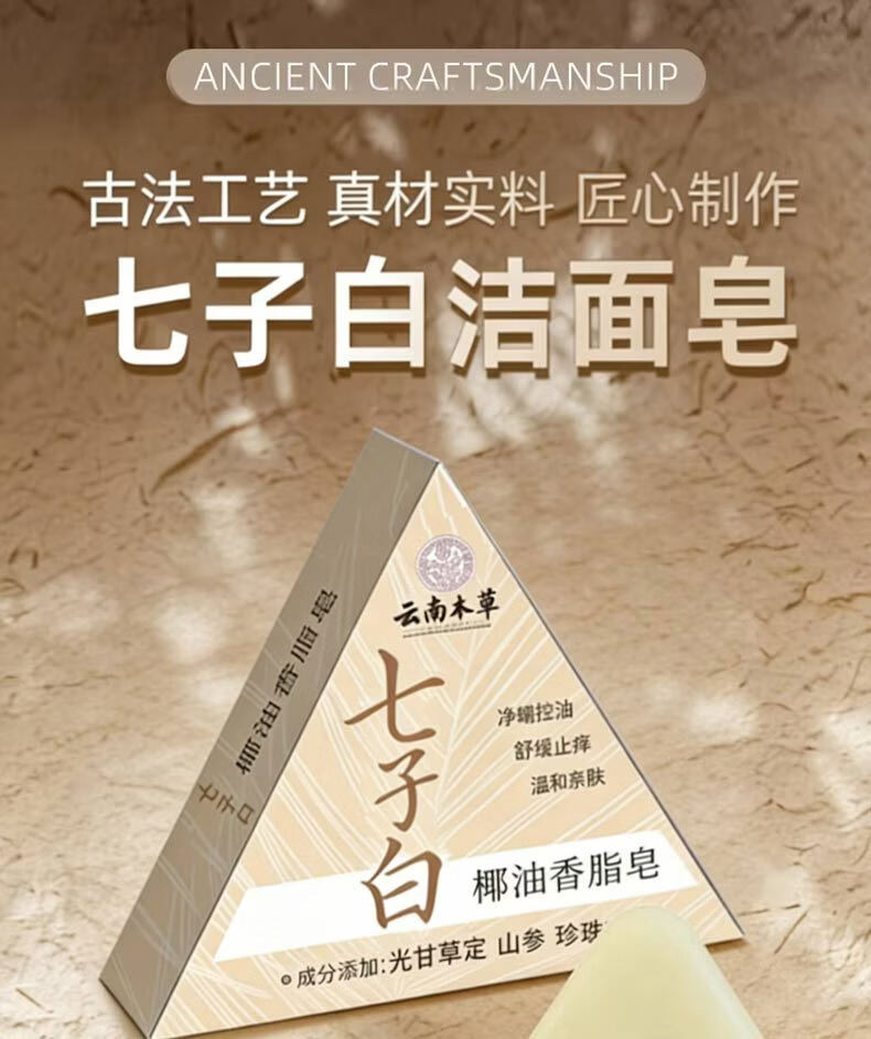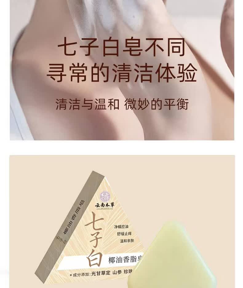 云南本草七子白洗脸皂七子白椰油香皂肥皂羊脂皂天然植物七子白草本洁面皂 七子白椰油香脂皂15块*(120g)