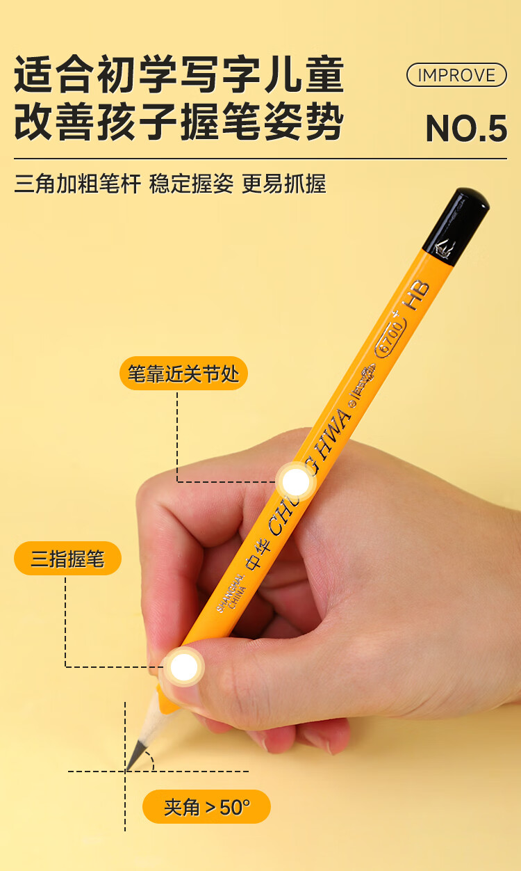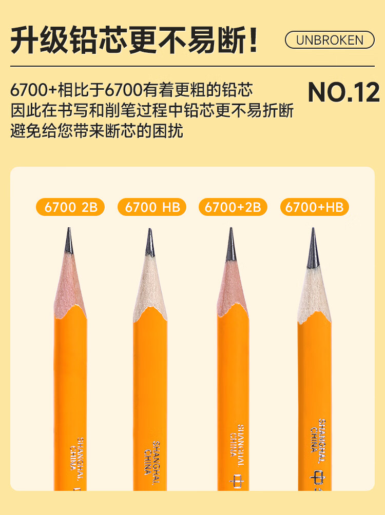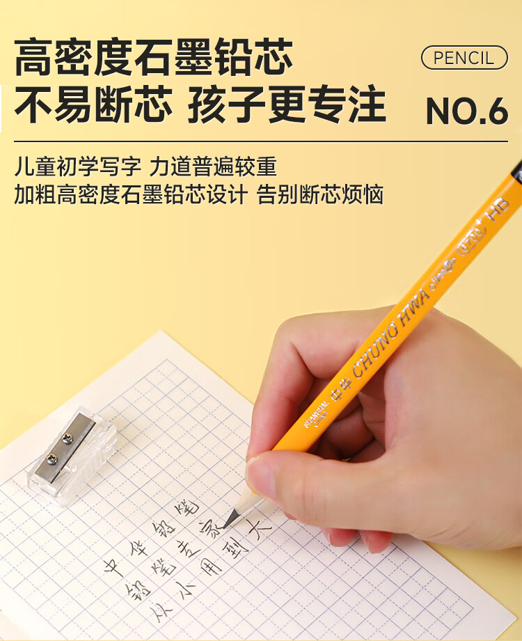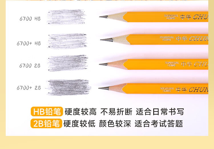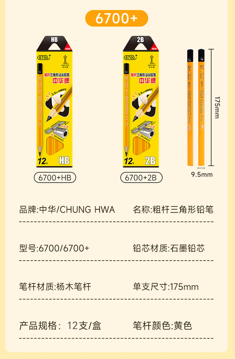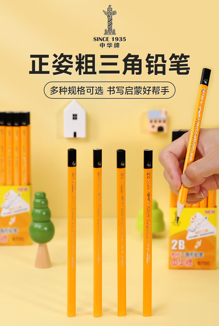 中华【热门商品】中华6700 升级版 HB学生练字粗大三角铅笔加粗矫正握姿开学季礼物12支/盒 赠卷笔刀