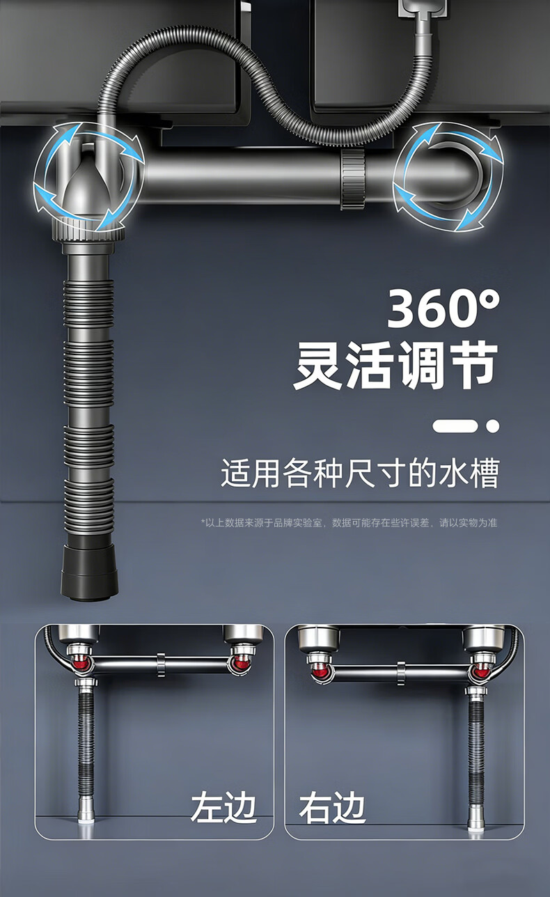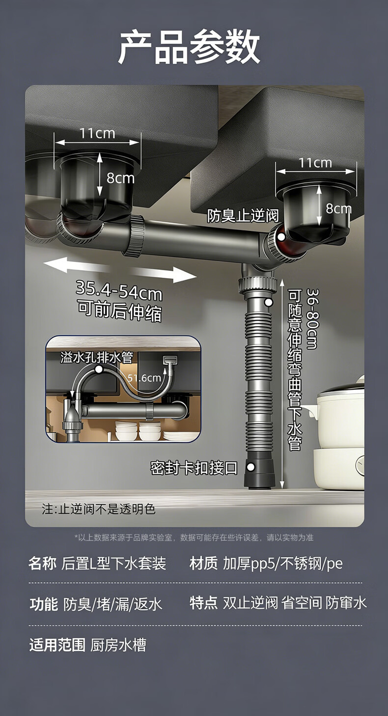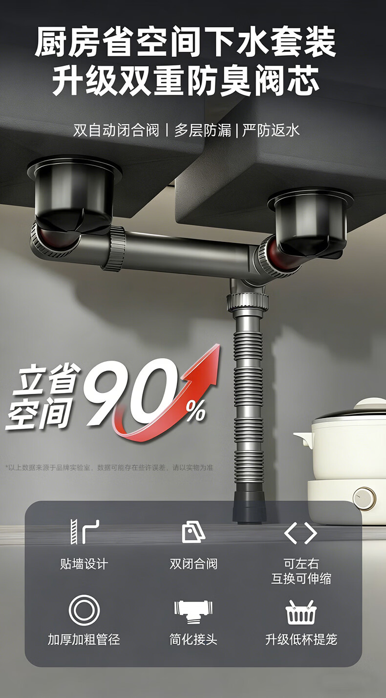 X-GRKE【德国】洗菜盆下水管全套装双槽三通三合一厨房下排水道通用配件 【配110+110提篮】双槽双阀+送三通接头 双阀防臭芯丨加厚耐高温防爆丨通用安装