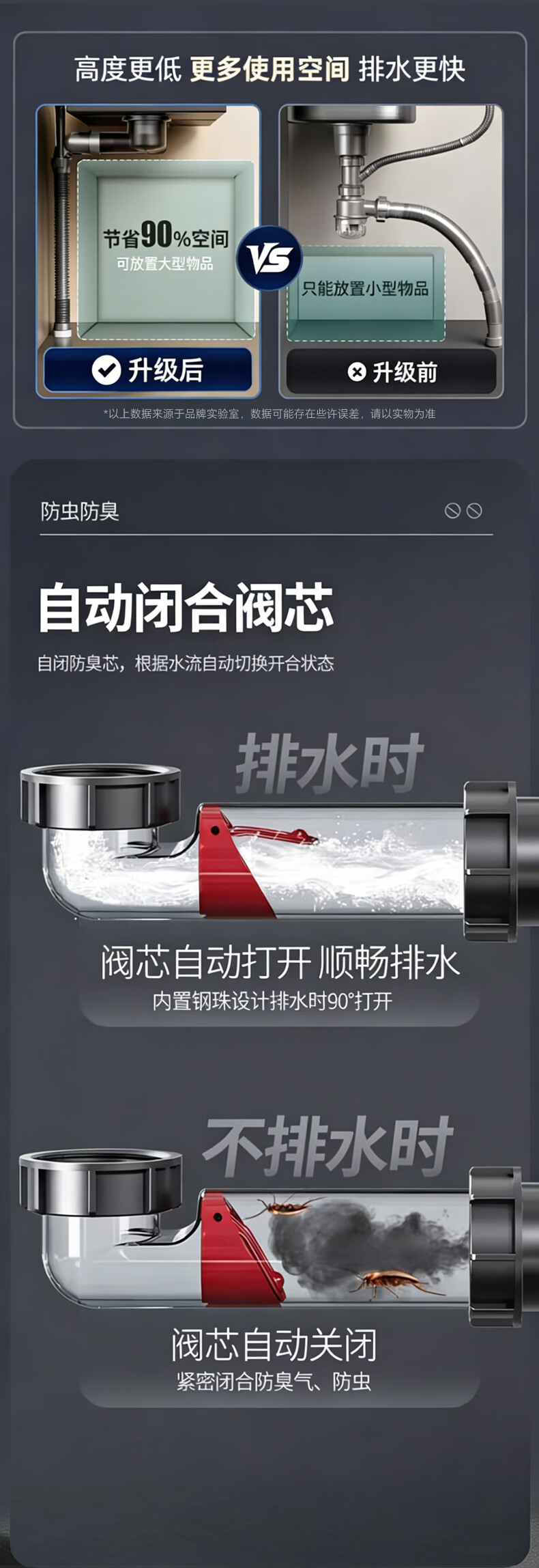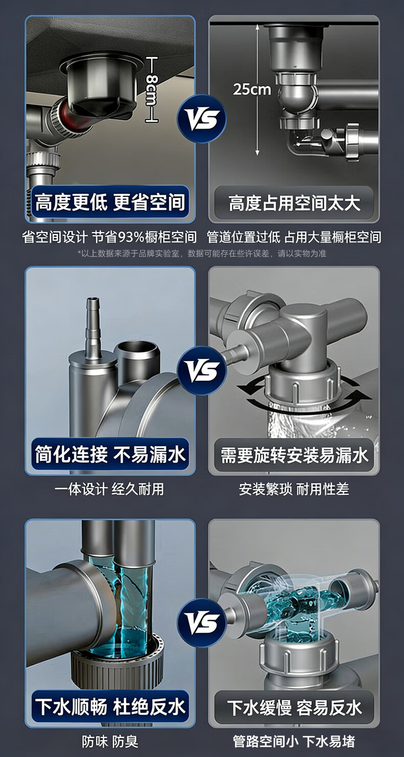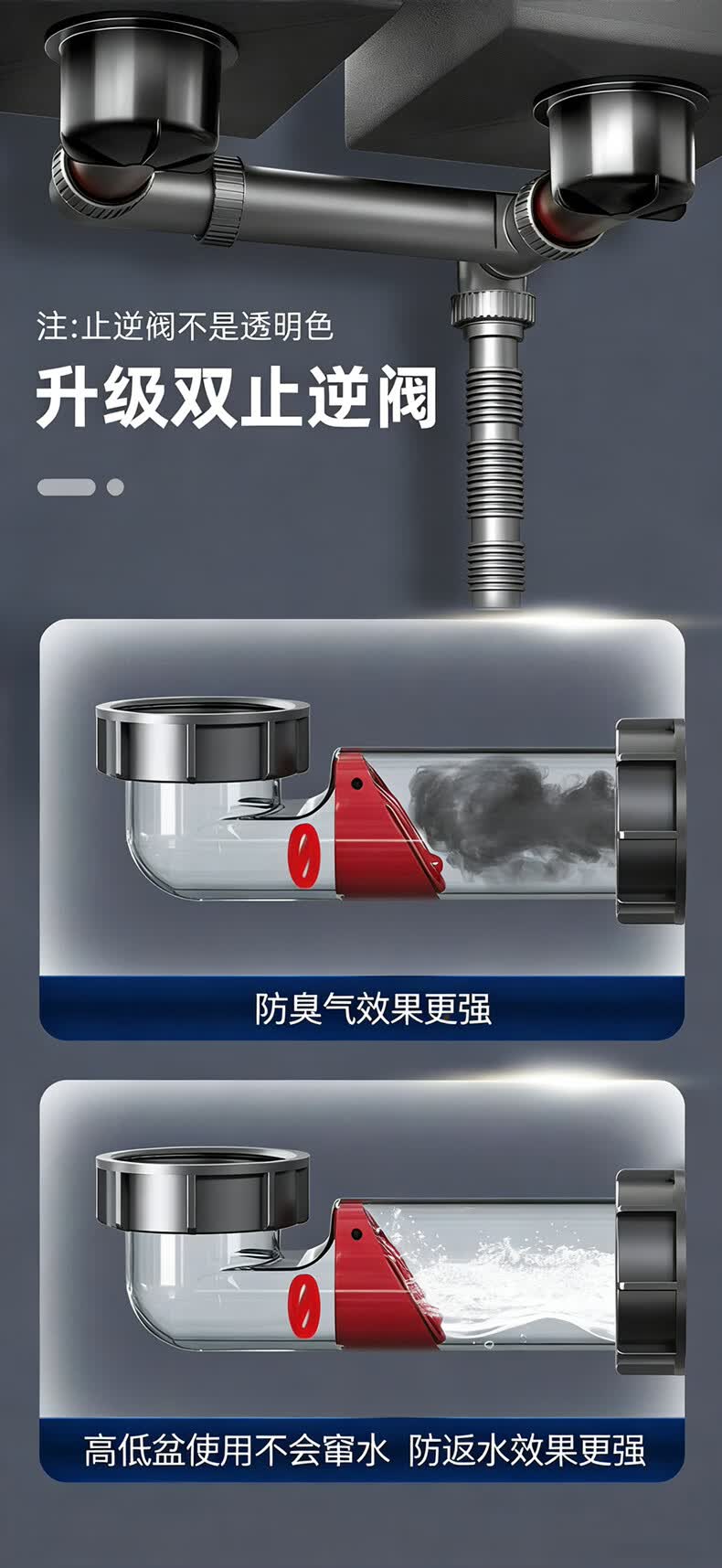 X-GRKE【德国】洗菜盆下水管全套装双槽三通三合一厨房下排水道通用配件 【配110+110提篮】双槽双阀+送三通接头 双阀防臭芯丨加厚耐高温防爆丨通用安装