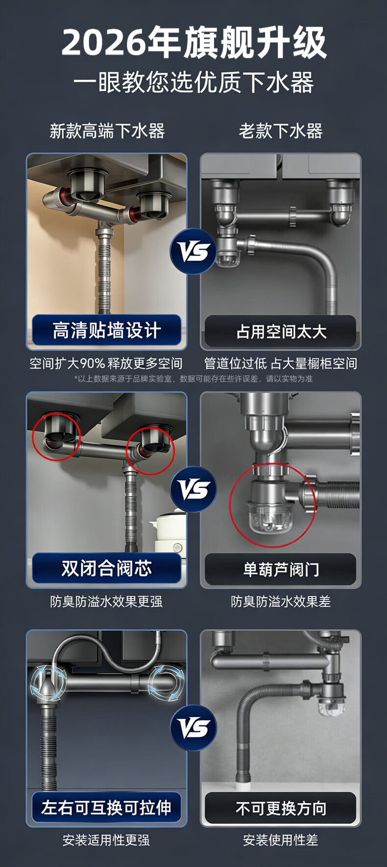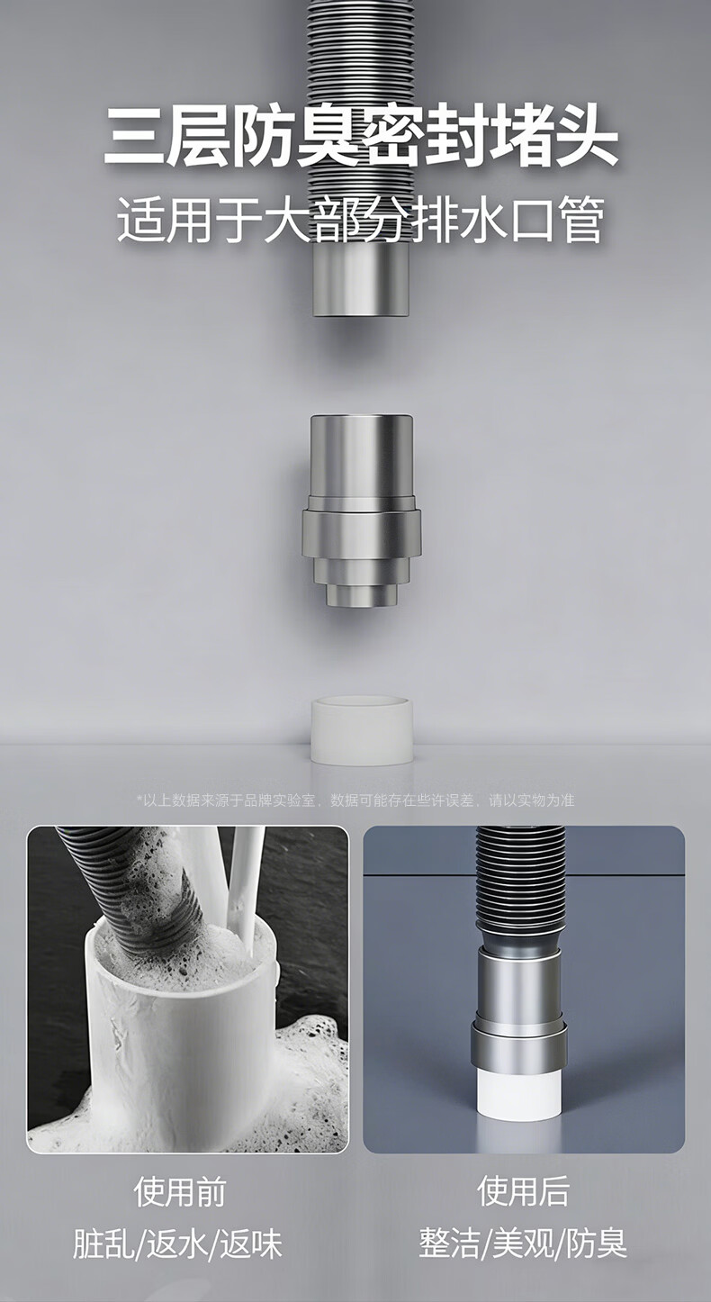 Jeonestan【德国】90度墙排管道防臭塞专用密封圈防虫防溢水堵口下水器 【45°墙排专用】接洗手池 两个装