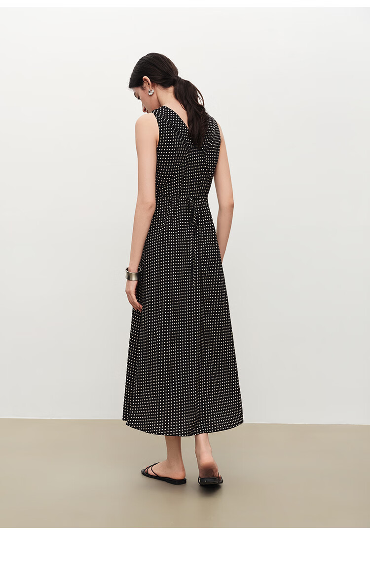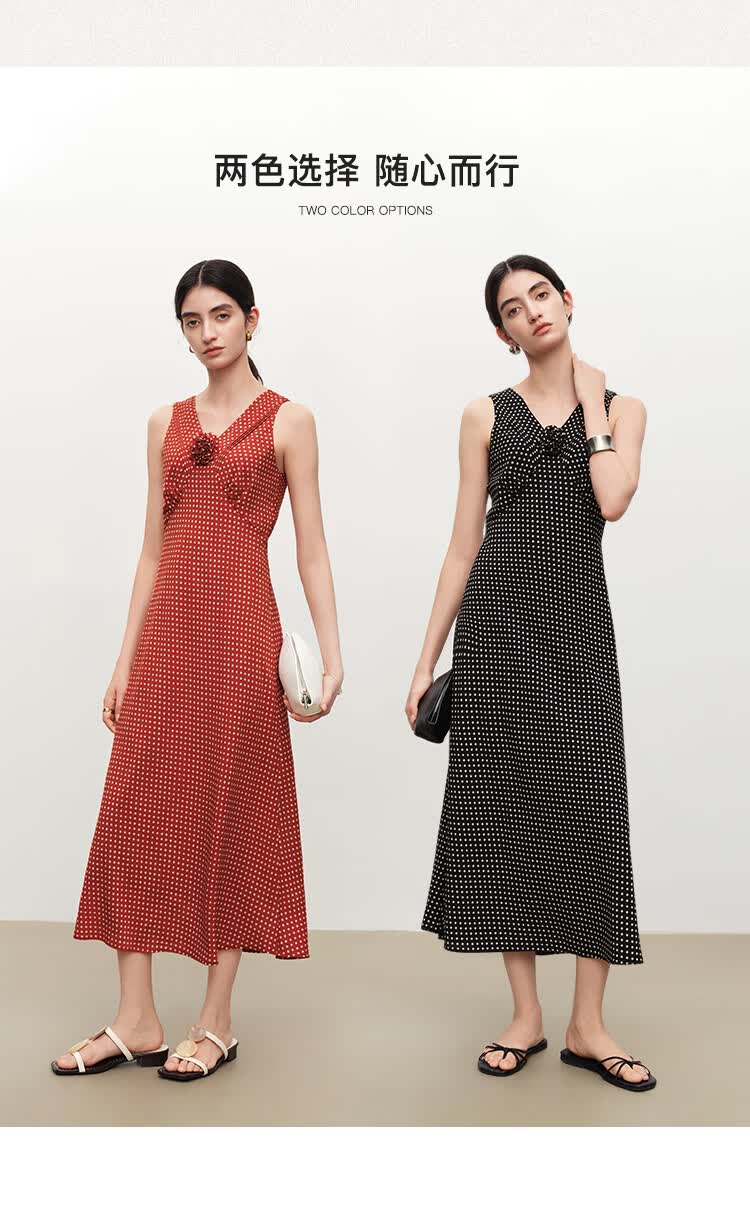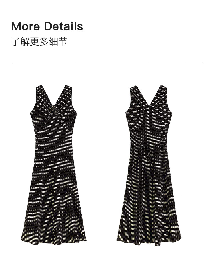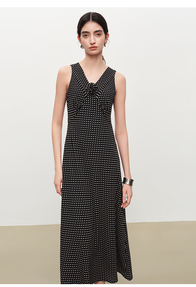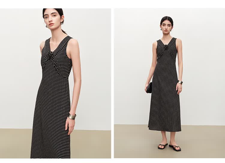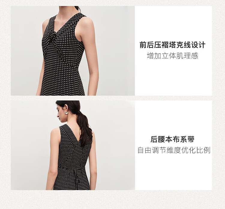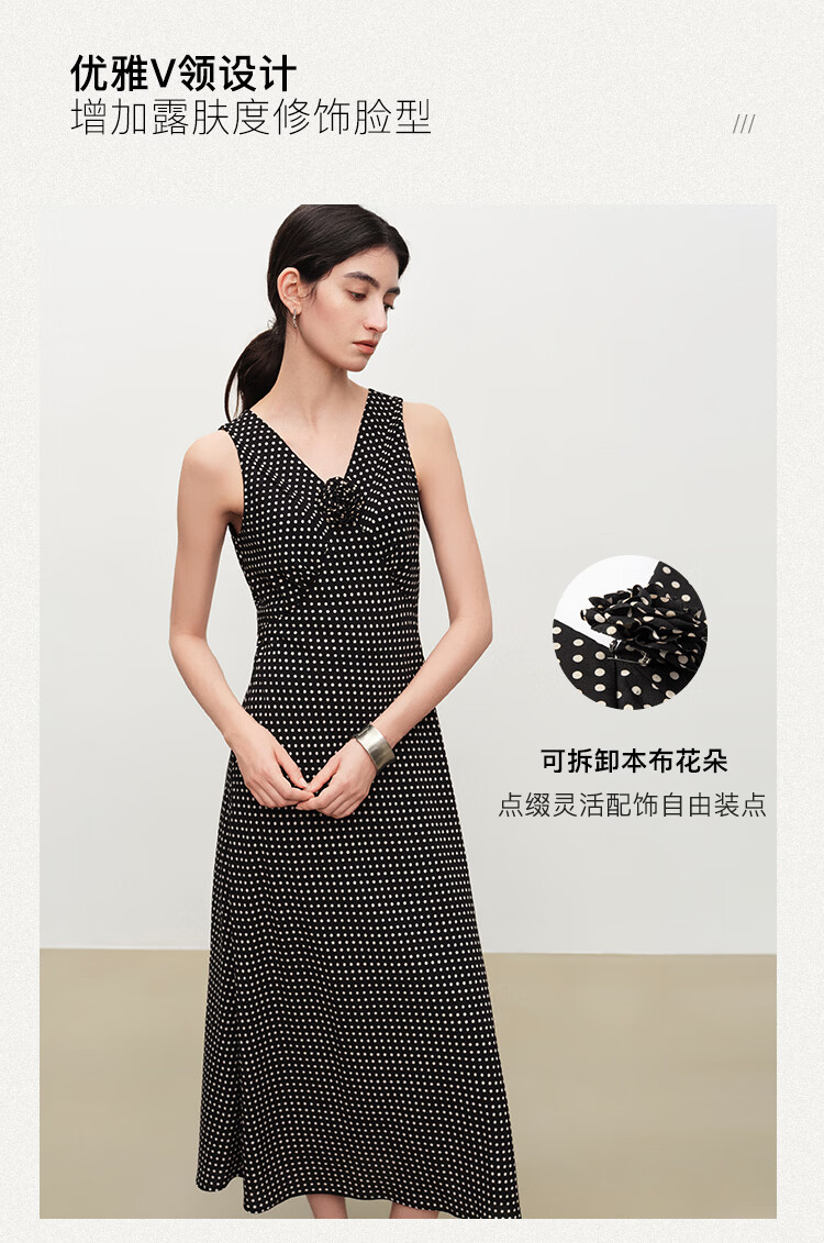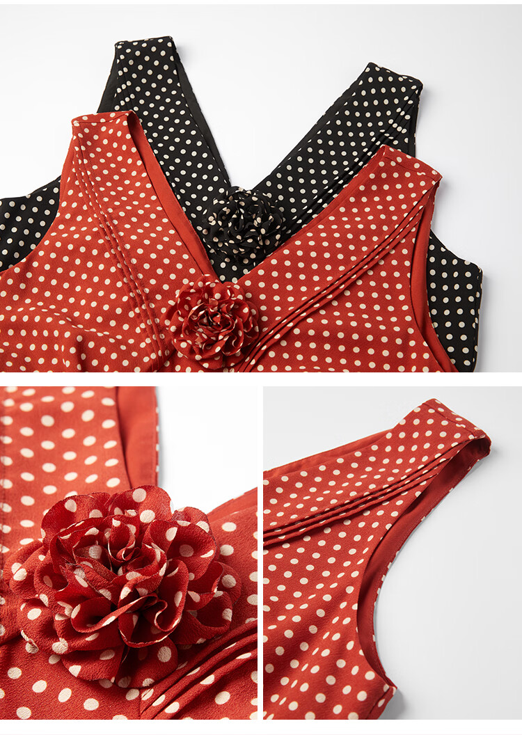 自巧波点系列 小个子复古立体花朵掐腰无袖连衣裙女2026夏季新款 黑底白点 XXS (尺码:1)