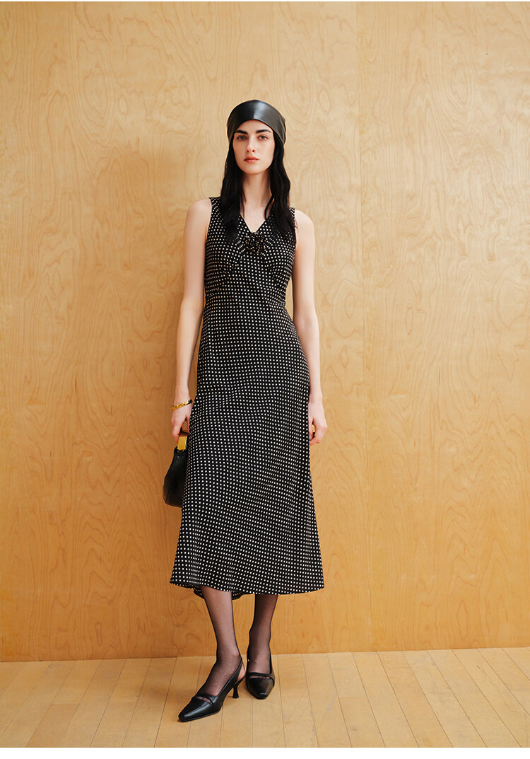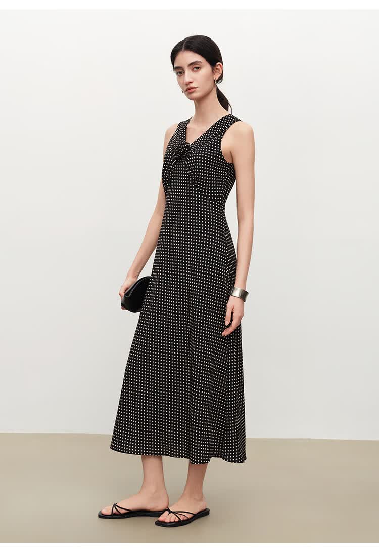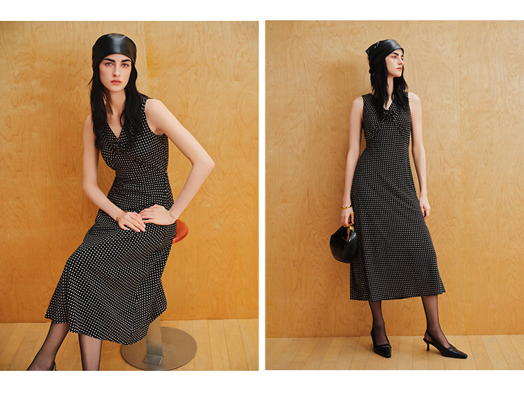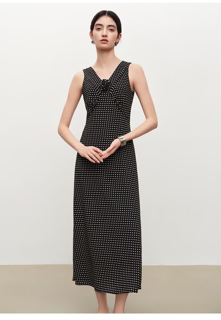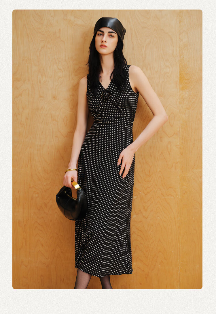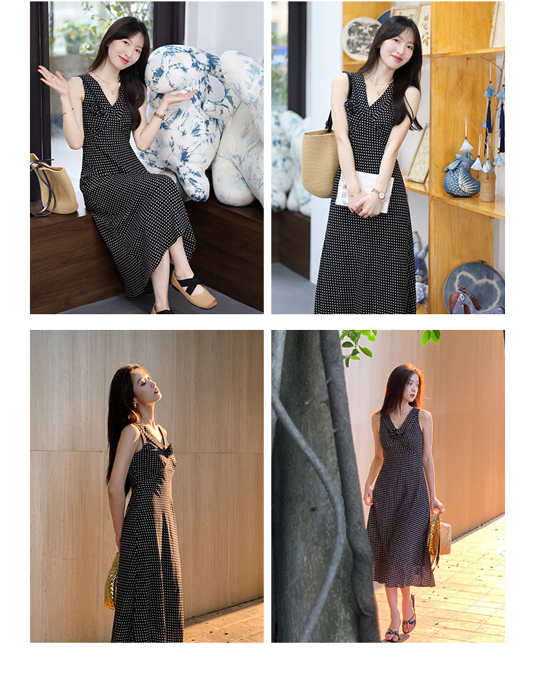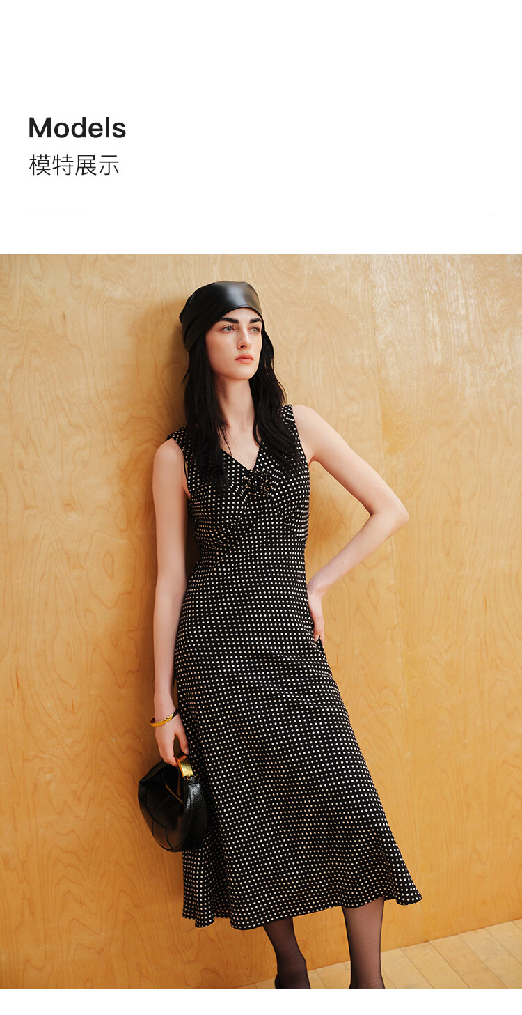 自巧波点系列 小个子复古立体花朵掐腰无袖连衣裙女2026夏季新款 黑底白点 XXS (尺码:1)