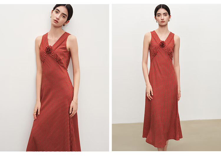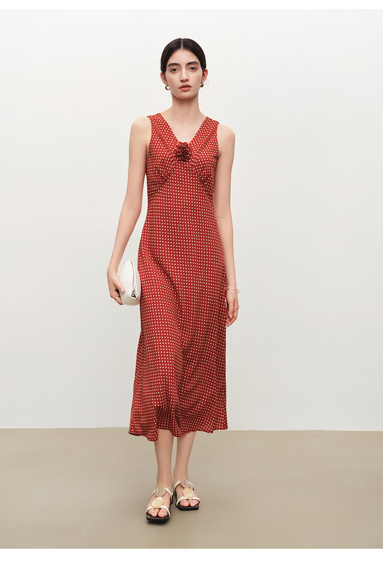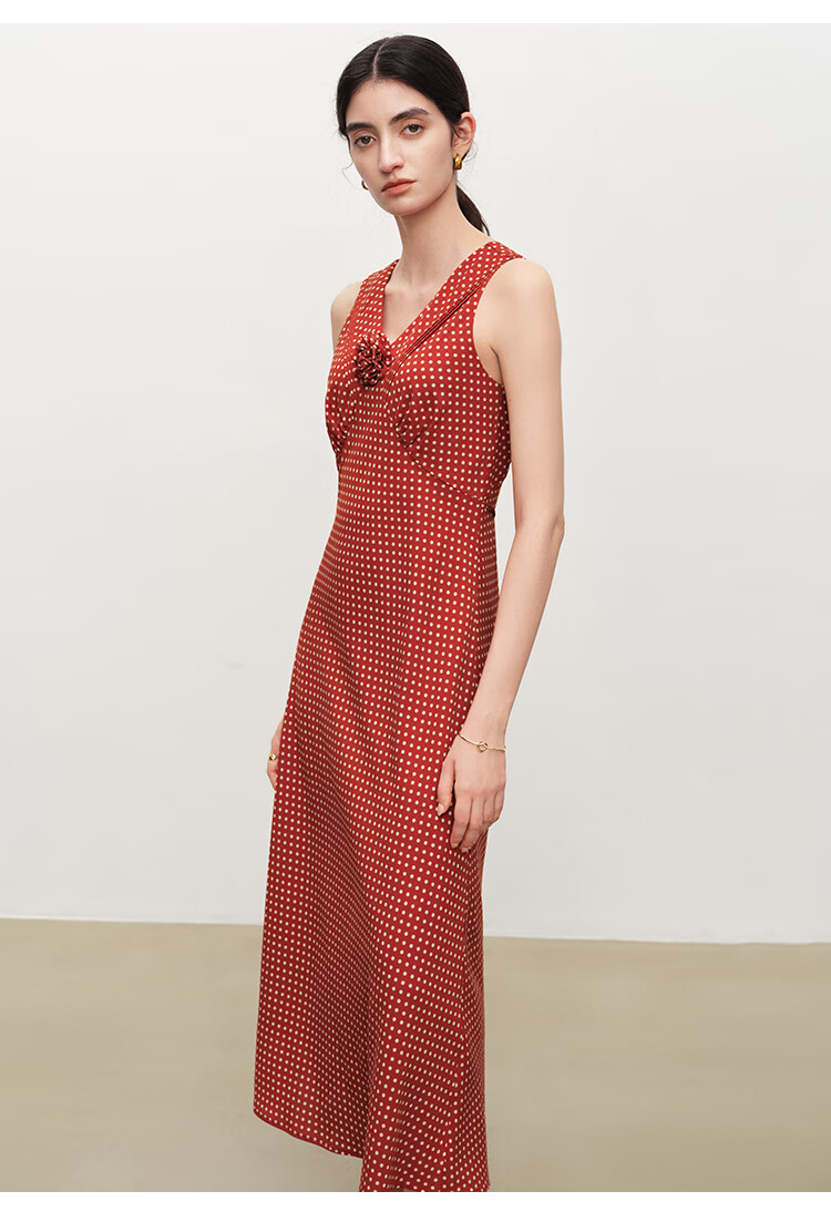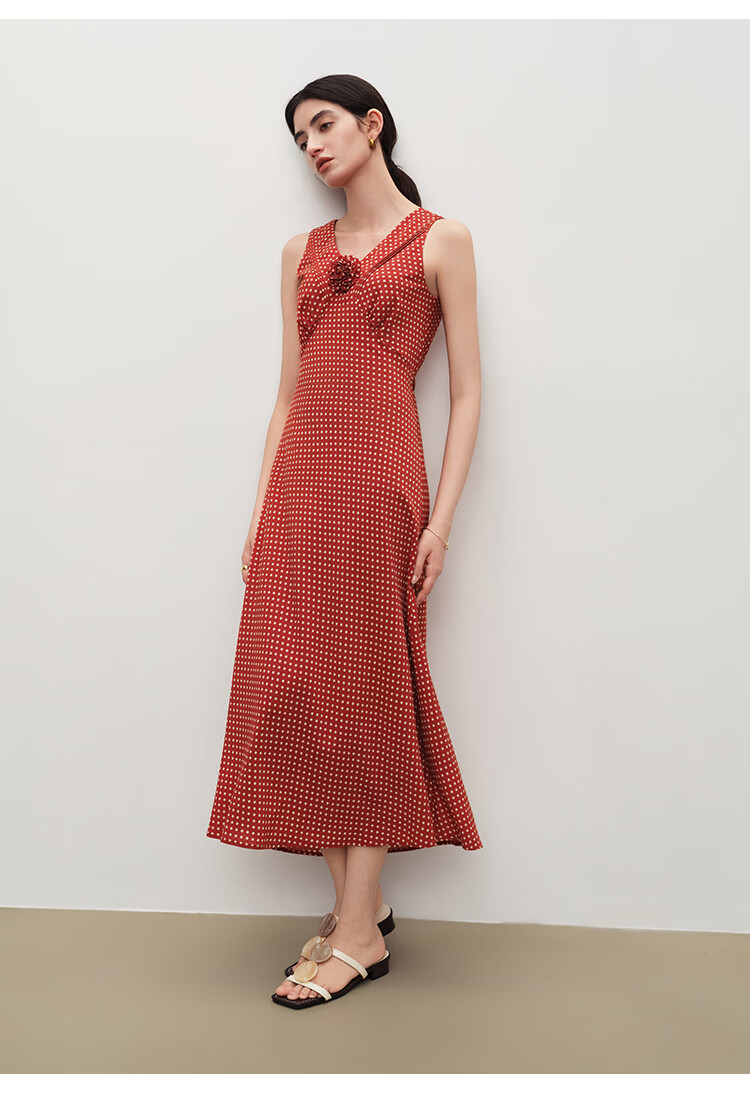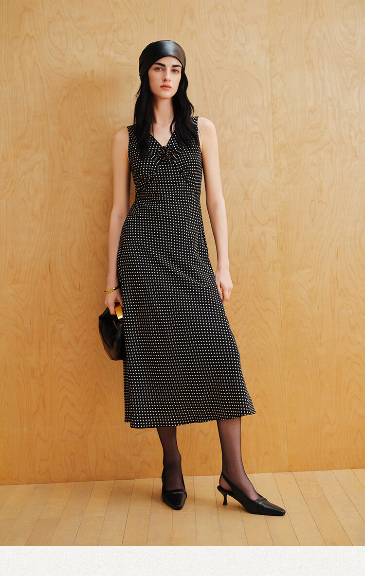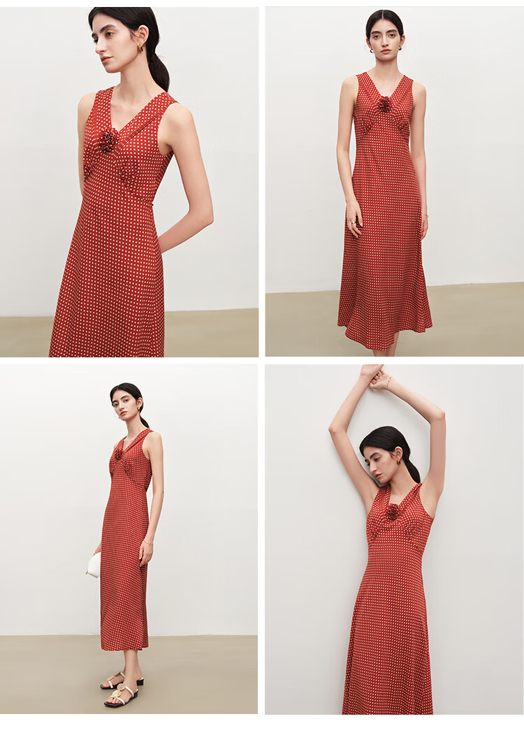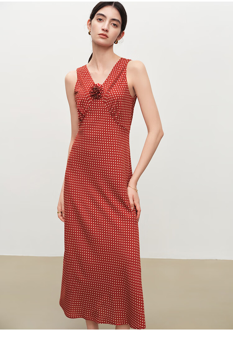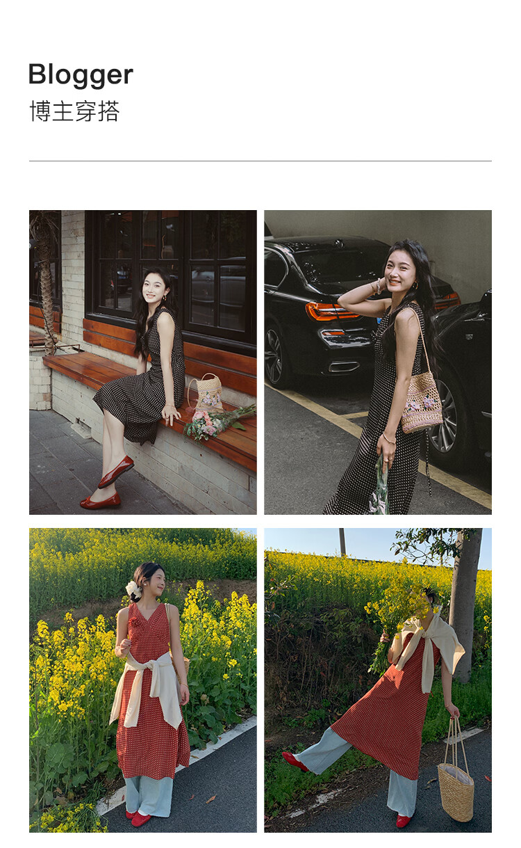 自巧波点系列 小个子复古立体花朵掐腰无袖连衣裙女2026夏季新款 黑底白点 XXS (尺码:1)