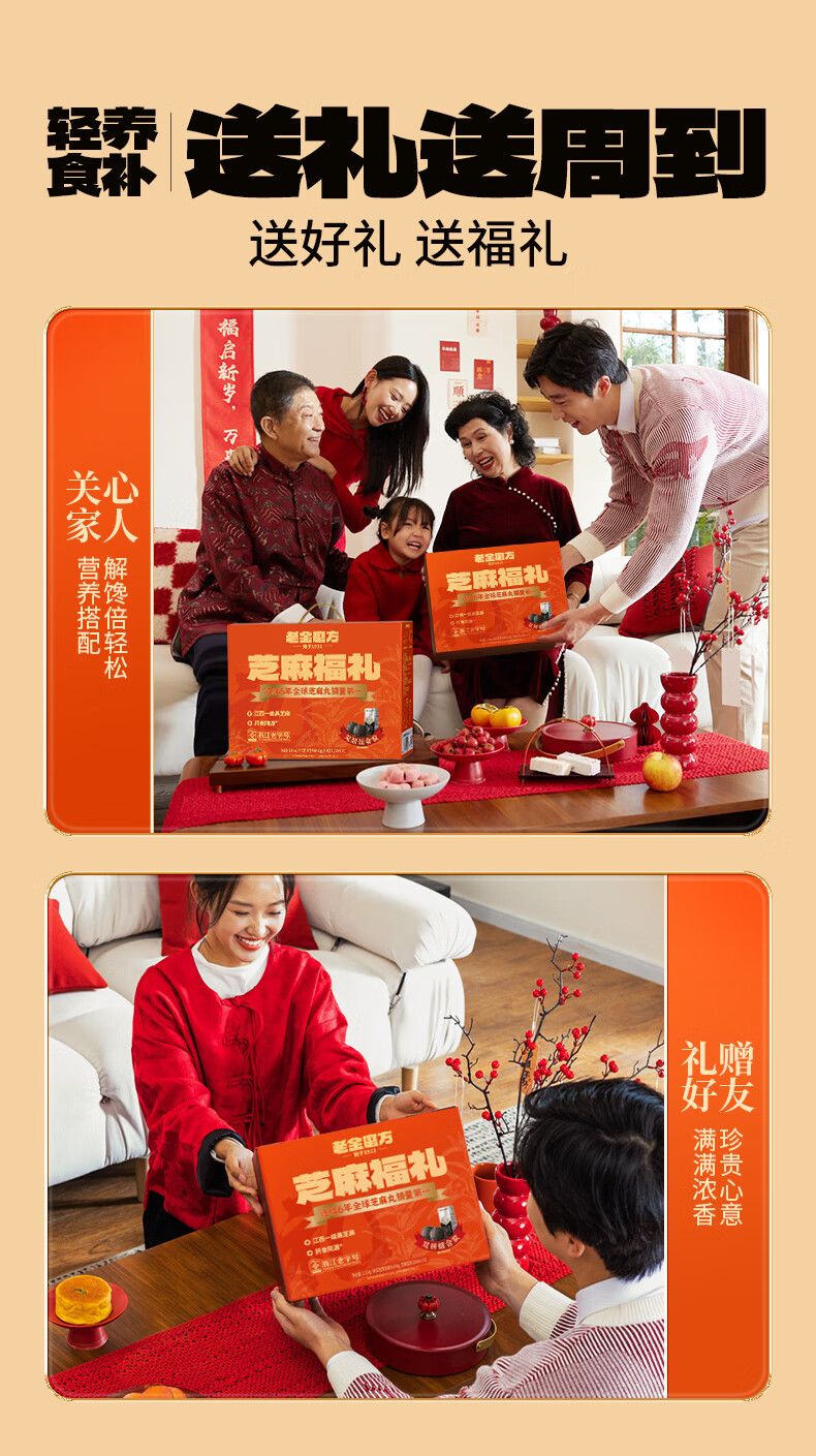 老金磨方芝麻福礼 红枣核桃黑芝麻豆乳送亲友长辈礼盒大气年货节送礼 芝麻福礼1.15kg(含豆乳饮料)