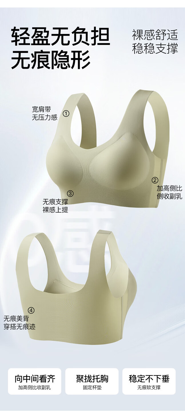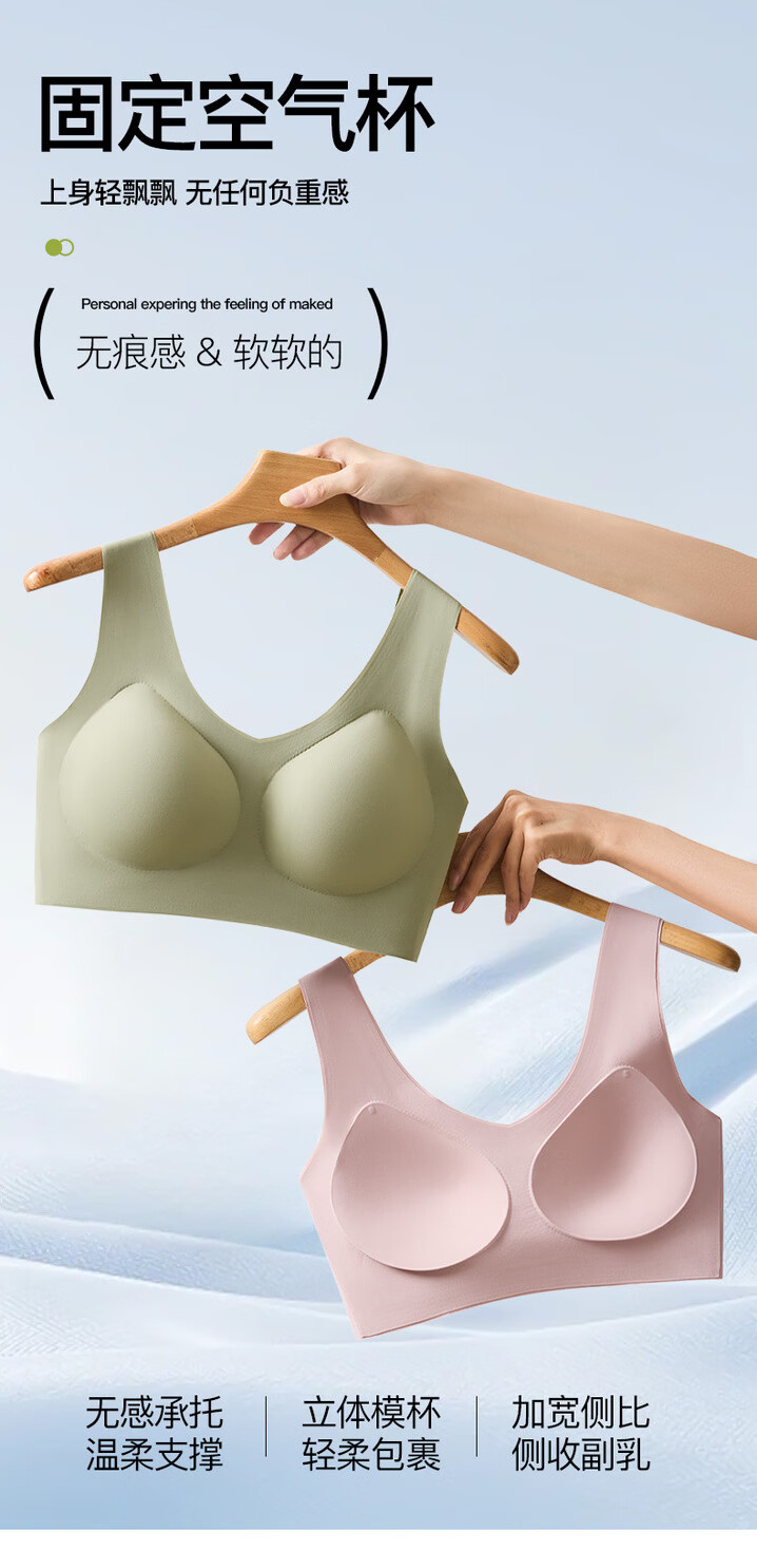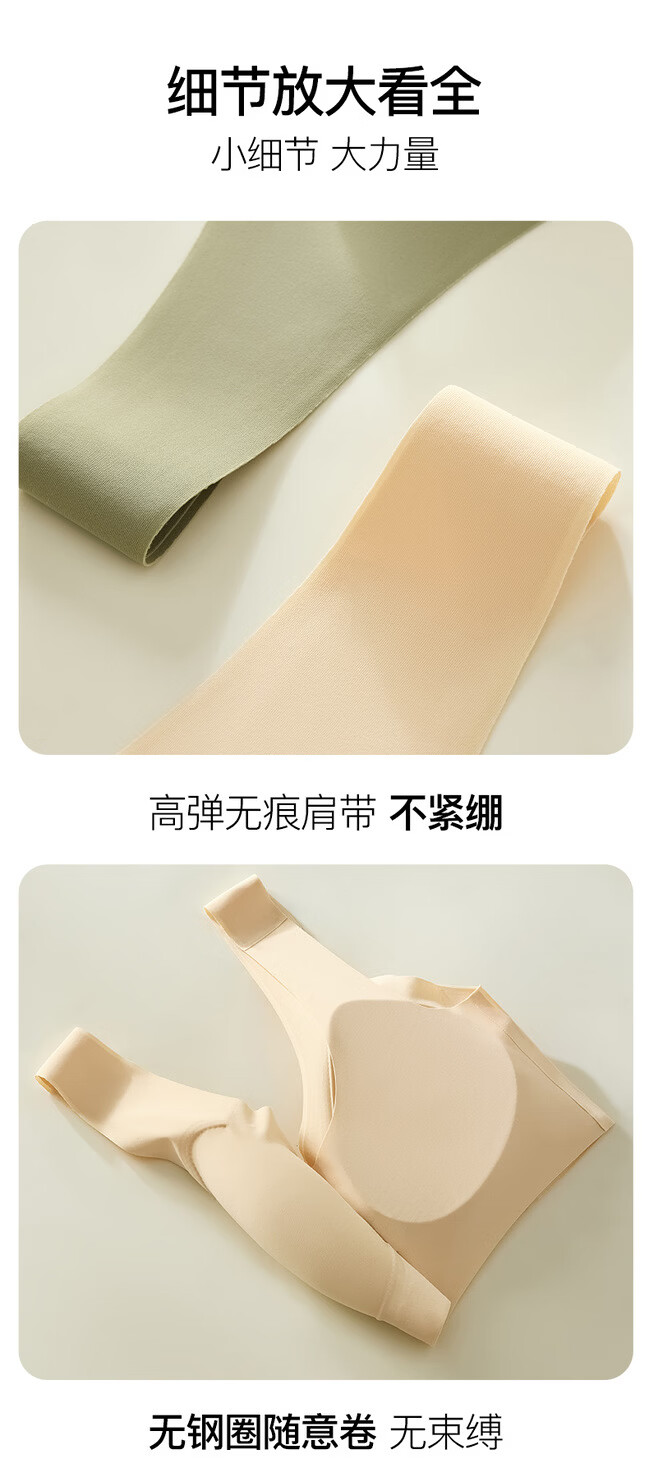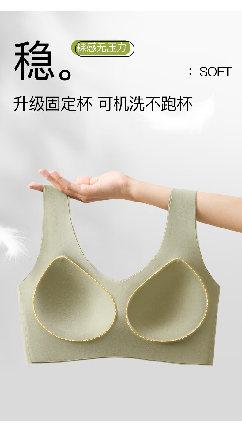 宜而爽无痕海绵垫美背薄款文胸内衣聚拢抹胸时尚潮流轻薄风舒适夏 绿色 2XL
