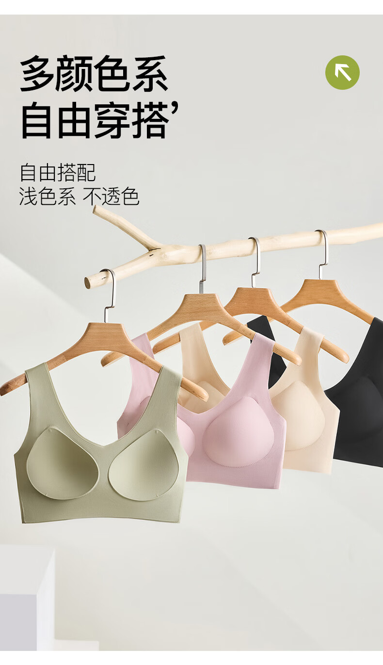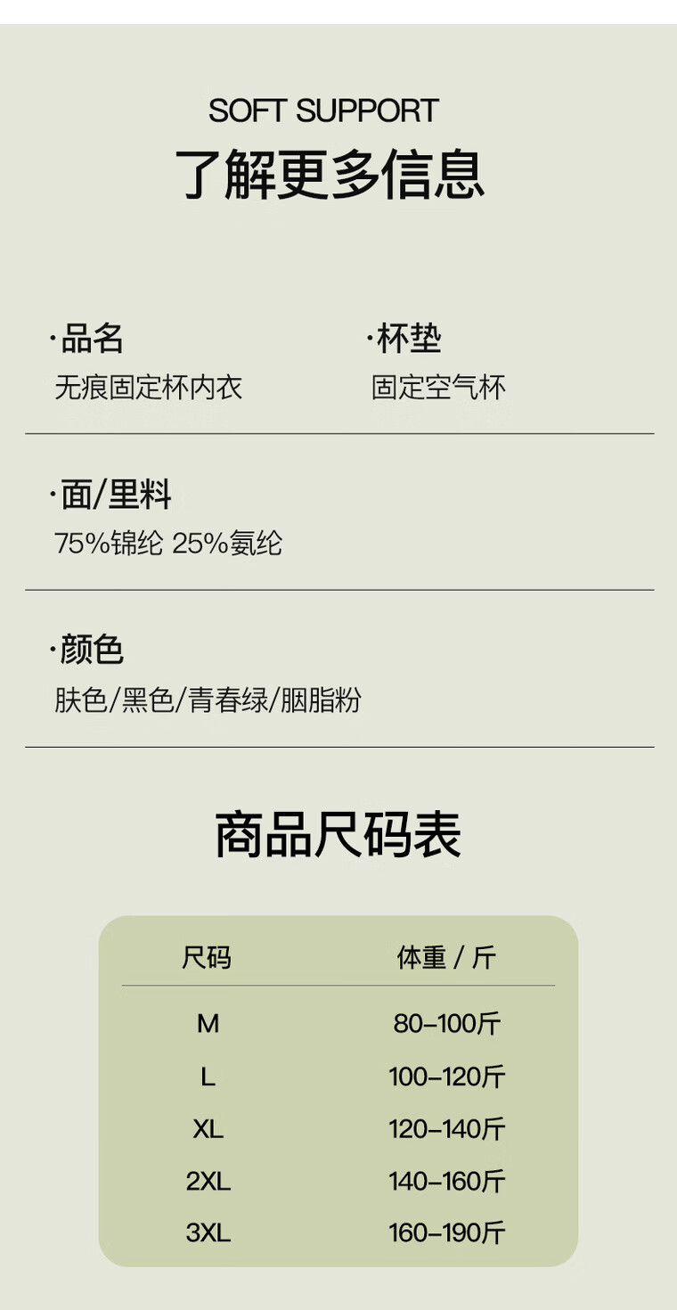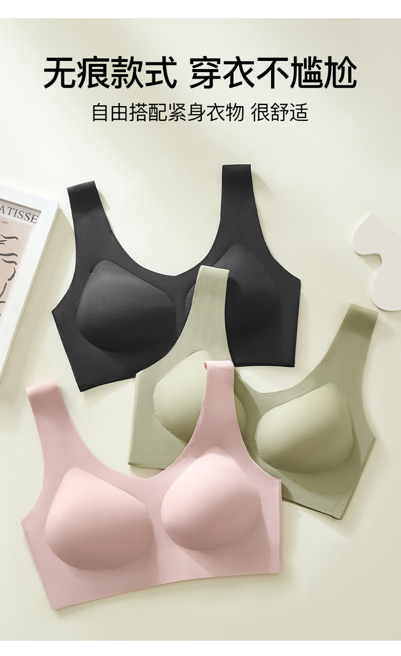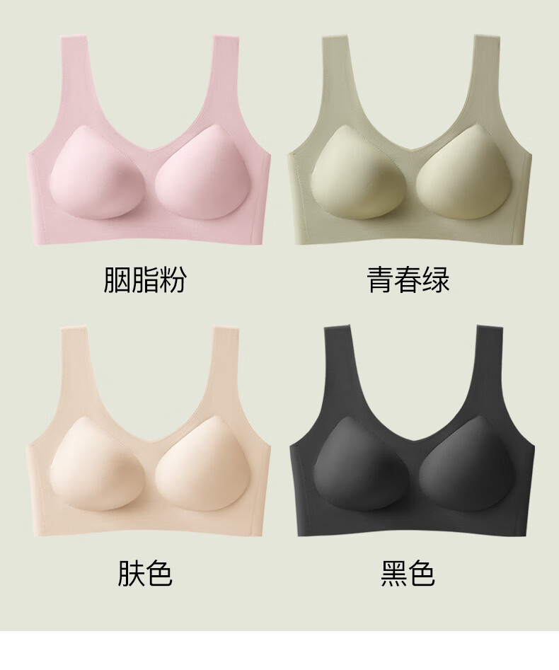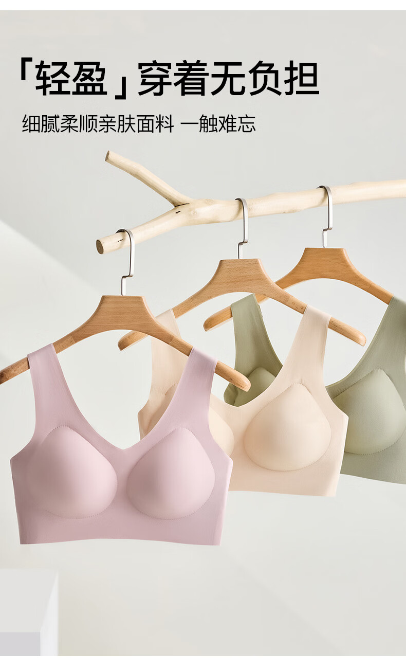 宜而爽无痕海绵垫美背薄款文胸内衣聚拢抹胸时尚潮流轻薄风舒适夏 绿色 2XL