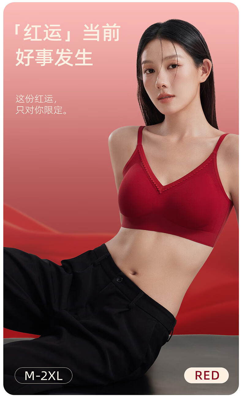 都市丽人本命年马年大红色女士内衣内裤套装无痕文胸罩结婚喜庆礼盒装 本命年细肩带红色内衣内裤套装 XL (建议120-135斤)