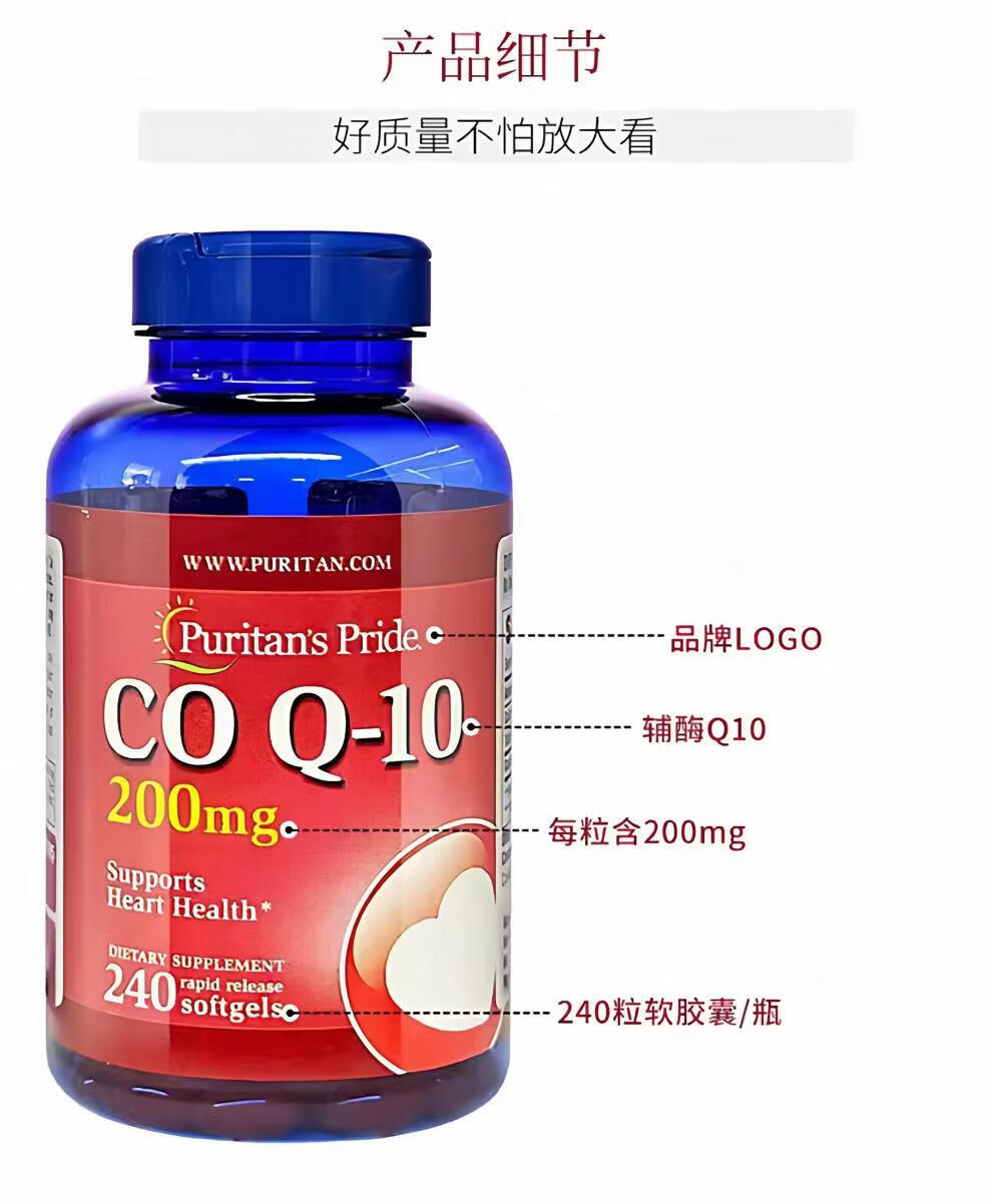 普丽普莱(Puritan's Pride)普丽普莱辅酶q10软胶囊200mg240粒辅酶素q10coq 普丽普莱辅酶q10 240粒*2瓶