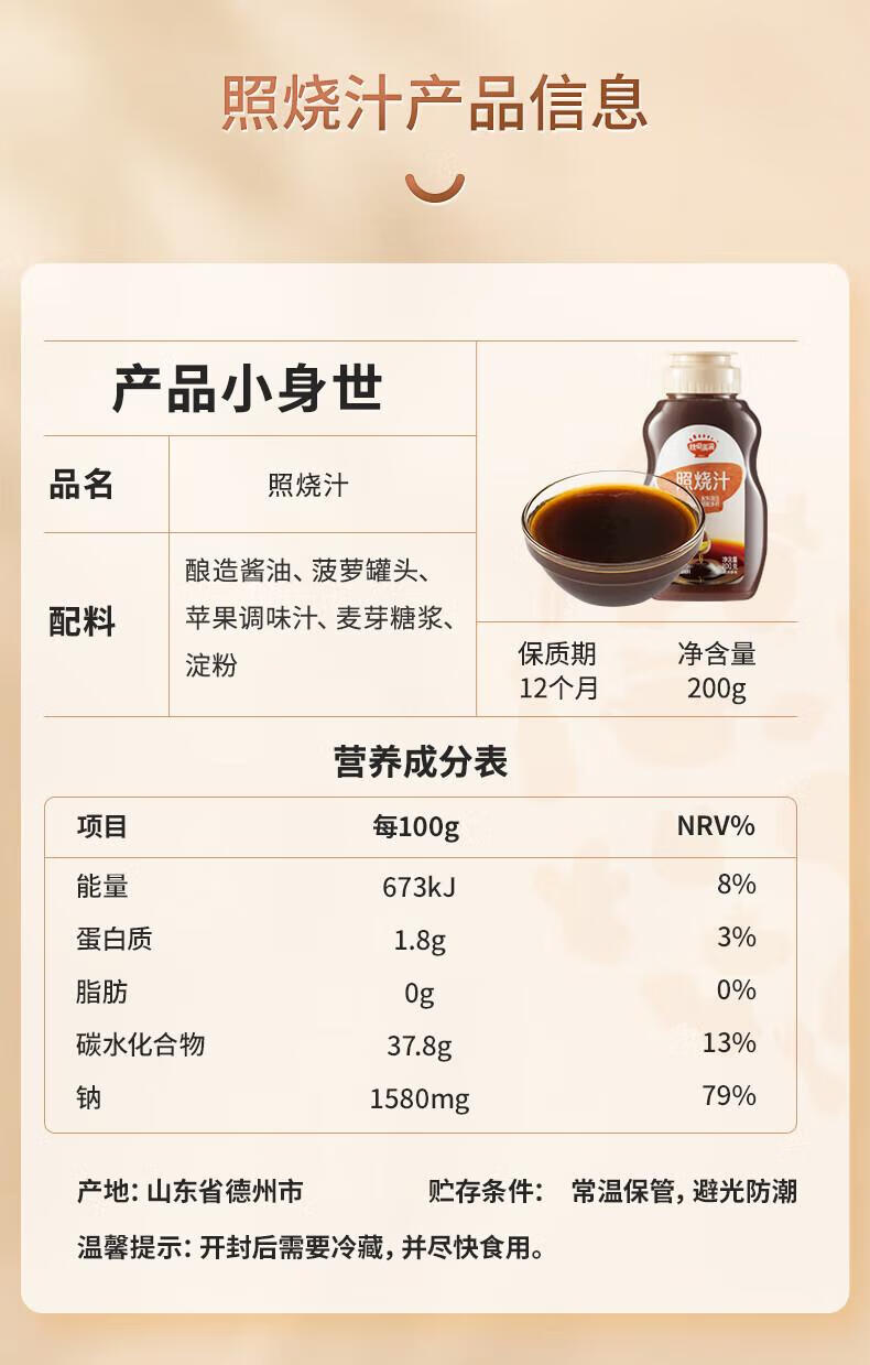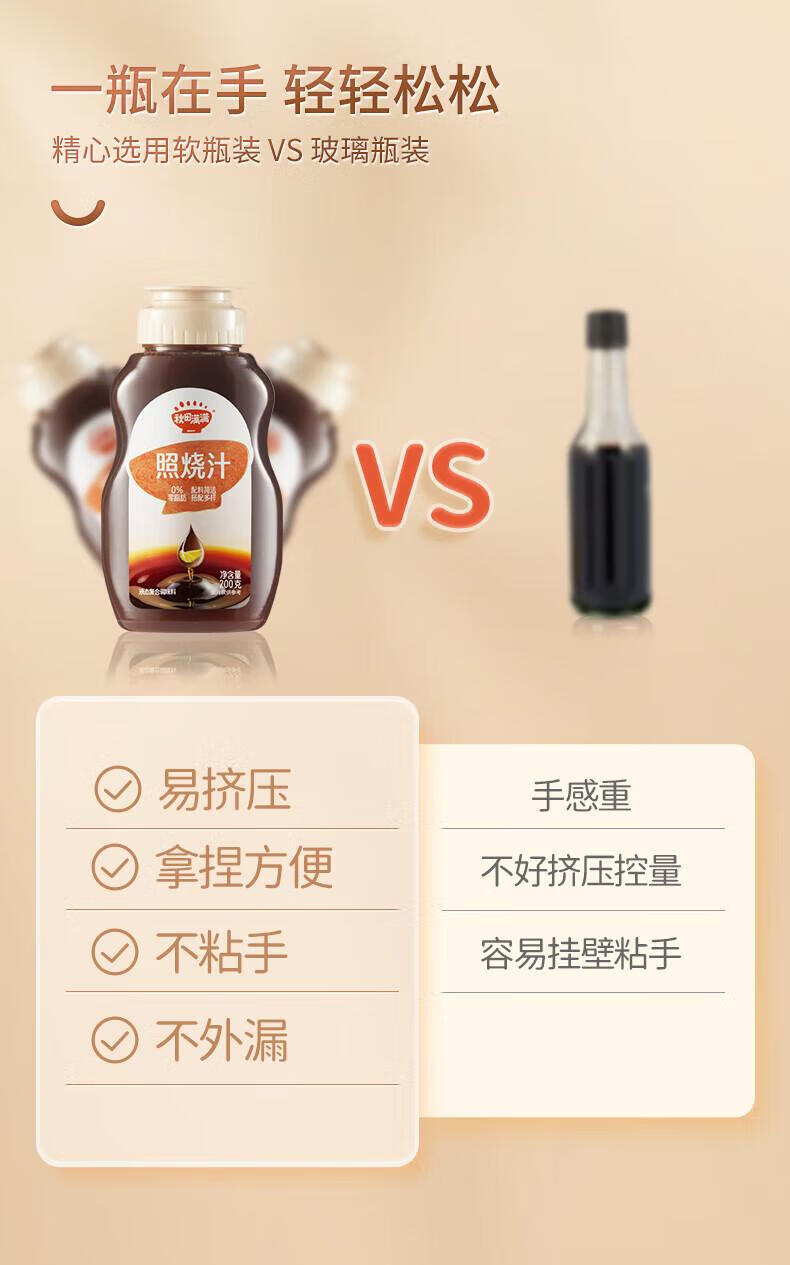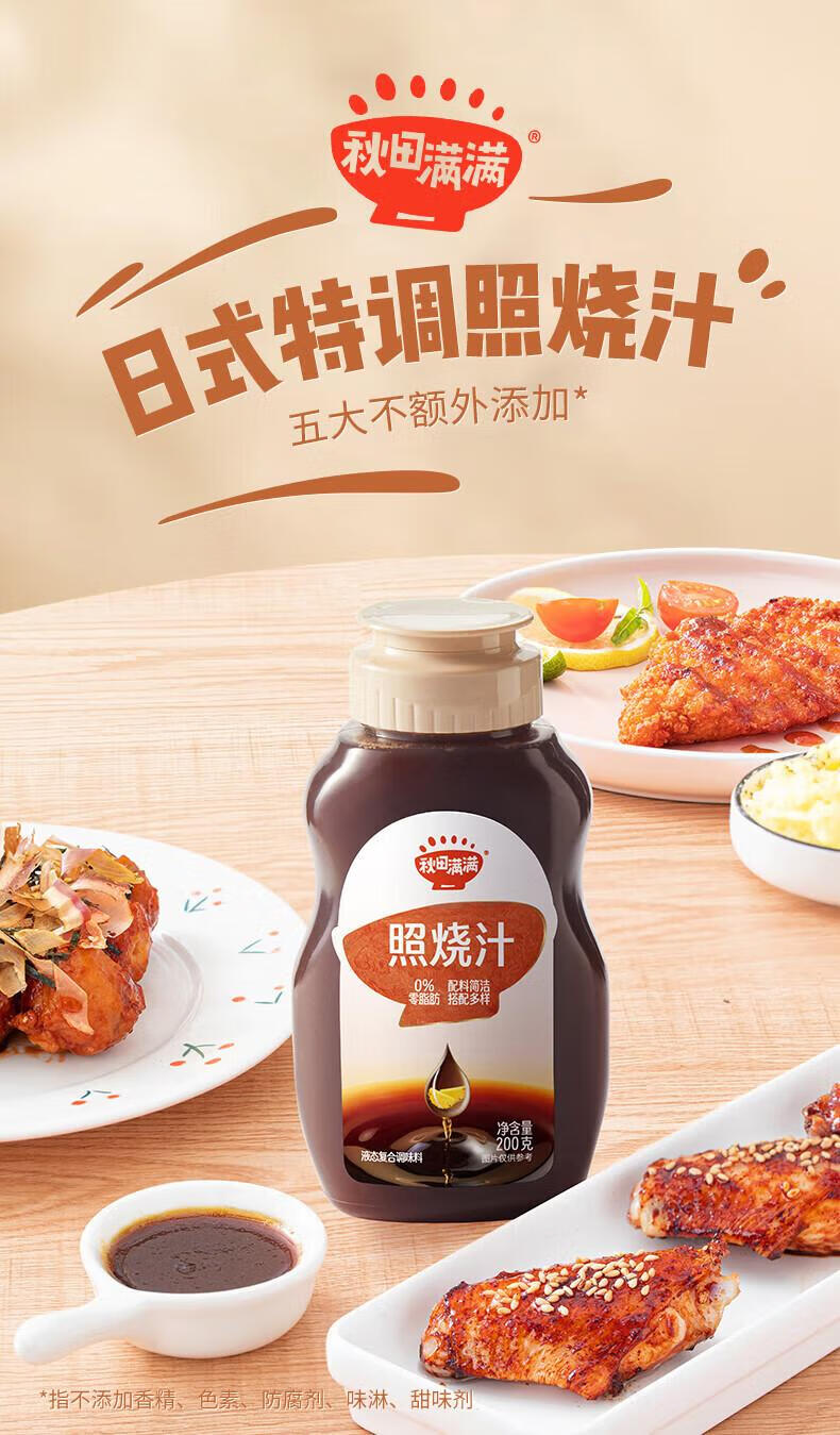 秋田满满照烧汁儿童拌饭酱调味0脂肪宝宝家用烤肉鸡腿蘸酱料-享婴幼儿食谱 超划算日式照烧汁2瓶装