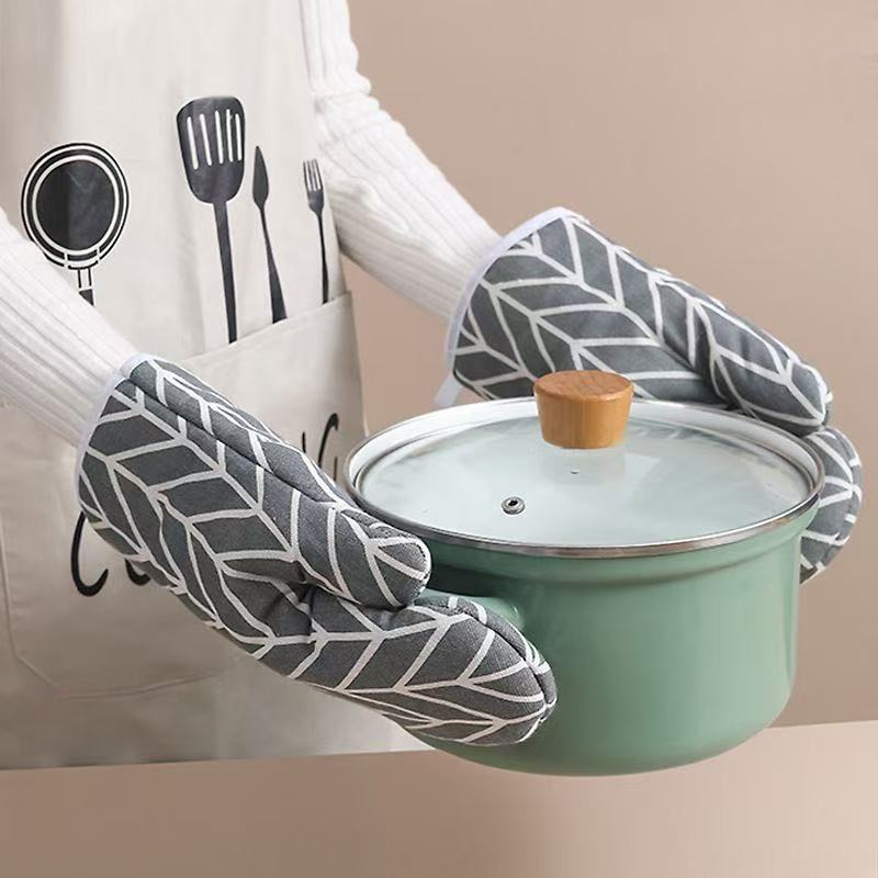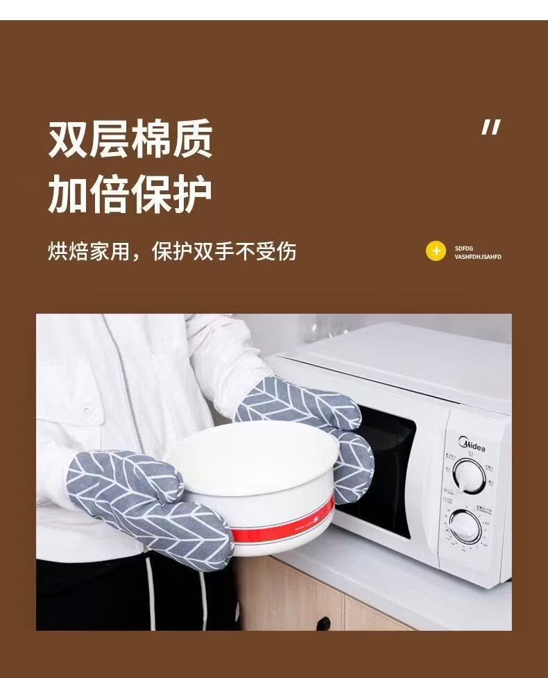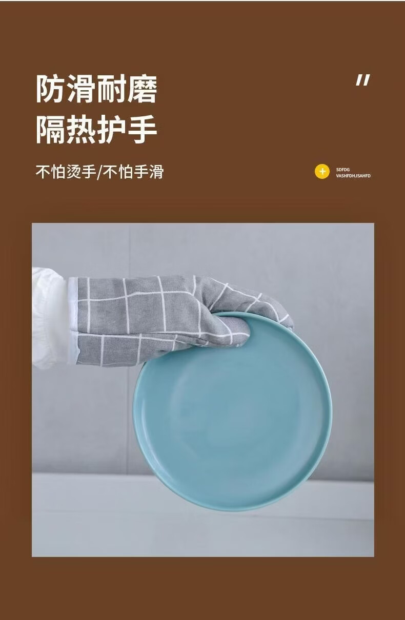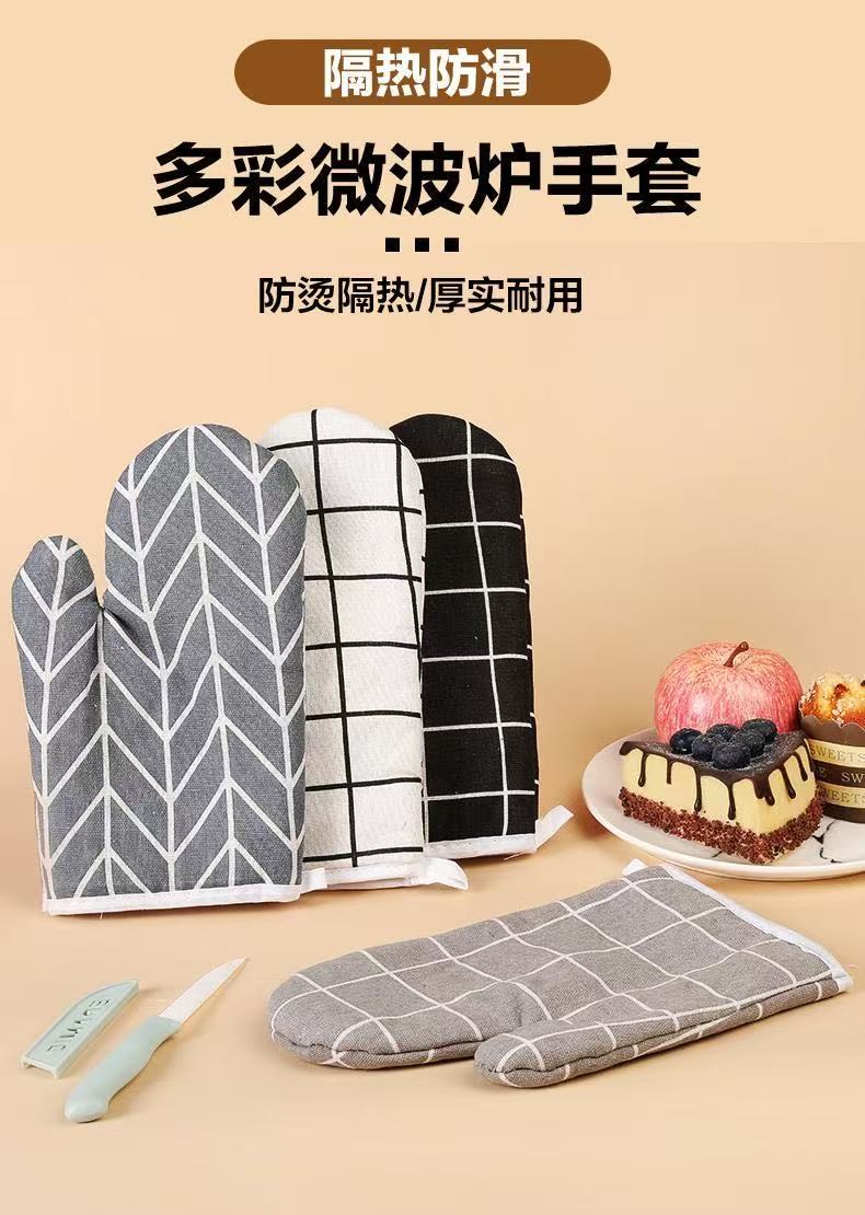 洋臣烤箱砂锅专用隔热防烫烘培微波炉防热手套棉麻耐高温手套烘培工具 防烫手套2只【颜色随机】