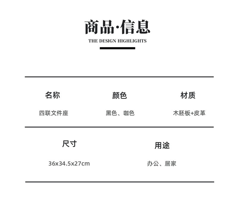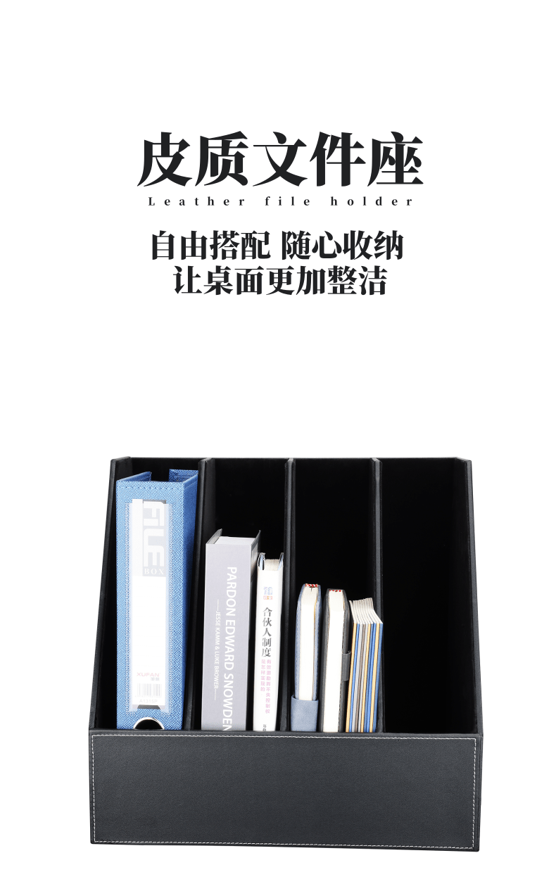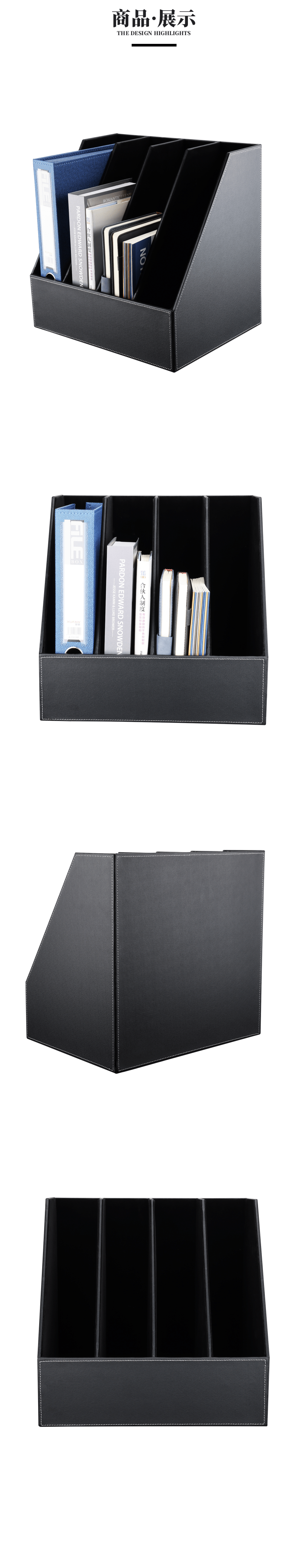 利蓝(LEADLAND)皮革文件架文件筐四联文件框资料夹架档案架立式文件置物架办公室书立办公用品 黑色1445