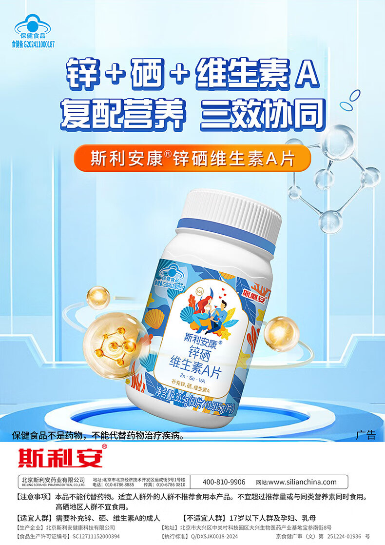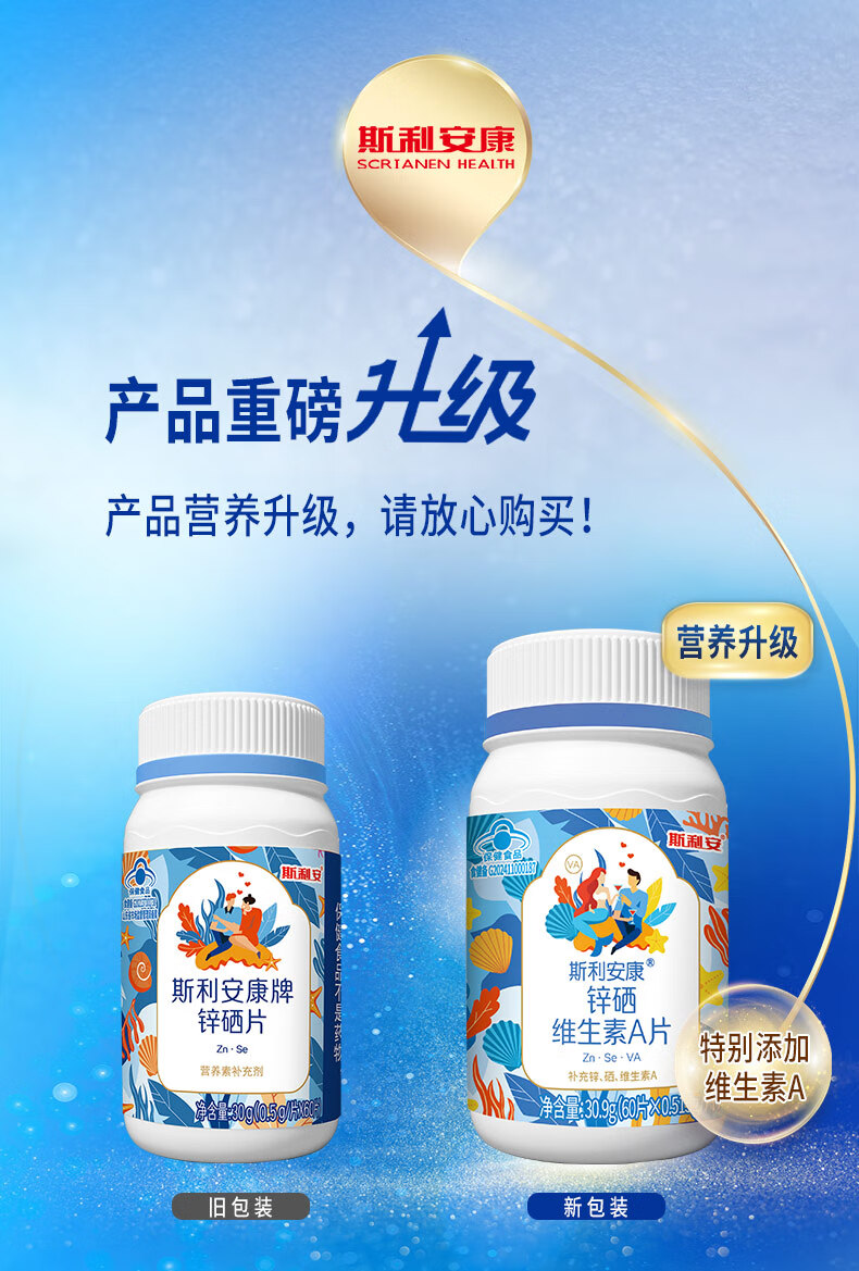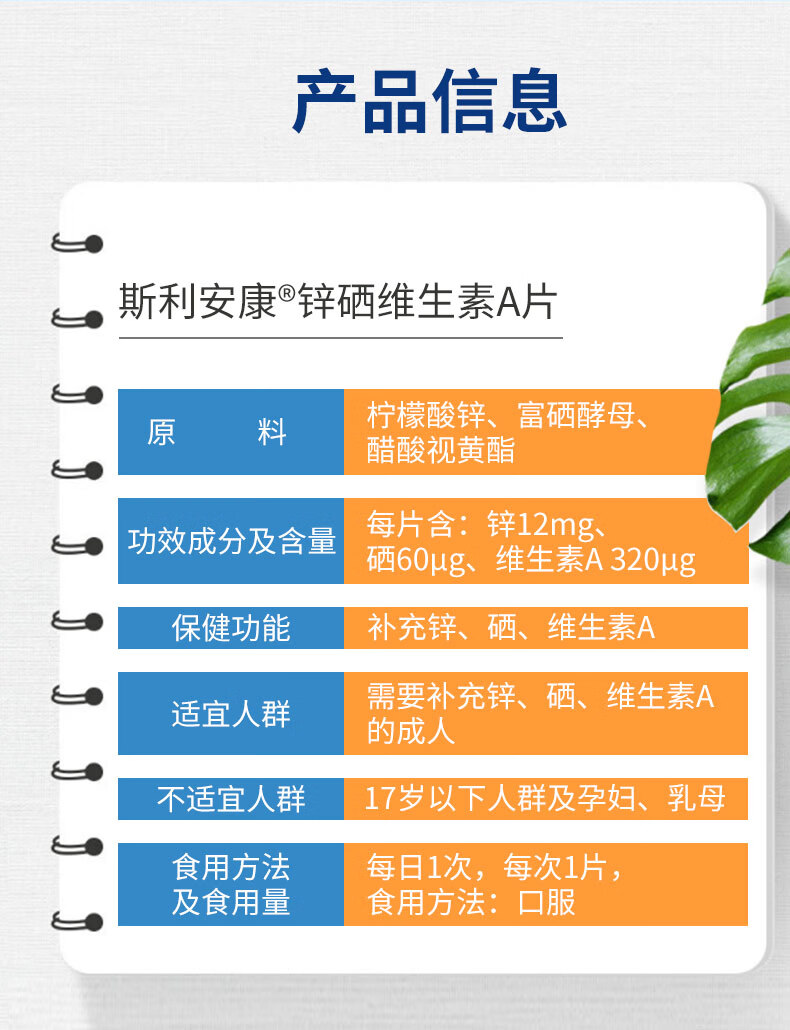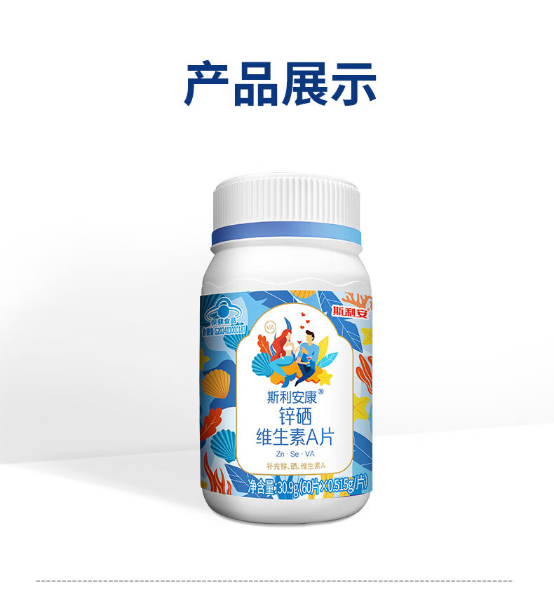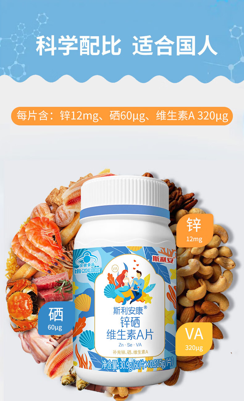 斯利安锌硒片男士备孕60片/瓶补锌成人补硒补VA 有机锌硒 60片*1瓶 助力备孕