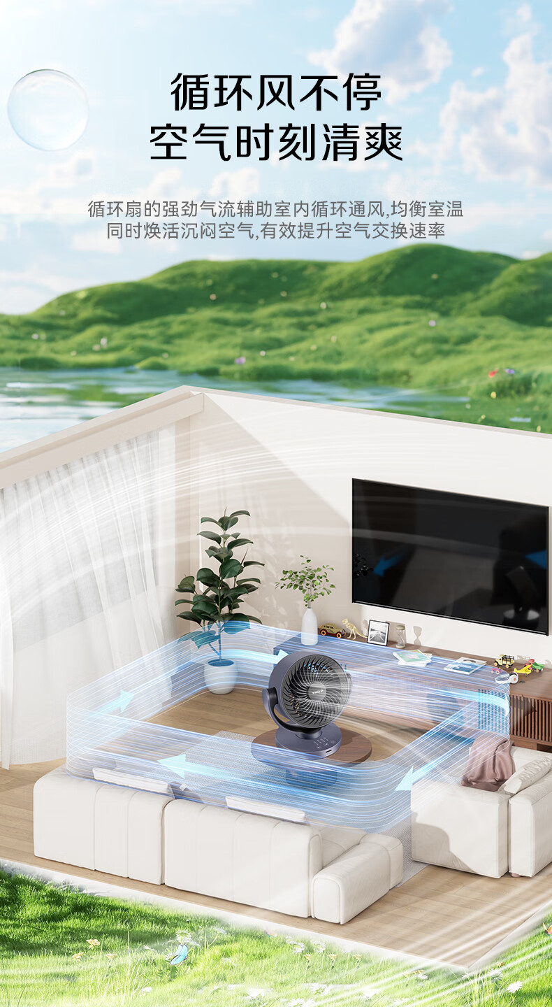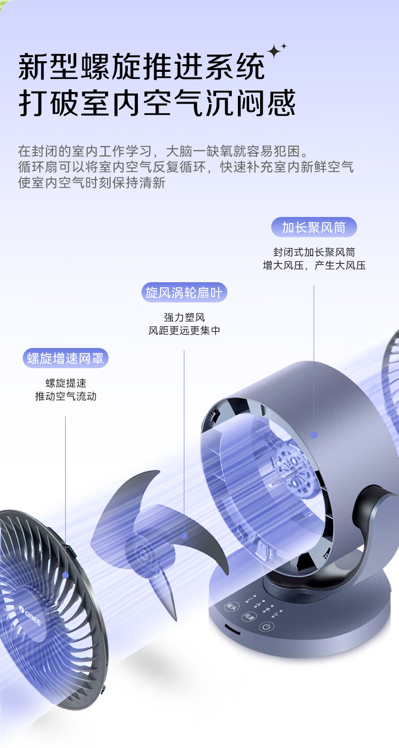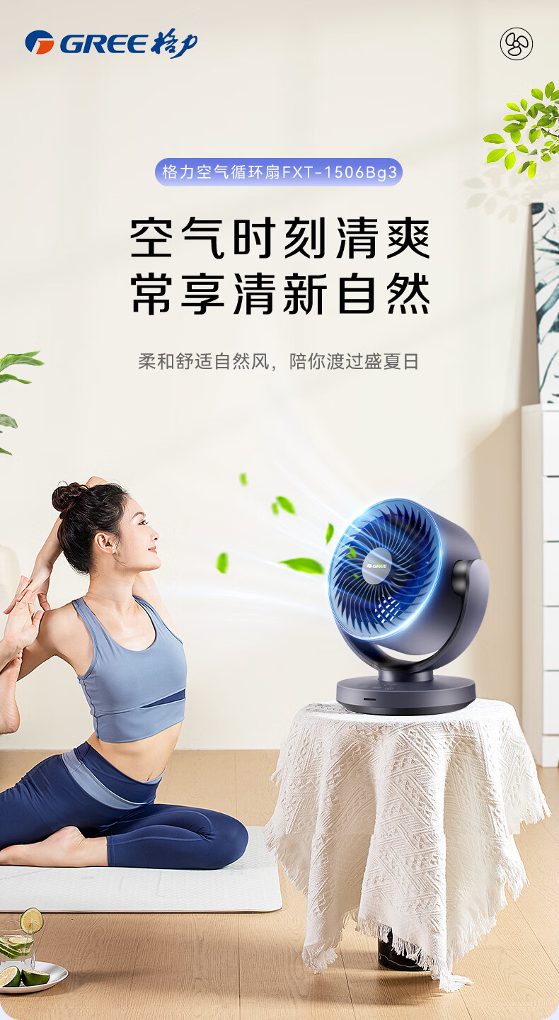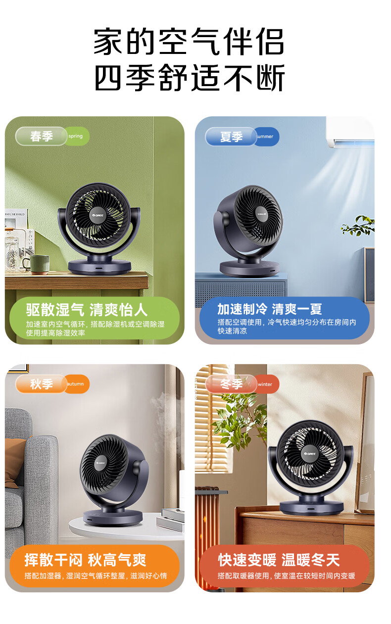 格力(GREE)空气循环扇家用电风扇台式桌面小风扇卧室办公宿舍摇头电扇节能大风量排气扇涡轮对流换气空调伴侣 整屋循环送风-遥控定时款(FXT-1506Bg3)